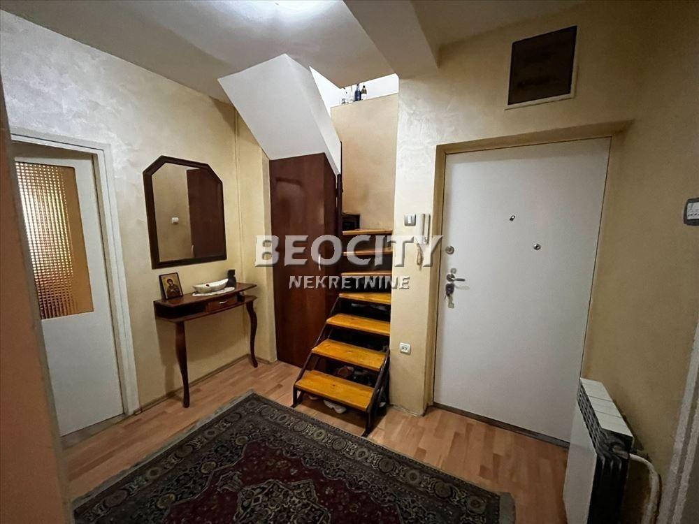 Agencijski ID: 126994, 4/4, dupleks, terasa, uknjižen, renoviran, stara gradnja, parking. Prodaje se šestosoban dupleks stan na Karaburmi, u ulici Dr Nika Miljanića, na IV spratu, u blizini okretnice gradskog prevoza. Stan se prostire na dve etaže: donja: 66,70 m² gornja: 68,90 m² Obe etaže imaju punu visinu bez kosina, po jedno kupatilo, dok je kuhinja na donjoj etaži, uz mogućnost ugradnje i na gornjoj (instalacije izvedene). U cenu je uključen i podrum od cca 3 m². Stan je uknjižen na 110 m², etaže su papirološki odvojene, sa dva strujomera i dva Infostana, što omogućava podelu na dve stambene jedinice. Orijentisan je severozapadno, sa terasom od 6,65 m² koja gleda na zelenilo i mirnu ulicu. Grejanje je etažno na struju, uz mogućnost priključka na gas. U stanu su 3 klime i kamin. U blizini su škole, vrtić, marketi, kao i više linija gradskog prevoza. Parking ispred zgrade je slobodan (nije zoniran. Agencijska provizija 2%. Telefoni: 060/328-3901 • 060/555-9720 • 011/328-3901.