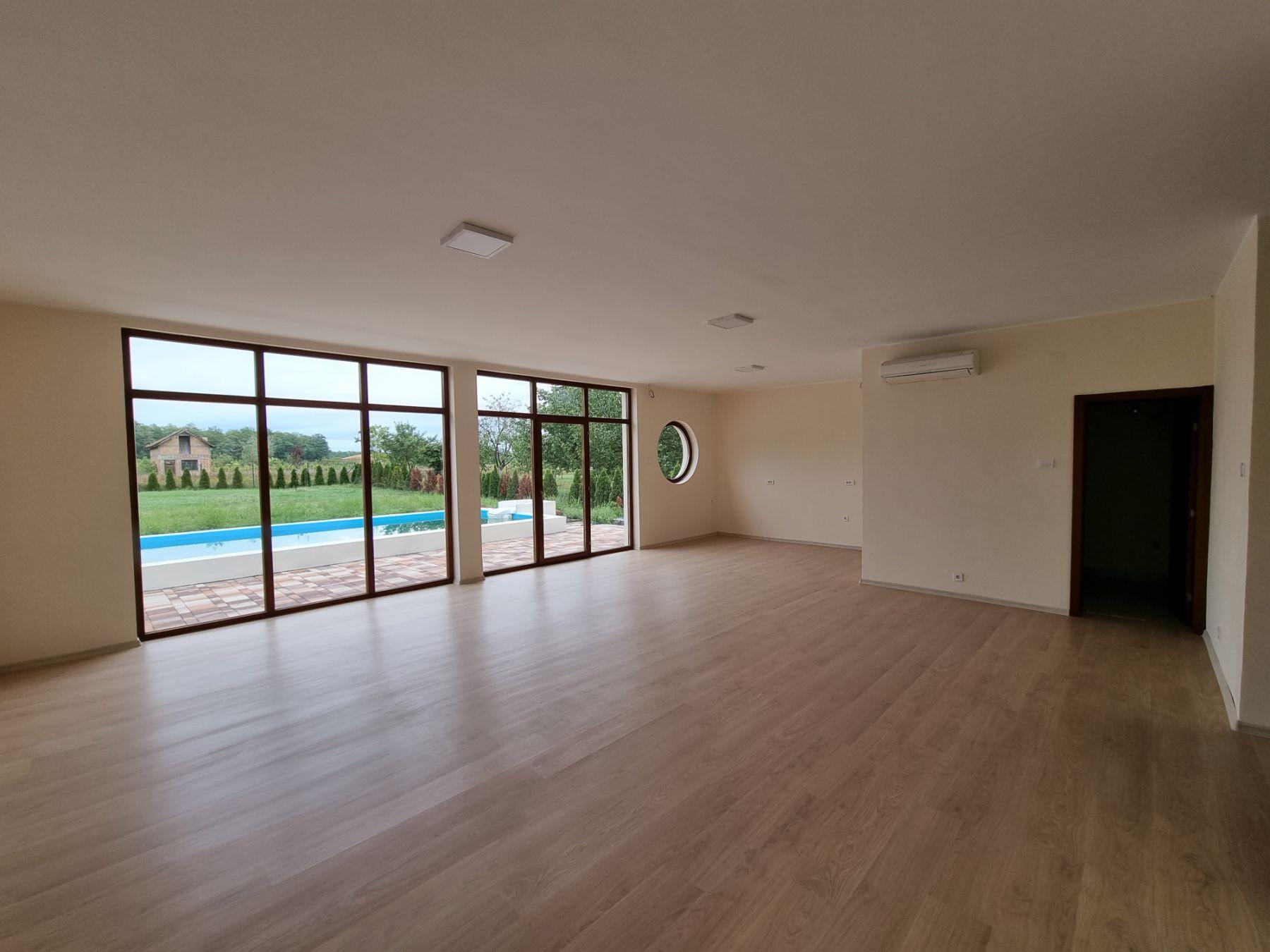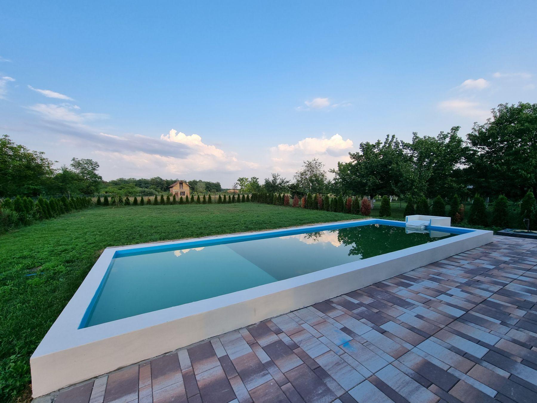 Površina placa 10 ari. Površina objekta 100 kv - 2 spavaće sobe, 1 kupatilo sa tuš kabinom, open space (kuhinja - trpezarija - dnevni boravak). Puno prirodnog svetla, stolarija (prozori, vrata) od drveta. Visoki plafoni - 2, 80 cm te daje utisak još većeg prostora. Pod - tarket i pločice. Nova i odmah useljiva. Prelep pogled na bazen, i zelenilo. Visoko kvalitetna gradnja, odlicna izolacija. Maksimalna privatnost, komfor, moderan I jedinstven objekat na Palicu. Vila je pogodna za stanovanje, ili izdavanje (na dan, mesec, za događaje...), cak I kao poslovni objekat. Nije opremljena jer je zamisao da je budući vlasnici urede po svom ukusu. Kupatilo - tuš kabina (staklena pregrada). Ostala oprema - sanitarije predviđene da odabere budući vlasnik, a sve instalacije su tu. Grejanje - na struju, sa mogućnošću ugradnje i drugog tipa grejanja (po želji). Uz objekat ide i inverter klima uređaj, kao i radijatori na struju. Ograda - sa prednje, ulazne strane nalazi se moderna zidana, betonska ograda. Moderna ulazna kapija, garažno mesto za 1 auto i klizna, automatska kapija (otvaranje na daljinski). Ostatak placa oivičen je zelenom zimzelenom ogradom - smaragd tujama. Parking - ispred kuće betonski parking sa prostorom za bar 2 automobila. Dosta prostora za parking oko kuće. Bazen - površine (dimenzija 9.5 x 3.5 m). Jedan deo bazena je plići - idealan za odmaranje, decu… Poseduje profesionalnu pumpu za filtriranje i mešanje vode. Krov - na izgled ravan, ali zapravo postavljen pod idealnim uglom kako bi mogli da se na njega montiraju solarni paneli (ukoliko to bude želja budućeg vlasnika). Obzirom da se ispod kosog krova nalazi betonska ploča, ukoliko vlasnici žele mogu da podignu još jedan sprat. Voda - objekat je priključen na gradsku kanalizaciju. Ima sopstveni bunar sa pijaćom vodom (gradska voda stiže u 2026). O placu i komšiluku - Plac se samo sa jedne strane graniči sa komšijom (jako fini I uredni ljudi). Ostalo su druge parcele - priroda. Ogromna bašta sa puno prostora gde bi mogao da stane čak još neki objekat, ili se dizajnira velika bašta, travnjak, pogodno je I za vocnjak, bastu povrca, vinovu lozu, sportske terene, privatan park… Kontakt 0640000019
