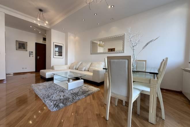 Prodaje se odličan dvosoban stan na Vračaru, u ulici Internacionalnih brigada, u neposrednoj blizini Hrama Svetog Save. Stan se nalazi na trećem spratu kvalitetne zgrade iz 2012. godine, sa uredno održavanim ulazom i liftom. Po strukturi je dvosoban i sastoji se od ulaznog hodnika, dnevnog boravka sa trpezarijskim delom, odvojene kuhinje, spavaće sobe, kupatila i terase. Grejanje je centralno. Visina plafona iznosi 2,95 m, što prostoru daje dodatni komfor. Stan je u izuzetnom stanju, a posebno se izdvajaju kvalitetni ugrađeni materijali: hrastov parket, spoljašnja alu-drvo stolarija, unutrašnja drvena stolarija, kvalitetna keramika, rasveta i sigurnosna ulazna vrata. Jednostrano je orijentisan, sa direktnim pogledom na Hram Svetog Save, izuzetno je svetao i potpuno izolovan od gradske buke. Zbog atraktivne lokacije i funkcionalnog rasporeda, stan predstavlja idealnu priliku kako za stanovanje, tako i kao investiciju za izdavanje. Stan se prodaje kompletno namešten. Postoji mogućnost kupovine garažnog boksa i ostave po ceni od 75.000 EUR. Uknjižen je na 55 m², ukupna površina iznosi 62 m². Retko u ponudi. Posrednička naknada se obračunava u skladu sa Opštim uslovima poslovanja agencije ''DIVIS NEKRETNINE'' d.o.o.