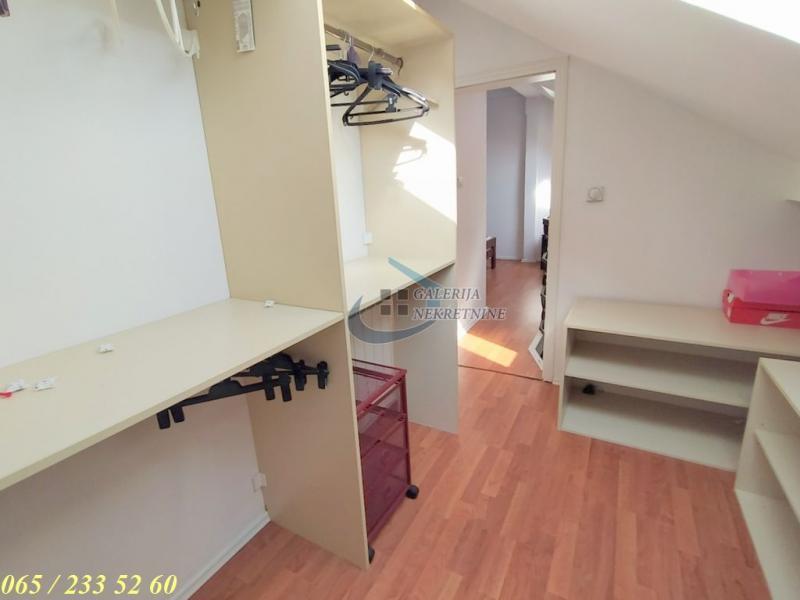 3.5, 68m2 (terasa), CG, 4/4, lift, klima, interfon, internet, telefon, ktv. Mirna, jednosmerna ulica Marka Oreškovića se prostire od ulice Dvadesetprve divizije do Bulevara kralja Aleksandra, presecajući Dimitrija Tucovića. Ova lokacija je vrlo popularna na tržištu nepokretnosti. Infrastrukturno je kompletno pokrivena, pa se u okruženju nalazi sve što je potrebno za život, uključujući i brzu saobraćajnu vezu sa svim delovima grada. Nepokretnost se nalazi u delu ulice bliže Bulevaru. U prilici smo da vam ponudimo specifičan i vrlo šarmantan dupleks na poslednjoj etaži održavane četvorospratnice, sa liftom izgrađene 2005. godine. Vrlo je funkcionalan, sa tri spavaće sobe, od kojih se najmanja nalazi na galeriji, trenutno u funkciji garderobera. Dnevni boravak je objedinjen sa trpezarijom i kuhijnom u modernom open space stilu. Dragulj stana je velika terasa kao stvorena za uživanje. Stan je orijentisan suprotno od ulice, pa je tih i izuzetno svetao. Nedavno je kompletno renoviran i estetski osmišljen sa puno ukusa, pa nisu neophodna dodatna ulaganja. Grejanje je centralno. Lokacija i tip stana su pogodni za život ali i za izdavanje. Od prostorija: Donji nivo – hodnik, kupatilo, spavaća soba, dnevni boravak objedinjen sa trpezarijom i kuhinjom, terasa. Gornji nivo - (galerija) – spavaća soba, garderober (spavaća soba). Uknjiženo na 68m2 sa terasom. Kontakt 065 233 52 60