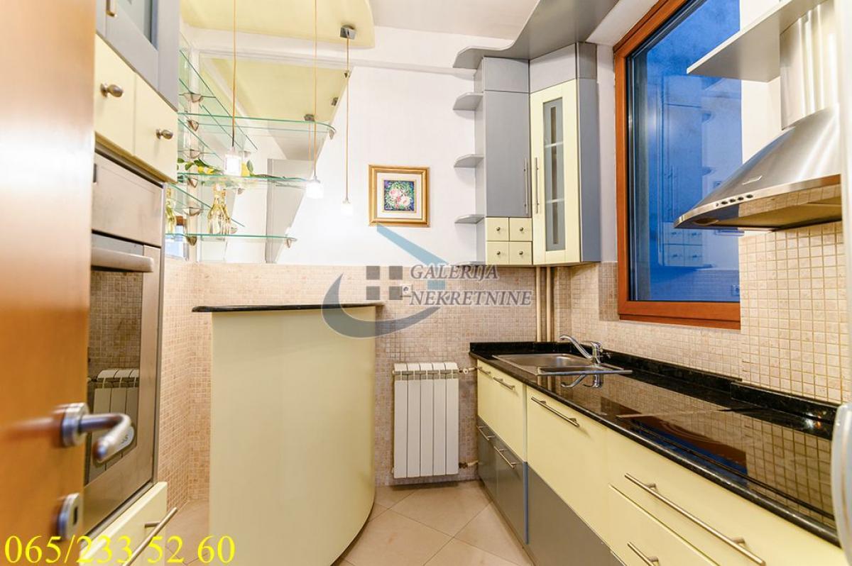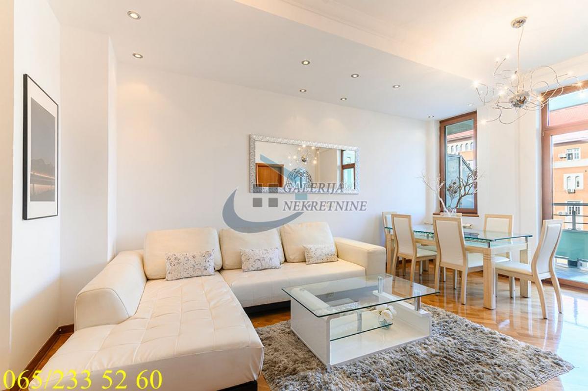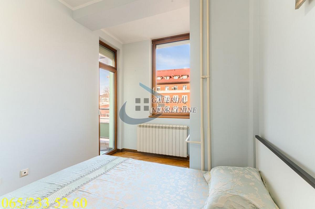 2.0, 55m2 + 7m2 terasa, 3/6, CG, LUX, lift, klima, interfon, internet, ktv, bez ulaganja, namešten i opremljen, garaža po dodatnoj ceni Mirna, jednosmerna ulica Internacionalnih brigada je na par koraka od Karađorđevog parka i nadomak Hrama Svetog Save. Paralelna je sa Hadži-Milentijevom ulicom i ide od Janka Veselinovića do Nebojšine, presecajući pri tome ulice Petra Kočića i Braničevsku. U prilici smo da Vam ponudimo lep dvosoban stan na trećem spratu šestospratnice sa liftom iz 2005 godine. Izrazito visok kvalitet gradnje vidljiv je na prvi pogled. Zbog toga, kao i zbog odličnog održavanja, zgrada je spolja i iznutra kao nova. Prostorije u stanu su komotne i svaka ima prozor. Raspored je izuzetno funkcionalan, pa je raspoloživ prostor maksimalno iskorišćen. Vanstandardna visina plafona od nepuna 3m dodatno doprinosi osećaju konofra. Dnevni boravak obuhvata i trpezarijski deo, dok je kuhinja u odvojenoj prostoriji. Iz dnevnog boravka i spavaće sobe izlazi se na lepu, komotnu terasu sa pogledom ka Hramu Svetog Save, koja je kao stvorena za uživanje. Stan obiluje dnevnom svetlošću. Luksuzno je osmišljen i opremljen do najsitnijih detalja. Prodaje se kompletno i vrlo kvalitetno namešten i opremljen. Ekstremno dobro je održavan, te je i dalje kao nov i apsolutno nikakva ulaganja nisu potrebna. Grejanje je centralno. Kupcu stana pruža se mogućnost kupovine garaže i ostave u zgradi po ceni od 75000 EUR. Ulaz u garažu je klasičan (nije autolift), a sam garažni prostor, uknjižen na 13m2, zasebno je ozidan i opremljen rolo vratima što pruža dodatnu bezbednost. Od prostorija: ulazni deo, kuhinja, dnevni boravak sa trpezarijskim delom, spavaća soba, kupatilo, terasa. Uknjižen na 55m2. Po navodima vlasnice stana, ukupna merena površina sa terasom iznosi 62m2. Agent prodaje: Isak Marčetić 064/167 53 81