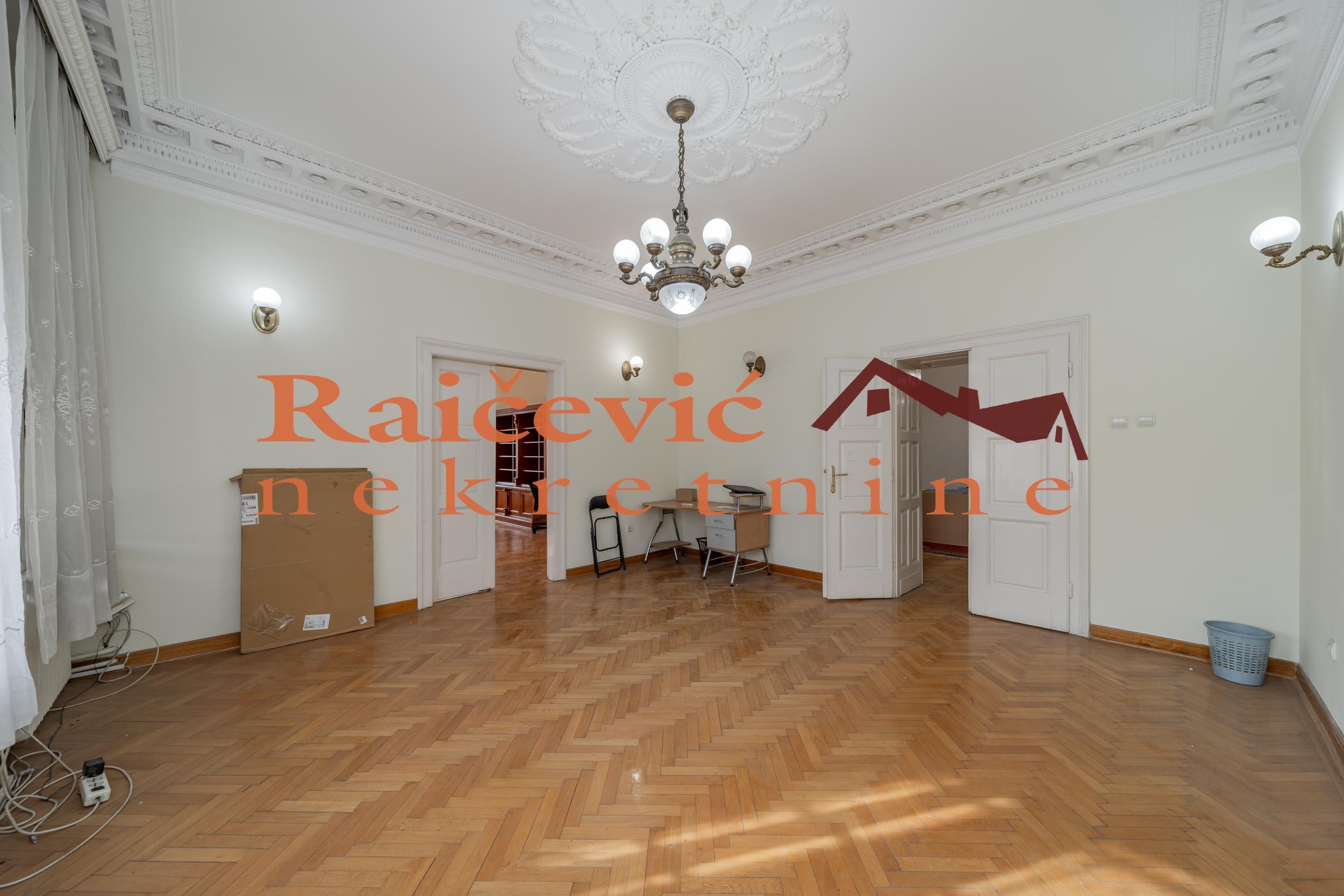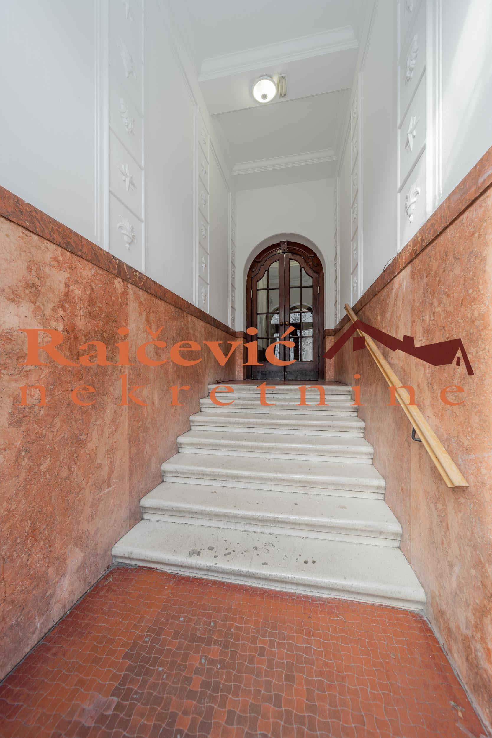 SVI NASI KUPCI DOBIJAJU VREDAN POKLON! Centar, Kneza Milosa, 6.0, 203 m2 sa 3 mala balkona, I od IV sprata, cg, lift, interfon, video nadzor, ktv, internet, klima, odmah useljiv, renoviran, kamin, uknjizen na 185 m2, salonac, starogradnja iz 1939. godine. Impozantan salonac u rezidencijalnom delu centra Beograda, pored ambasada, u luksuznoj, elegantnoj i kvalitetno gradjenoj vili iz 1939. godine, sa ornamentima i sa statusom kulturnog dobra. Poseduje izuzetno reprezentativan mermerni ulaz. Vrhunski materijali, mermer, kamen, kamin koji je u funkciji, keramika i dekorativne tavanice sa luksuznim lusterima i lampama. Visina tavanica je 3.37 m. Uknjizen je na 185 m2, a mereno ima 203 m2. Deljiv je u 2 poslovne ili stambene jedinice sa 2 zasebna ulaza kako je i nekada funkcionisao. Gleda na sve 4 strane sveta, odlicnog je rasporeda i izuzetne osvetljenosti zbog velikih prozora. Poseduje 2 kupatila. Zbog ekskluzivne lokacije u centru grada, idealan je za ambasade, rezidencije, korporacije, strana predstavnistva, kao i za stanovanje. Nesvakidasnje vredna nekretnina! Cena 855 000 evra. Kupite ovu nekretninu preko agencije Raicevic nekretnine i POKLANJAMO VAM idejno resenje dizajna enterijera! Pozovite nas za vise informacija. Agencijska provizija koju placa KUPAC iznosi 2 % od dogovorene kupoprodajne cene. Raicevic nekretnine 062/1889995