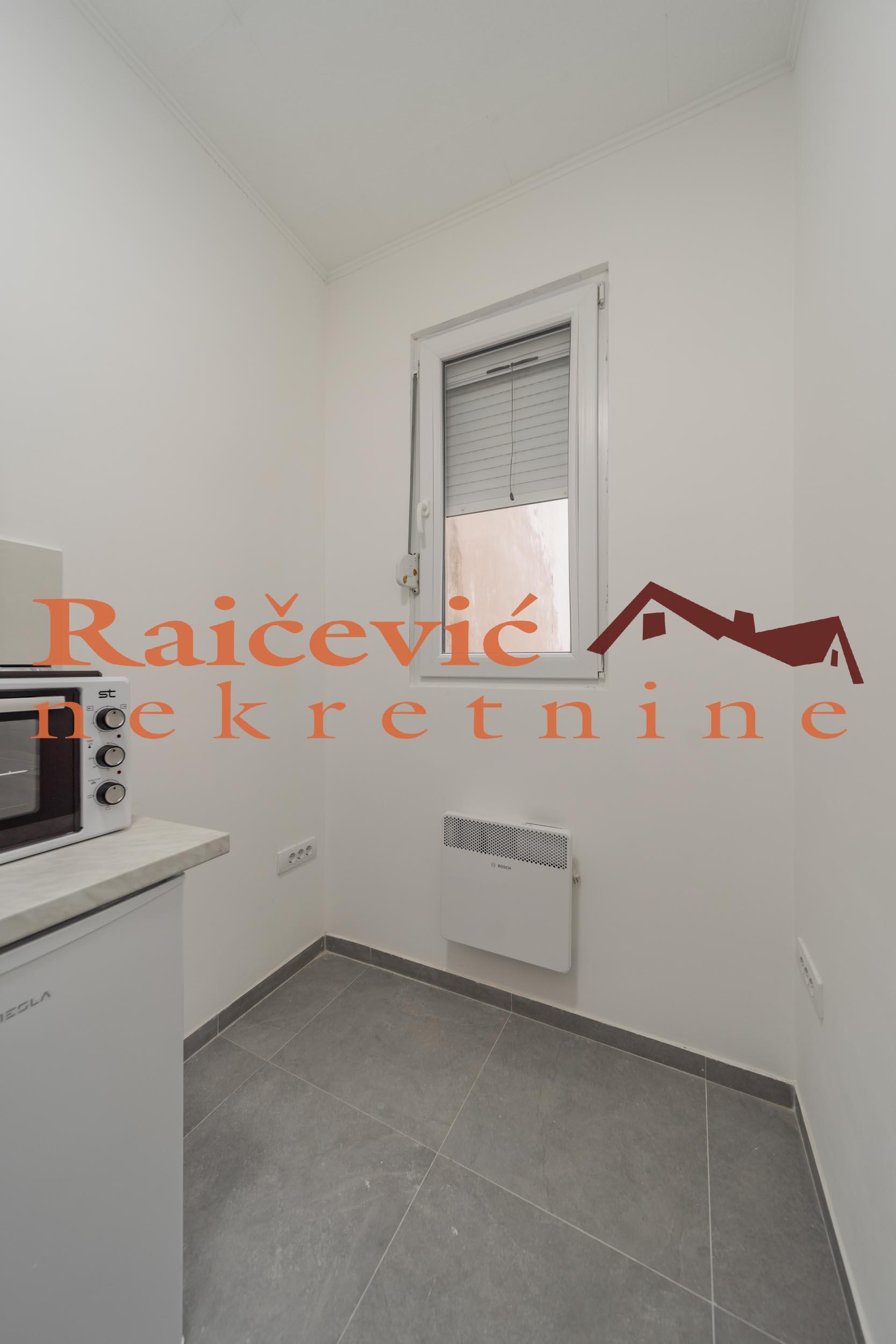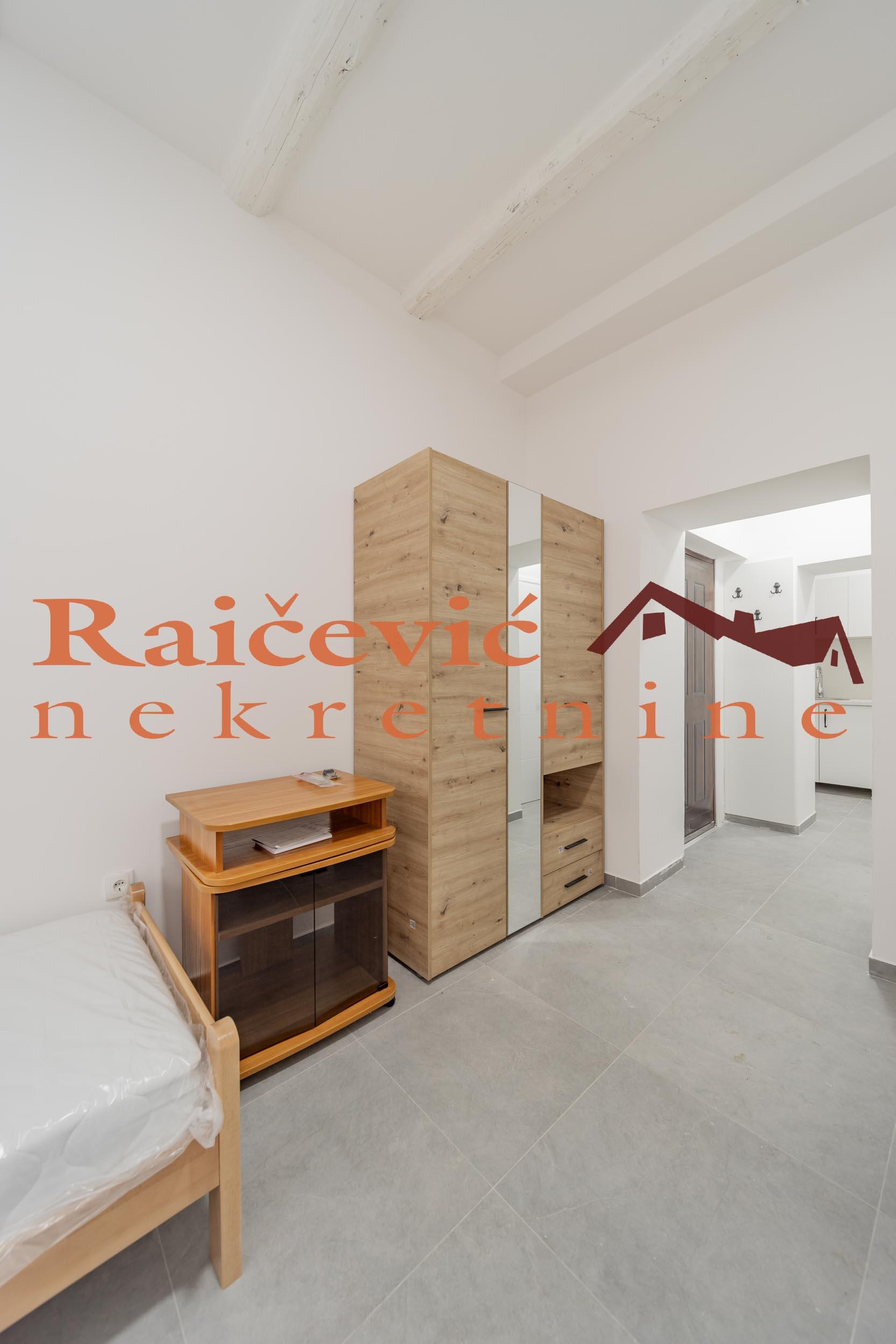 Centar, Kapetan Misina, 1.0, 30 m2, bez terase, VPR od II sprata, eg, bez lifta, ktv, internet, klima, odmah useljiv, renoviran, namesten, uknjizen, starogradnja. Odlican jednosoban stan u Kapetan Misinoj ulici, izmedju Gospodar Jevremove i Strahinjica bana. Nalazi u visokom prizemlju sredjene dvorisne zgrade. Prostorije: predsoblje, kuhinja, soba i kupatilo. Stan je potpuno renoviran (posle renoviranja niko nije u njemu stanovao). Izgradjen je od kvalitetnih materijala i opremljen novim namestajem i belom tehnikom. Po strukturi je idealan za smestaj jedne do dve osobe. Rezijski troskovi su minimalni. Infostan je 1 200 dinara. Ima grejanje na radijatore i klimu. U neposrednom okruzenju su svi vazni infrastrukturni objekti: vrtic, skola, prodavnice, gradski prevoz. Izdaje se na minimum godinu dana. Za svaku preporuku. Cena 500 evra + depozit. Agencijska provizija koju placa ZAKUPAC iznosi: 50 % od prve mesecne zakupnine za zakup u trajanju od 1 do 12 meseci. 75 % od prve mesecne zakupnine za zakup u trajanju od 13 do 59 meseci. 100 % od prve mesecne zakupnine za zakup u trajanju od 60 meseci (5 godina) i vise. prostorije Raicevic nekretnine 060/3056068