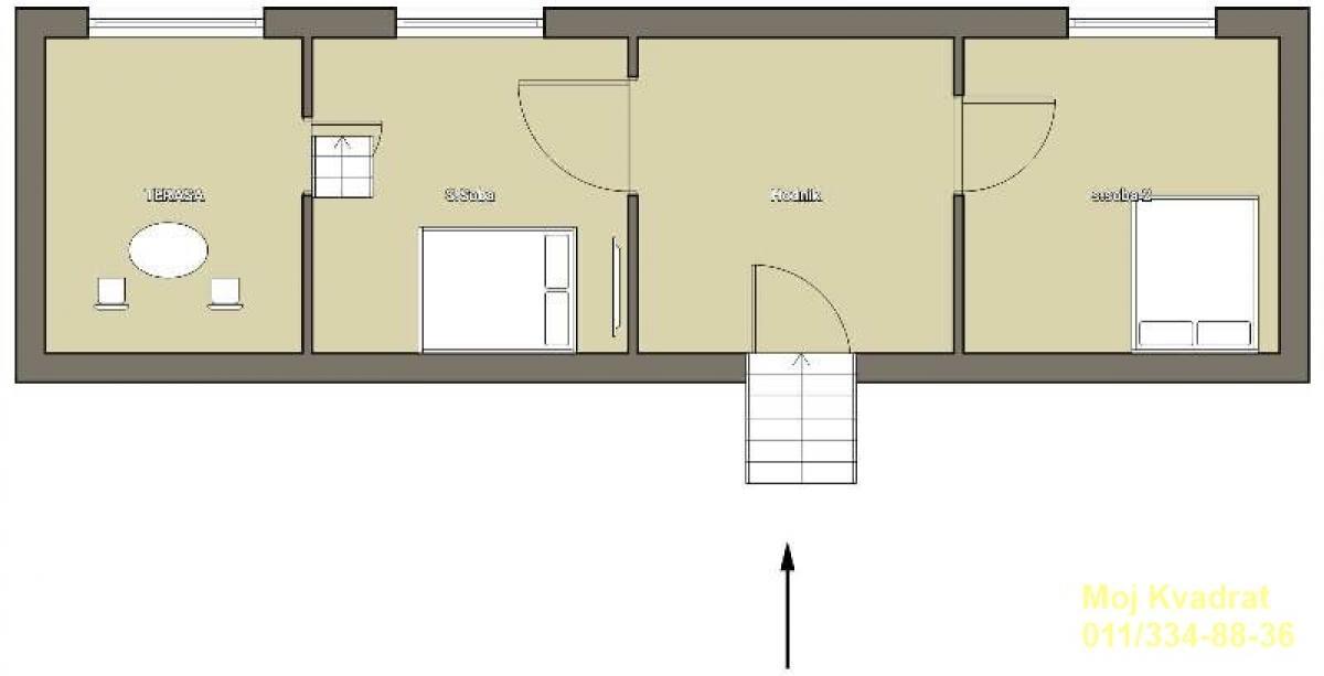 Savski venac, Senjak - Sitnička 2.5, 53m2, terasa, PR+I, EG, telefon, interfon Hitna prodaja stana - renoviran dupleks na Senjaku, pored BIGZ-a. Ima dve etaže. Donja etaža se sastoji iz hodnika, dnevno - trpezarijskog dela i kupatila. Stepenice u dnevnom boravku vode do gornje etaže u kojoj se nalaze hodnik, dve spavaće sobe i zastakljena terasa. Nalazi se u mirnom kraju i ima dobru povezanost sa ostalim delovima grada. Uknjižen bez upisane kvadrature, merena kvadratura iznosi 53m2. Agencijska provizija 2% Agent: Vladimir Nikolić 065/27-10-107 (licenca br. 6571)