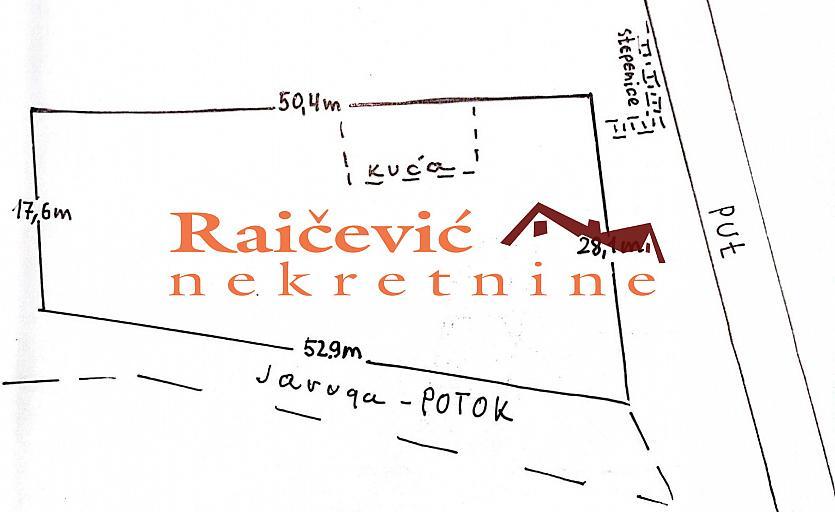 Pinosava, Bulevar patrijarha Germana, plac povrsine 12.20 ari (1 220 m2), gradsko gradjevinsko zemljiste sa uknjizenim objektom povrsine 34 m2, gradska voda, trofazna struja, telefon. Nadomak Avale nalazi se lepo uredjen plac povrsine 1 220 m2, sa zasadima voca, pravilnog oblika, ogradjen (podzid, betonski stubovi, ograda). Pored placa protice potok uz koji je uradjen potporni zid i ograda. Prema informaciji o lokaciji parcela se nalazi u zoni porodicne gradnje, sa mogucnoscu gradnje objekta sa najvise 4 stana u objektu, spratnosti PR + I + PTK/PS. Maksimalni indeks izgradjenosti je 3, a zauzetosti je 30 %. Maksimalna visina venca glavnog objekta je 9 m, a maksimalna visina slemena je 12.5 m. Osim glavnog objekta dozvoljena je i gradnja pomocnih objekata. Sa porodicnim sadrzajem kompatibilni su komercijalni sardzaji iz oblasti trgovine, administracije i usluznih delatnosti. Na placu se nalazi prizemna kuca uknjizena na 34 m2, sa dve prostorije, stare gradnje, na temeljima od kamena. Kuca je u izvornom stanju i za renoviranje. Na placu uz potok postoji i pomocni objekat od drveta, povrsine 25 m2. Plac se nalazi na odlicnoj lokaciji uz Avalski put, nedaleko od skretanja za Avalu. U blizini se nalaze prodavnica, autobusko stajaliste, posta, apoteka, osnovna skola. Zbog lokacije je pogodan kako za zivot, tako i za pokretanje malog biznisa. Cena 80 000 evra. Agencijska provizija koju placa KUPAC iznosi 2 % od dogovorene kupoprodajne cene. Raicevic nekretnine 060/3056058