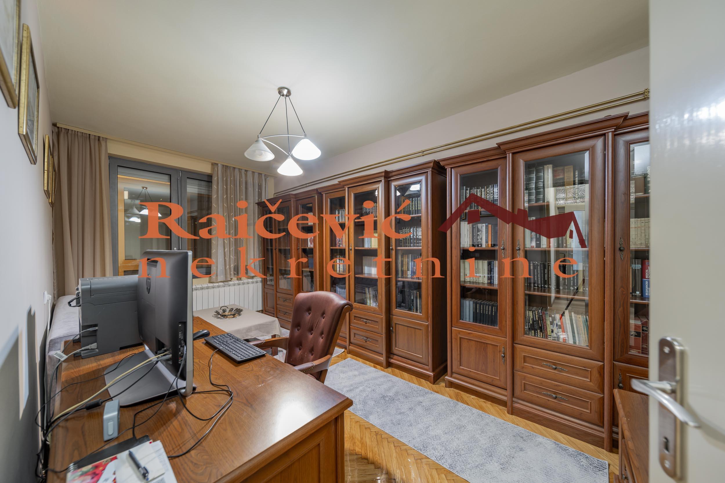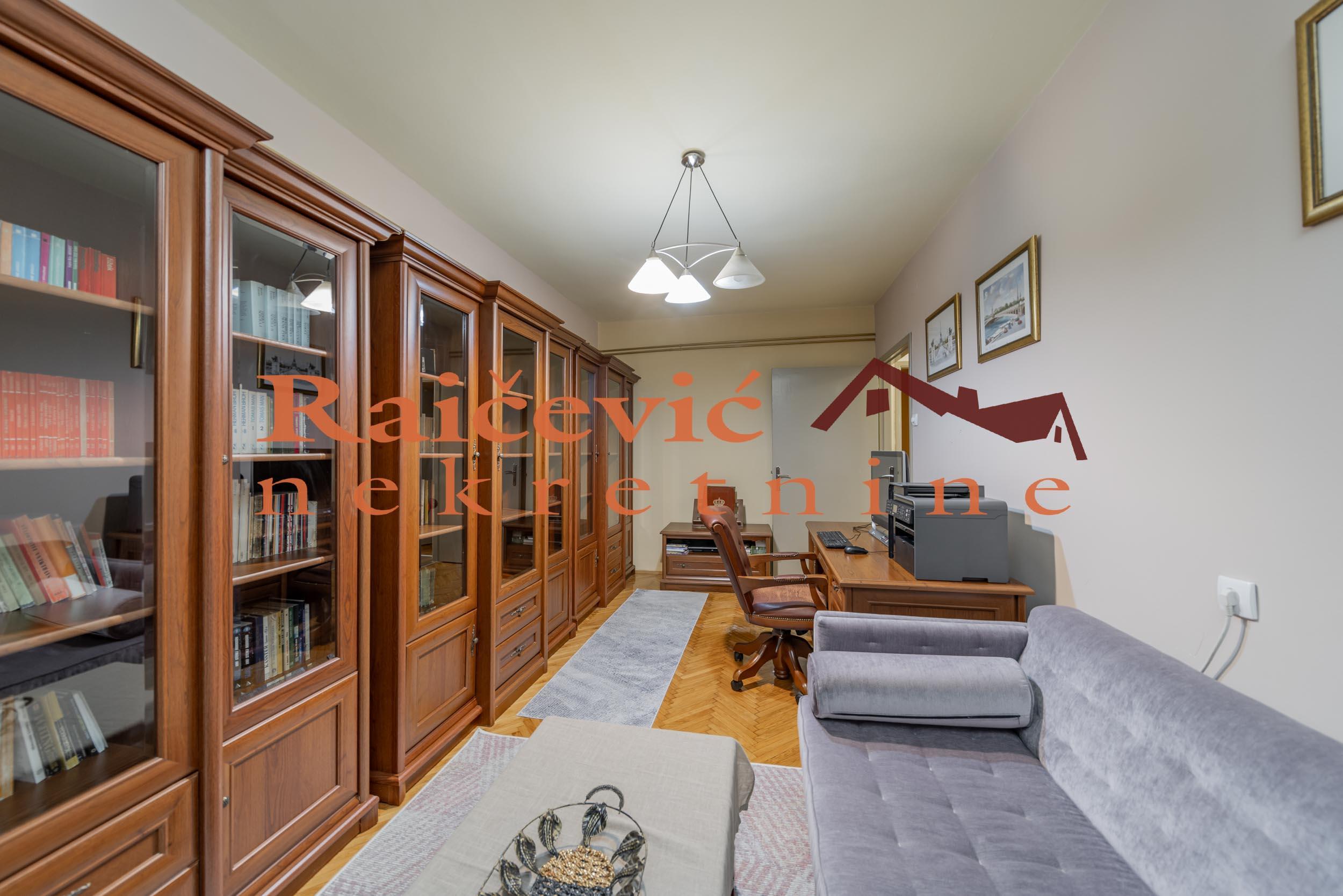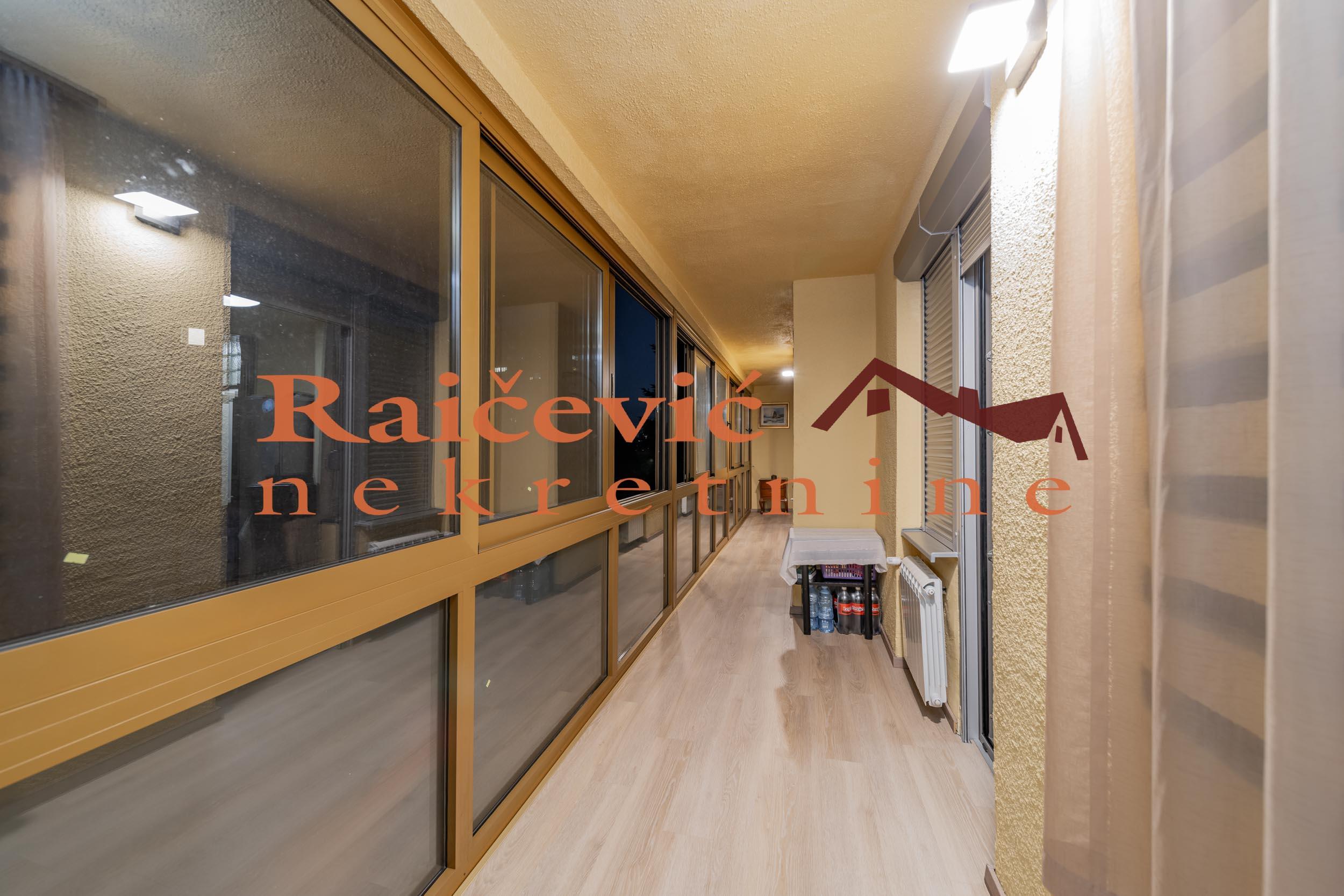SVI NASI KUPCI DOBIJAJU VREDAN POKLON! Gradska bolnica, Cingrijina, 4.0, 104 m2 sa zastakljenom terasom, III od VI spratova, cg, lift, interfon, ktv, internet, odmah useljiv, renoviran, uknjizen 104 m2 gradjevinske, odnosno na 91 m2 korisne povrsine, podrum, starogradnja iz 1972. godine. Funkcionalan, prostran, porodican stan na lepoj lokaciji. Trostrano orijentisan, u mirnom kraju, okruzen zelenilom i parkovima. Kompletno je renoviran 2024. godine: ulazna vrata Bosal sa sef bravom, spoljasnja troslojna alu stolarija (termoizolacioni sloj, termo vakum barijera). Izdvojen dnevni i spavaci blok. Zastakljena terasa sa grejanjem (13 m2), 2 mokra cvora, ostava. Prostorije: ulazni hodnik 22 m2, dnevni boravak 26 m2 (ulicno orjentisan), sa izlaskom na terasu, gostinjski toalet, kuhinja sa trpezarijom, ostava, 3 spavace sobe (dvorisno orjentisane), sa izlaskom na terasu i kupatilo. Postoji mogucnost kupovine i opremljenog stana. Zgrada se nalazi u blizini Gradske bolnice, skole, SC Olimp, mnogih komercijalnih, usluznih i trgovackih delatnosti. Cena 348 000 evra. Kupite ovu nekretninu preko agencije Raicevic nekretnine i POKLANJAMO VAM idejno resenje dizajna enterijera! Pozovite nas za vise informacija. Agencijska provizija koju placa KUPAC iznosi 2 % od dogovorene kupoprodajne cene. Raicevic nekretnine 064/1959991