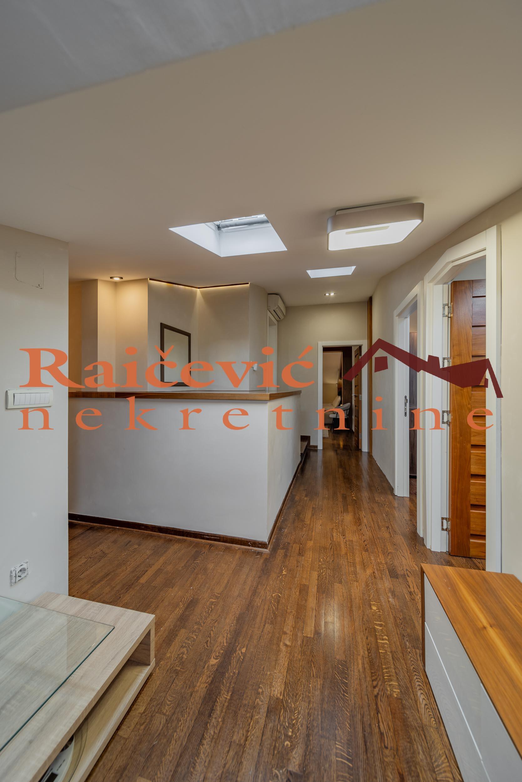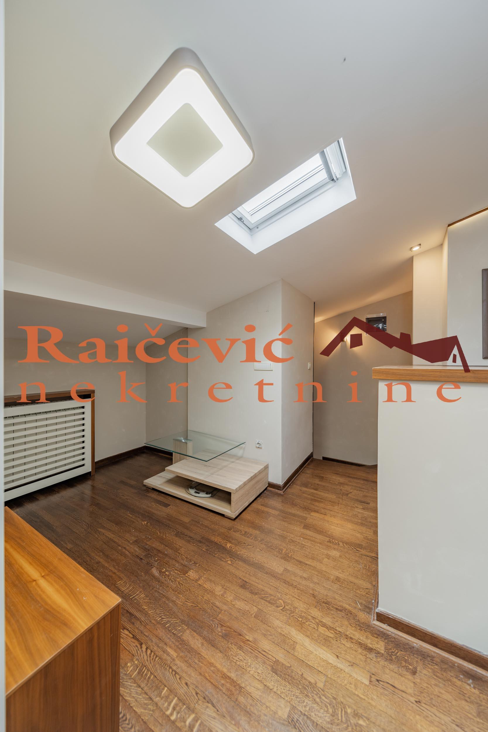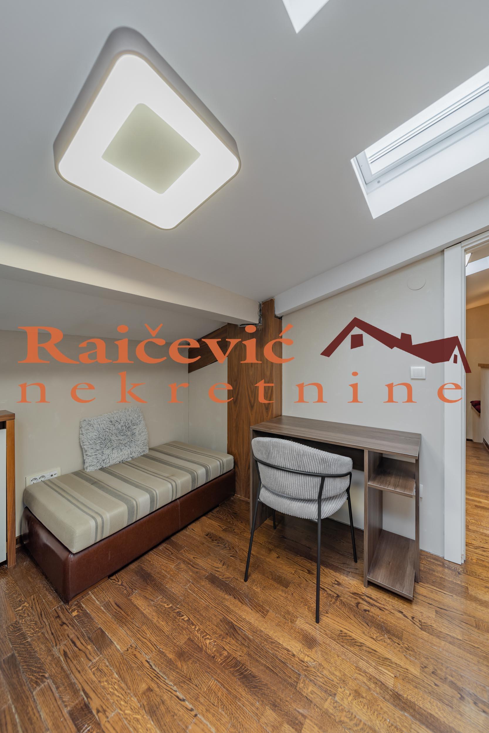 LUX SA GARAZOM I MESECNIM RACUNIMA/REZIJAMA! Vracar, Kursulina, 3.5, 120 m2, terasa od 10 m2, duplex, V od V spratova, cg sa kalorimetrima, lift, interfon, alarm, klima, ktv, garazno mesto, namesten, novogradnja iz 2003. godine. Kvalitetna novogadnja iz 2003. godne, uredno ocuvane i moderne spoljasnjosti i unutrasnjosti, u samom centru Vracara kod Kalenic pijace. Kompletno renoviran, luksuzan stan na prestiznoj lokaciji. Odlican rapored prostorija. I nivo: prostrana dnevna soba sa trpezarijom i kuhinjom koja izlazi na zastakljenu terasu od 10 m2 sa prelepim pogledom na Vracar, garderober i toalet. II nivo: 3 spavace sobe (jedna manja), garderober i kupatilo (tus kabina). Stan se izdaje kompletno namesten i opremljen namestajem modernog dizajna i kvalitetnim tehnickim uredjajima (TV, invereter klima, kuhinja). U cenu stana su uracunati svi mesecni racuni - infostan, struja, ktv, odrzavanje zgrade! Stan ima svoje garazno mesto na nivou -2 do koga ide lift. Stan se izdaje na minimum 6 meseci. ZA SVAKU PREPORUKU! Cena 2 500 evra + depozit. Agencijska provizija koju placa ZAKUPAC iznosi: 50 % od prve mesecne zakupnine za zakup u trajanju od 1 do 12 meseci. 75 % od prve mesecne zakupnine za zakup u trajanju od 13 do 59 meseci. 100 % od prve mesecne zakupnine za zakup u trajanju od 60 meseci (5 godina) i vise. prostorije Raicevic nekretnine 060/3056052
