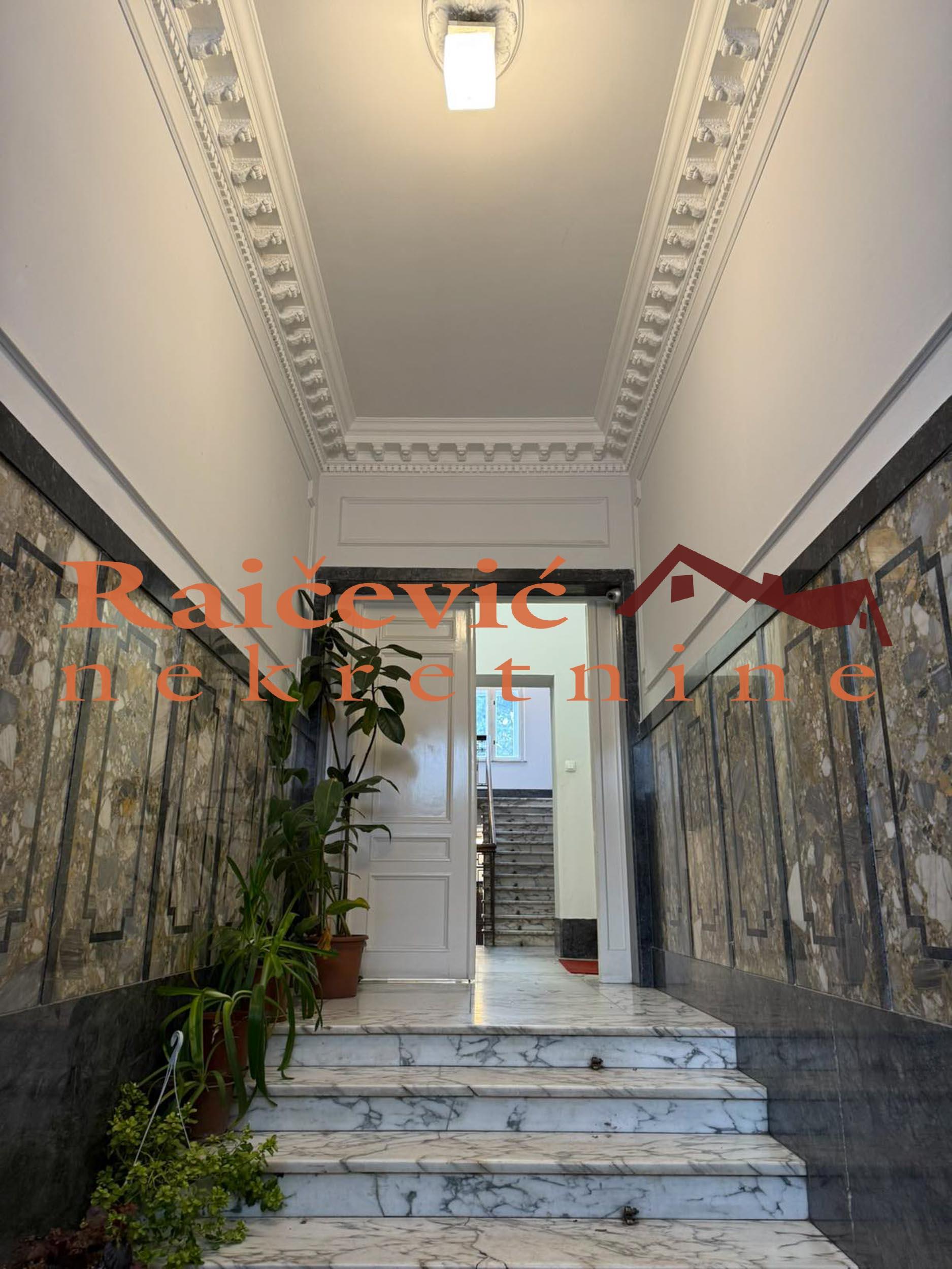 SVI NASI KUPCI DOBIJAJU VREDAN POKLON! Vukov spomenik, Vojvode Bogdana, 4.0, 135 m2 sa terasom, I od IV sprata, cg, telefon, bez lifta, interfon, internet, odmah useljiv, uknjizen kao dve stambene jedinice na 133 m2 (77 m2 + 56 m2), salonac, mogucnost kupovine 2 parking mesta u dvoristu zgrade, zgrada iz 1930. godine. U jednoj od najlepsih salonskih zgrada u Beogradu nalazi se ovaj 4.0 stan. Nastao je spajanjem 2 stana i jednostavno se moze vratiti u prvobitno stanje. Stan je dvostrano orijentisan (jug - sever). Ka juznoj strani, prema ulici, su orijentisana dva salona: veliki salon povrsine oko 50 m2 sa originalnim funkcionalnim mermernim kaminom i jos jedan manji salon. Ka dvoristu su orijentisane spavaca (ili radna) soba i nekadasnja kuhinja i devojacka soba, koje su sada spojene u jednu celinu. Stan ima 2 mokra cvora. Visina plafona je 3.2 m. Stan se prodaje u vidjenom stanju: uradjeni su svi grubi unutrasnji radovi, uklonjene su zidne i podne obloge, razvedene nove elektro i vodovodne instalacije. Postoji mogucnost izvodjenja zavrsnih radova, uz doplatu. Postoji i mogucnost kupovine 2 parking mesta u dvoristu zgrade i 2 ostave uz doplatu. Cena 519 000 evra. Kupite ovu nekretninu preko agencije Raicevic nekretnine i POKLANJAMO VAM idejno resenje dizajna enterijera! Pozovite nas za vise informacija. Agencijska provizija koju placa KUPAC iznosi 2 % od dogovorene kupoprodajne cene. Raicevic nekretnine 060/3056058