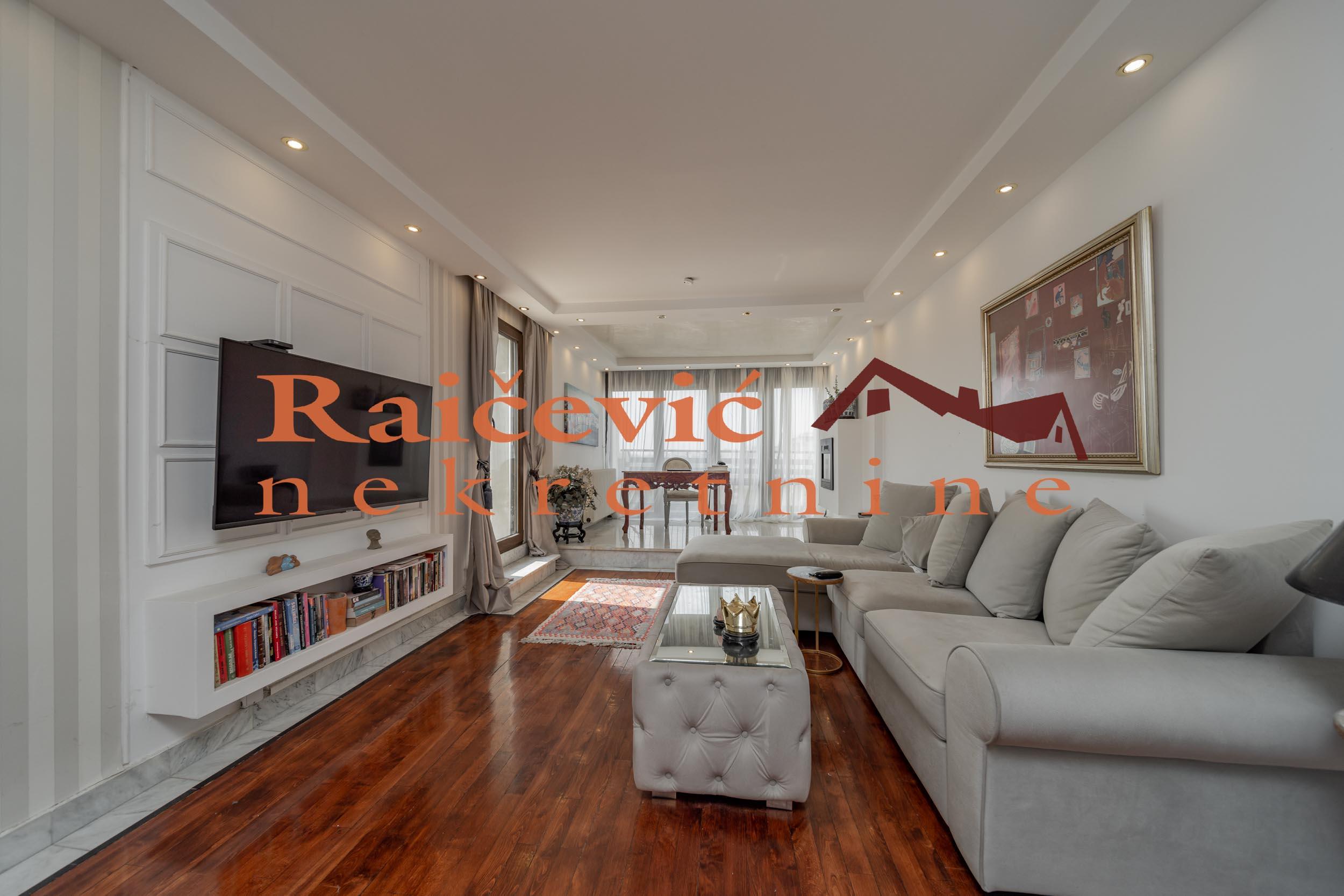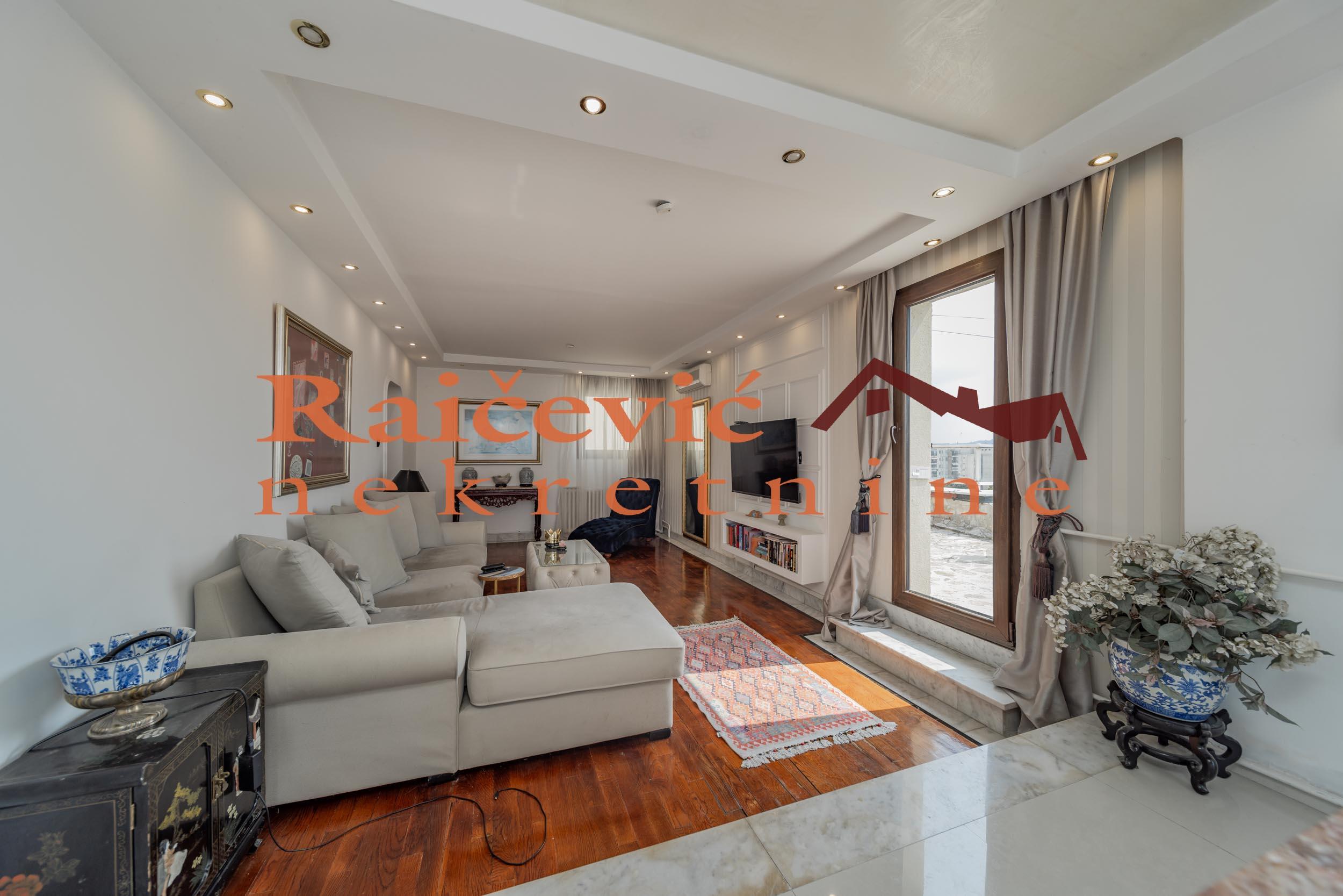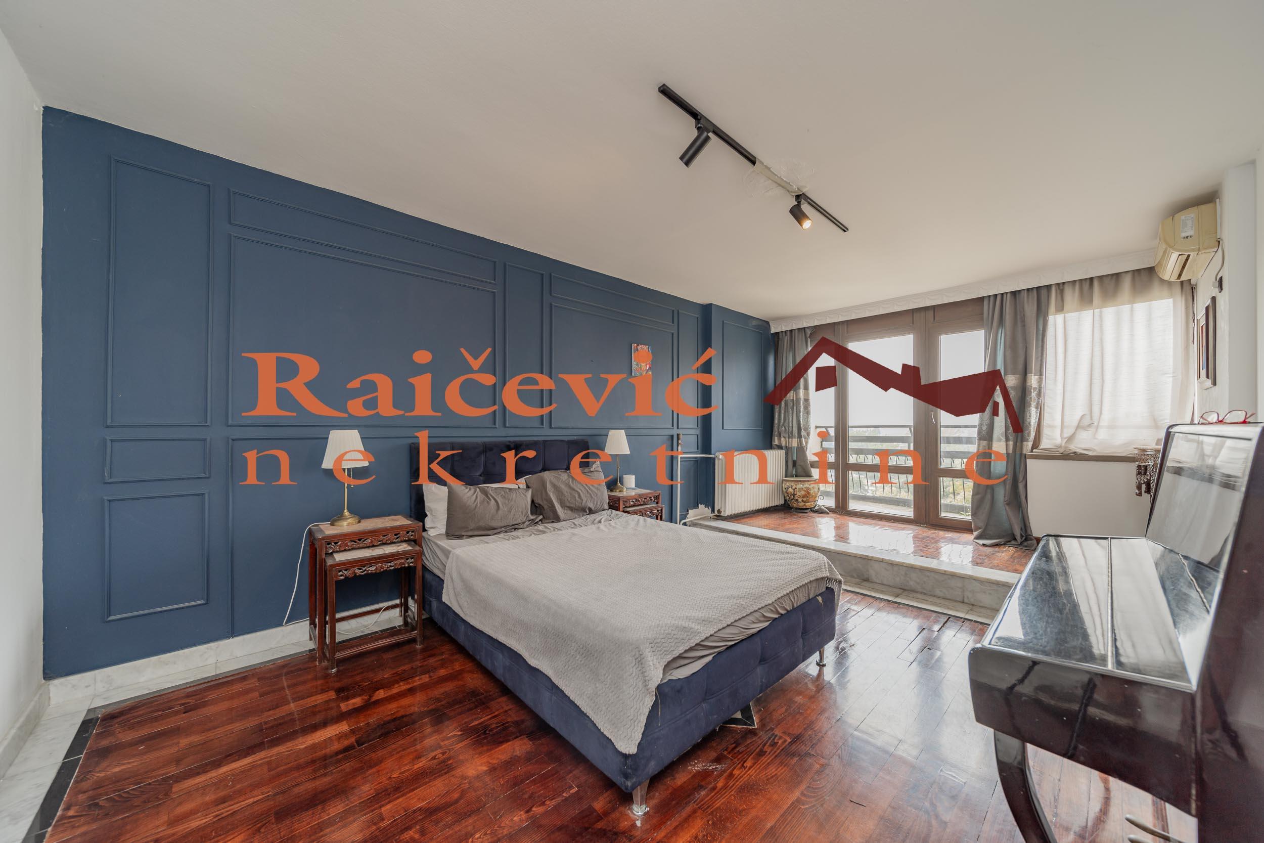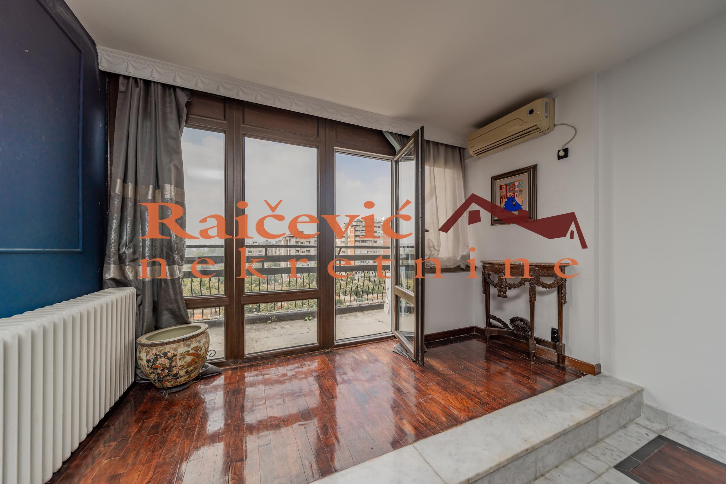 SVI NASI KUPCI DOBIJAJU VREDAN POKLON! Novi Beograd, Blok 70 A, Omladinskih brigada, 4.0, 167 m2 sa 2 terase, VIII od VIII spratova, cg, telefon, 2 lifta, interfon, video nadzor, ktv, internet, klima, kamin, odmah useljiv, uknjizen na 115 m2, podrum, starogradnja. Cetvorosoban stan, veoma svetao i topao, orijentisan jugoistocno. Pozicioniran je u veoma mirnom kraju Novog Beograda, bez saobracajne buke, sa pogledom ka reci Savi i ka zelenilu koje se nalazi oko zgrade. Prelep pogled sa terase na koju se izlazi iz dnevnog boravka. Prostorije: velika dnevna soba, trpezarija sa kuhinjom, 3 spavace sobe, kupatilo, mali toalet, ostava, hodnik i 2 terase. Stan ima veliku terasu oko 40 m2 i ulazni hodnik koji nije uracunat u kvadraturu. Veoma je komforan, odise luksuzom, sa odlicnim rasporedom prostorija. Prodaje se kompletno namesten i opremljen za harmonican zivot. Kvalitetna oprema: PVC stolarija u boji drveta, protocni bojler, jakuzi, podovi su u mahagoni parketu, u kupatilu je mermer, luksuzna keramika, nova sigurnosna vrata, kuhinja je opremljena sa ugradnim elementima. U svim prostorijama su napravljene kaskade za abijentalnu rasvetu u prostorijama. U stanu postoji i kamin. Niski troskovi za struju i infostan. Zgrada je u dobrom stanju, lepo je odrzavana i cista. Stan poseduje pripadajuci podrum, kao i manju ostavu na ulazu. Ispred zgrade postoji velika parking zona. Lokacijski je ovaj stan jedan od najboljih izbora na Novom Beogradu. U blizini se nalaze: Delta City, Belvil, Tehnomanija, Salon BMW, park za decu, vrtic, stomatoloska ordinacija, skole, bolnice, marketi, kafici, Savski kej, autobuske linije: 9A, 89, 95, E6 i tramvajske linije: 7L, 9L, 11, 13. Cena 450 000 evra. Kupite ovu nekretninu preko agencije Raicevic nekretnine i POKLANJAMO VAM idejno resenje dizajna enterijera! Pozovite nas za vise informacija. Agencijska provizija koju placa KUPAC iznosi 2 % od dogovorene kupoprodajne cene. Raicevic nekretnine 065/452-77-77