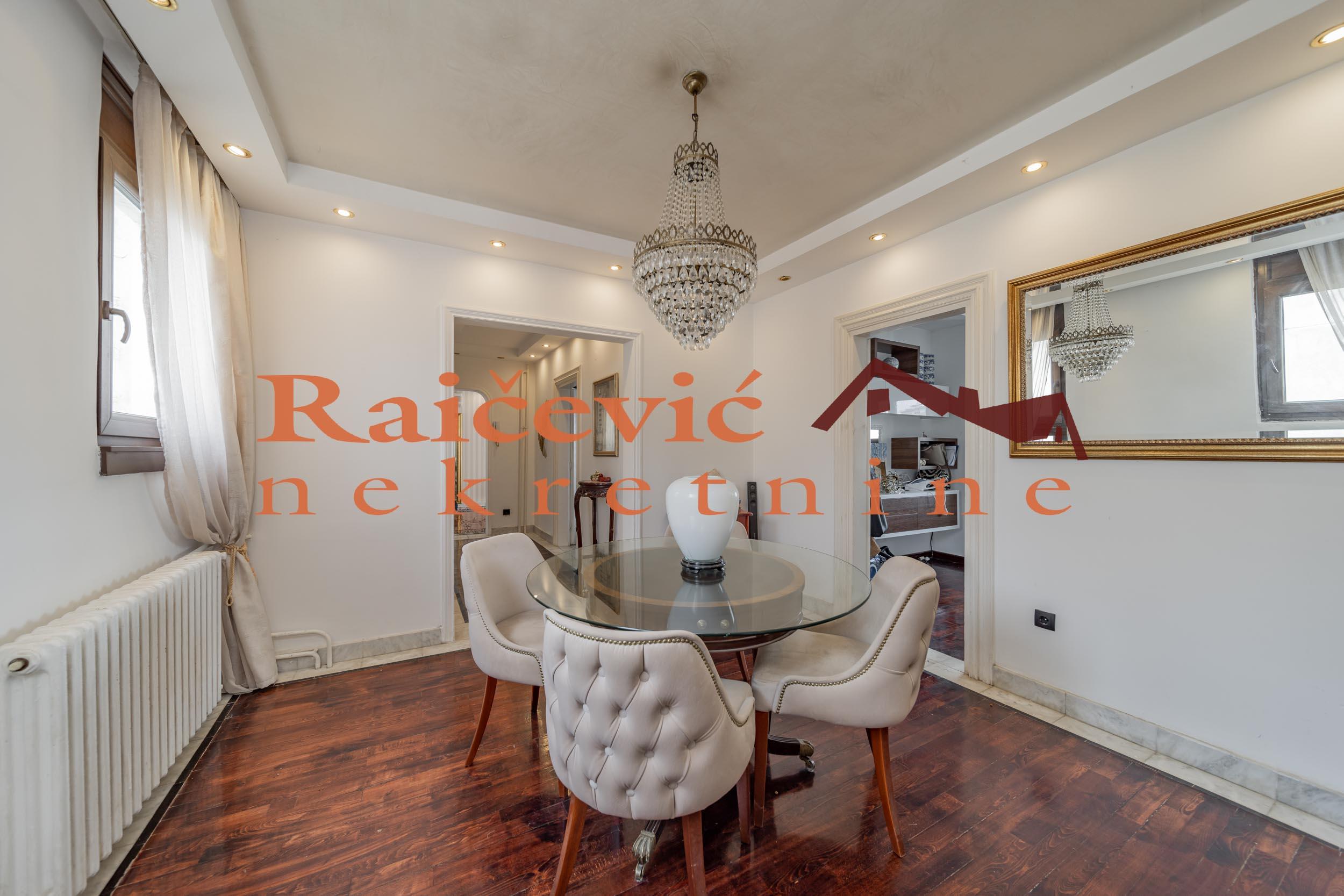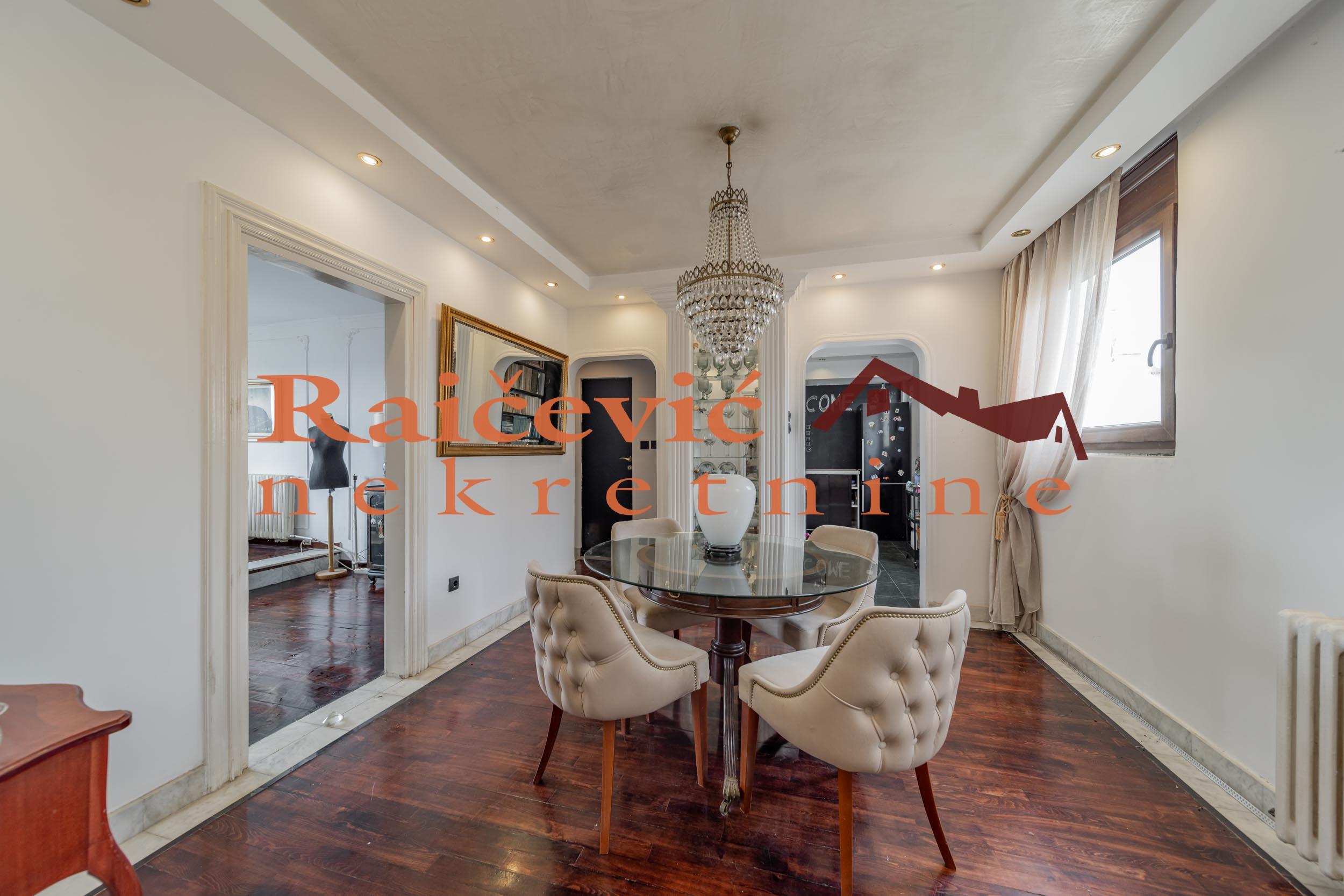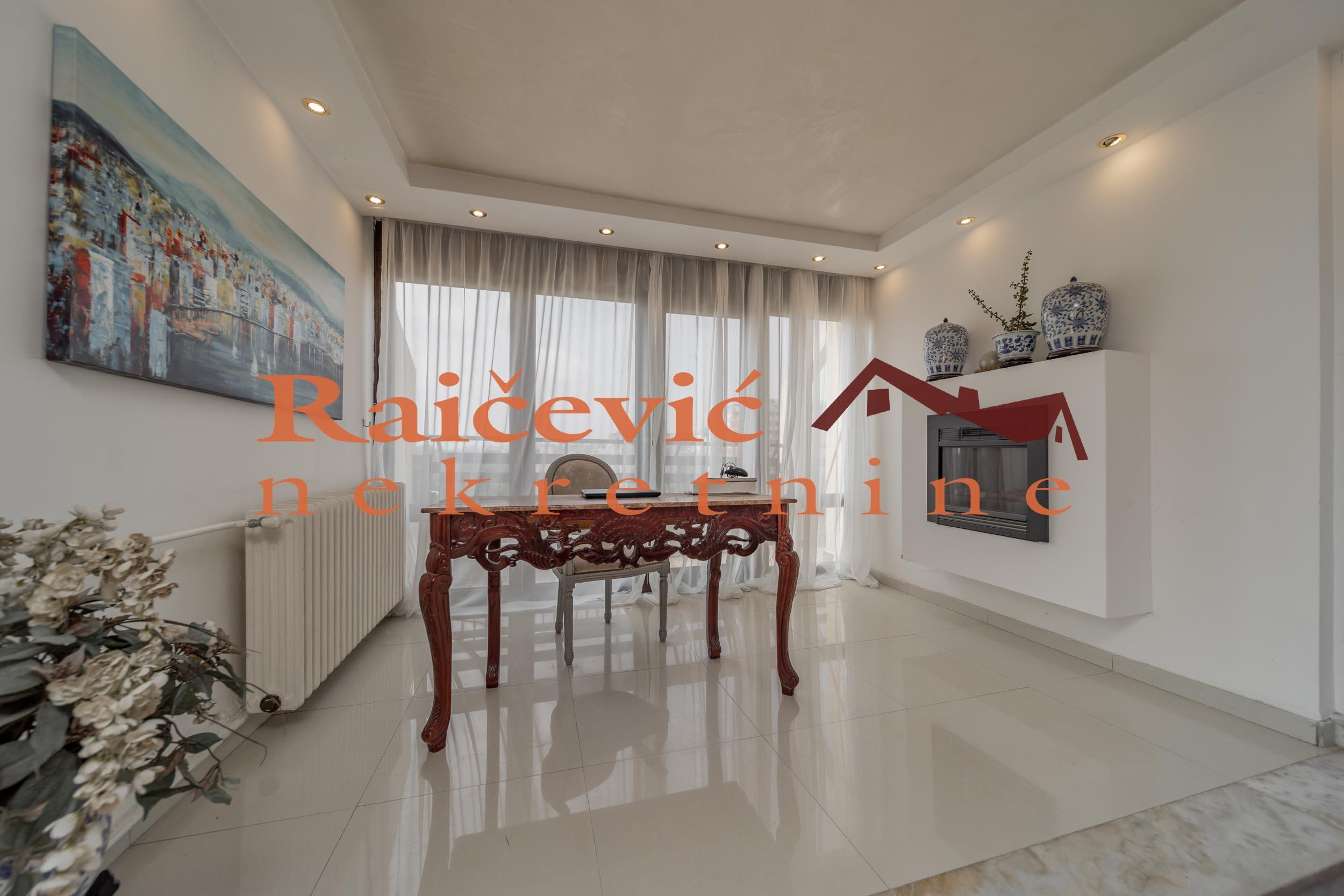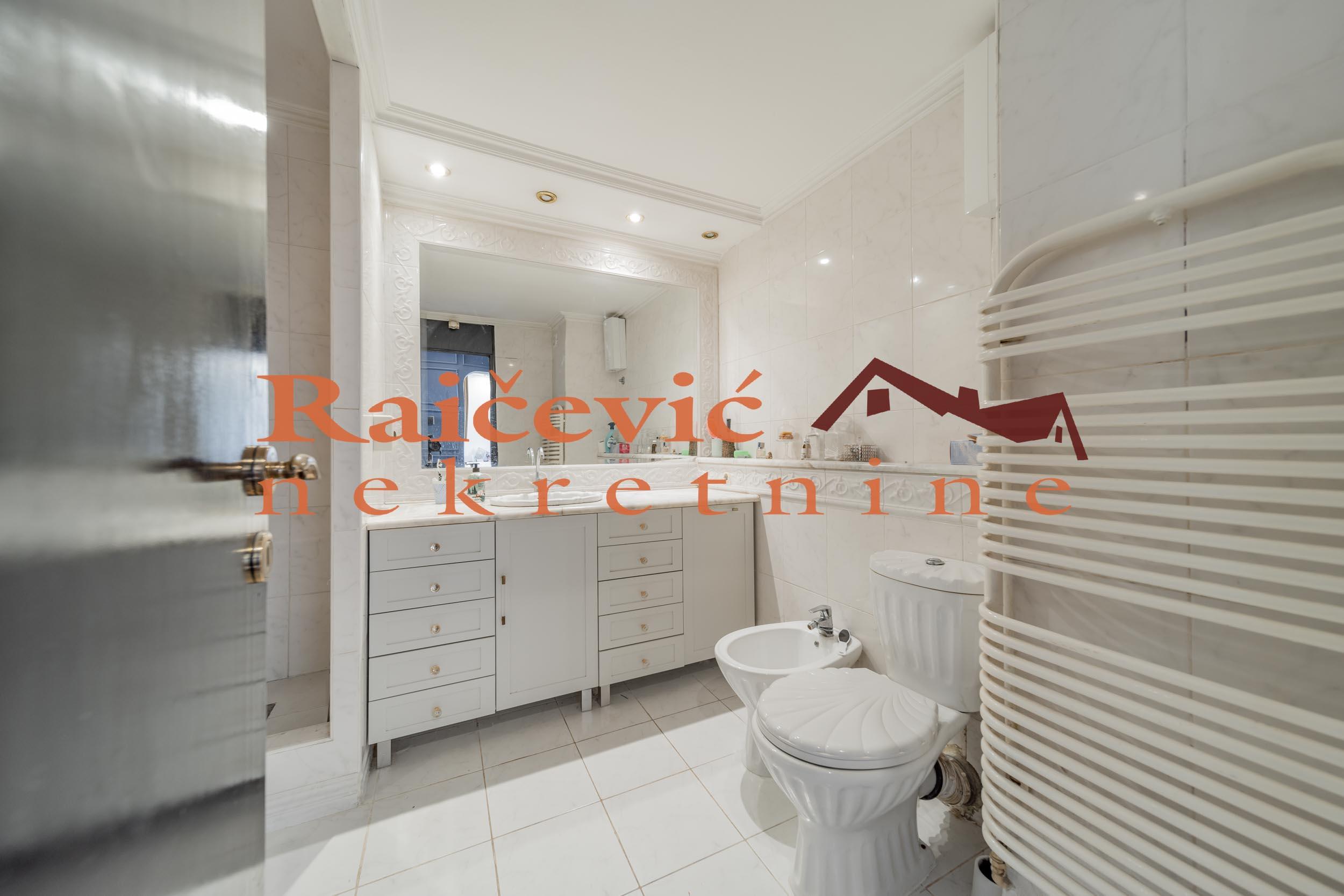 SVI NASI KUPCI DOBIJAJU VREDAN POKLON! Novi Beograd, Blok 70 A, Omladinskih brigada, 4.0, 167 m2 sa 2 terase, VIII od VIII spratova, cg, telefon, 2 lifta, interfon, video nadzor, ktv, internet, klima, kamin, odmah useljiv, uknjizen na 115 m2, podrum, starogradnja. Cetvorosoban stan, veoma svetao i topao, orijentisan jugoistocno. Pozicioniran je u veoma mirnom kraju Novog Beograda, bez saobracajne buke, sa pogledom ka reci Savi i ka zelenilu koje se nalazi oko zgrade. Prelep pogled sa terase na koju se izlazi iz dnevnog boravka. Prostorije: velika dnevna soba, trpezarija sa kuhinjom, 3 spavace sobe, kupatilo, mali toalet, ostava, hodnik i 2 terase. Stan ima veliku terasu oko 40 m2 i ulazni hodnik koji nije uracunat u kvadraturu. Veoma je komforan, odise luksuzom, sa odlicnim rasporedom prostorija. Prodaje se kompletno namesten i opremljen za harmonican zivot. Kvalitetna oprema: PVC stolarija u boji drveta, protocni bojler, jakuzi, podovi su u mahagoni parketu, u kupatilu je mermer, luksuzna keramika, nova sigurnosna vrata, kuhinja je opremljena sa ugradnim elementima. U svim prostorijama su napravljene kaskade za abijentalnu rasvetu u prostorijama. U stanu postoji i kamin. Niski troskovi za struju i infostan. Zgrada je u dobrom stanju, lepo je odrzavana i cista. Stan poseduje pripadajuci podrum, kao i manju ostavu na ulazu. Ispred zgrade postoji velika parking zona. Lokacijski je ovaj stan jedan od najboljih izbora na Novom Beogradu. U blizini se nalaze: Delta City, Belvil, Tehnomanija, Salon BMW, park za decu, vrtic, stomatoloska ordinacija, skole, bolnice, marketi, kafici, Savski kej, autobuske linije: 9A, 89, 95, E6 i tramvajske linije: 7L, 9L, 11, 13. Cena 450 000 evra. Kupite ovu nekretninu preko agencije Raicevic nekretnine i POKLANJAMO VAM idejno resenje dizajna enterijera! Pozovite nas za vise informacija. Agencijska provizija koju placa KUPAC iznosi 2 % od dogovorene kupoprodajne cene. Raicevic nekretnine 065/452-77-77
