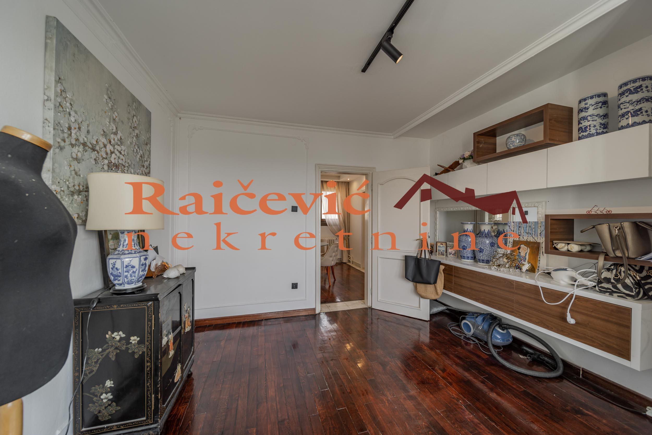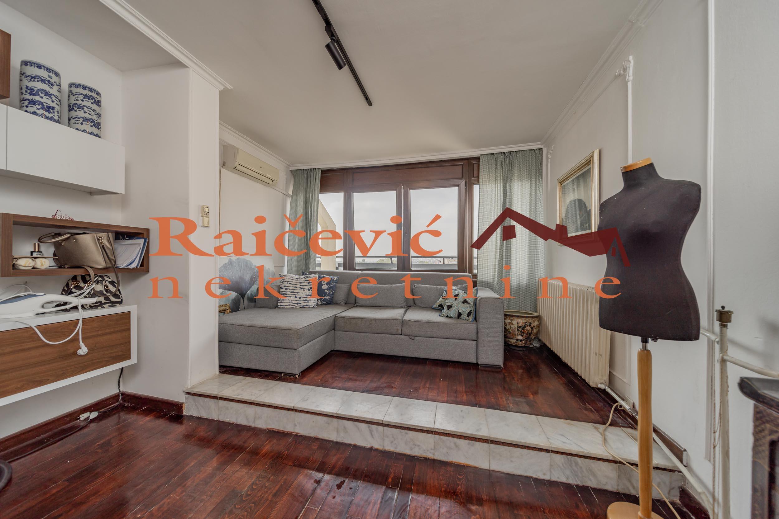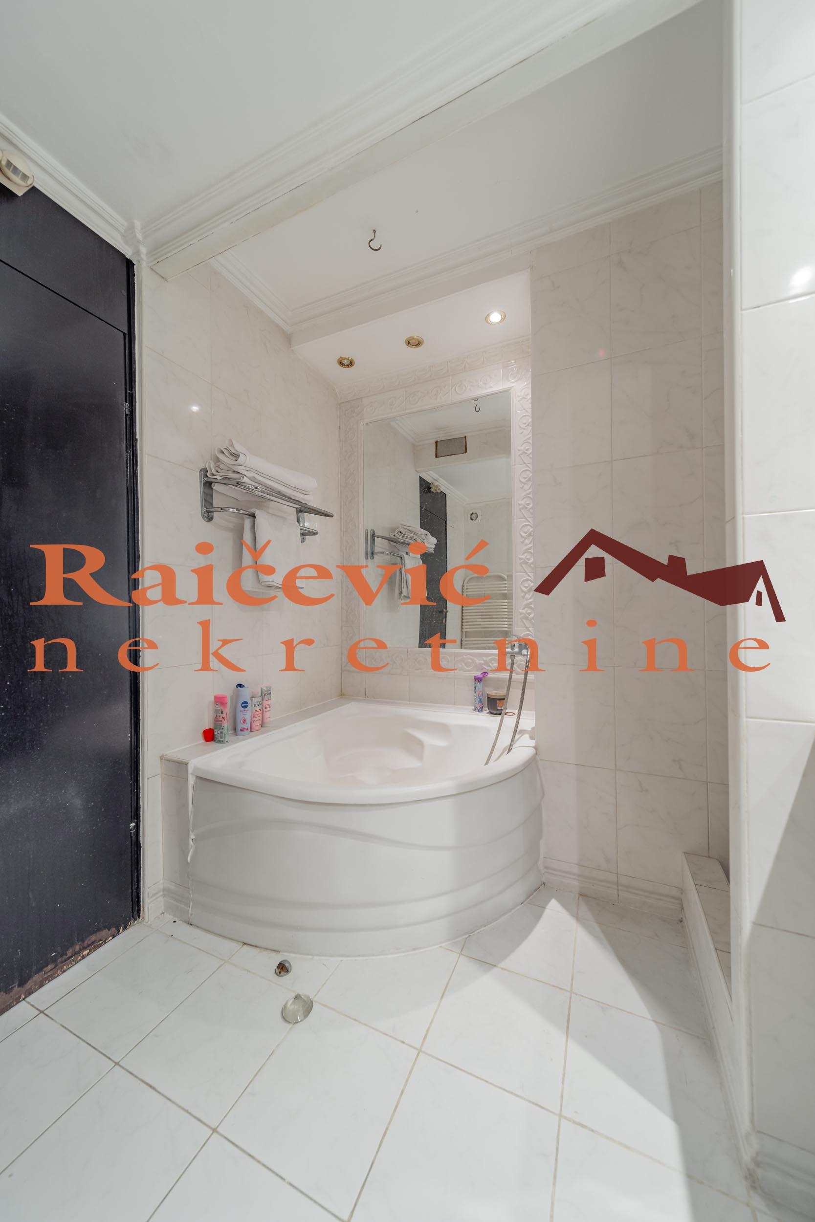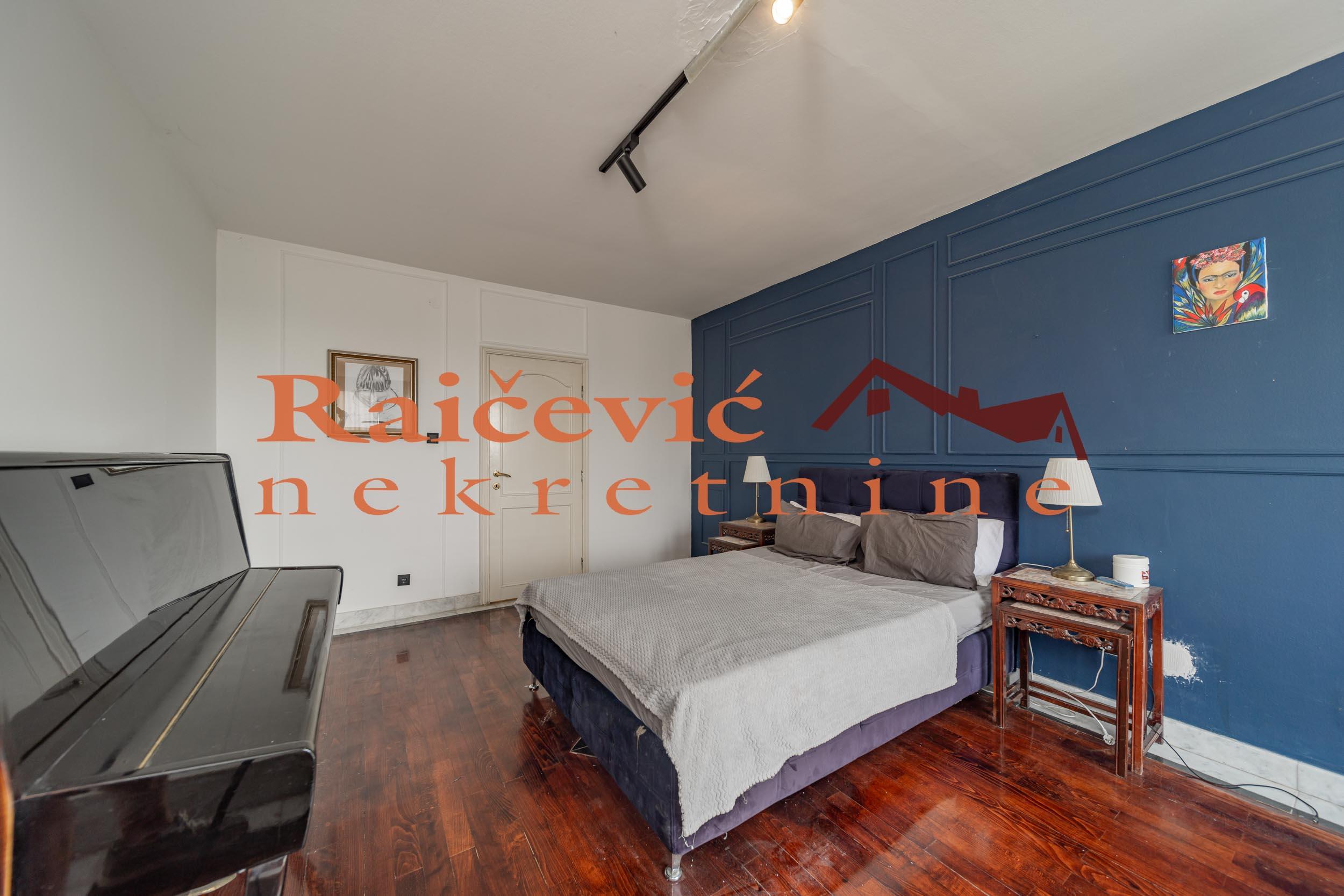 SVI NASI KUPCI DOBIJAJU VREDAN POKLON! Novi Beograd, Blok 70 A, Omladinskih brigada, 4.0, 167 m2 sa 2 terase, VIII od VIII spratova, cg, telefon, 2 lifta, interfon, video nadzor, ktv, internet, klima, kamin, odmah useljiv, uknjizen na 115 m2, podrum, starogradnja. Cetvorosoban stan, veoma svetao i topao, orijentisan jugoistocno. Pozicioniran je u veoma mirnom kraju Novog Beograda, bez saobracajne buke, sa pogledom ka reci Savi i ka zelenilu koje se nalazi oko zgrade. Prelep pogled sa terase na koju se izlazi iz dnevnog boravka. Prostorije: velika dnevna soba, trpezarija sa kuhinjom, 3 spavace sobe, kupatilo, mali toalet, ostava, hodnik i 2 terase. Stan ima veliku terasu oko 40 m2 i ulazni hodnik koji nije uracunat u kvadraturu. Veoma je komforan, odise luksuzom, sa odlicnim rasporedom prostorija. Prodaje se kompletno namesten i opremljen za harmonican zivot. Kvalitetna oprema: PVC stolarija u boji drveta, protocni bojler, jakuzi, podovi su u mahagoni parketu, u kupatilu je mermer, luksuzna keramika, nova sigurnosna vrata, kuhinja je opremljena sa ugradnim elementima. U svim prostorijama su napravljene kaskade za abijentalnu rasvetu u prostorijama. U stanu postoji i kamin. Niski troskovi za struju i infostan. Zgrada je u dobrom stanju, lepo je odrzavana i cista. Stan poseduje pripadajuci podrum, kao i manju ostavu na ulazu. Ispred zgrade postoji velika parking zona. Lokacijski je ovaj stan jedan od najboljih izbora na Novom Beogradu. U blizini se nalaze: Delta City, Belvil, Tehnomanija, Salon BMW, park za decu, vrtic, stomatoloska ordinacija, skole, bolnice, marketi, kafici, Savski kej, autobuske linije: 9A, 89, 95, E6 i tramvajske linije: 7L, 9L, 11, 13. Cena 450 000 evra. Kupite ovu nekretninu preko agencije Raicevic nekretnine i POKLANJAMO VAM idejno resenje dizajna enterijera! Pozovite nas za vise informacija. Agencijska provizija koju placa KUPAC iznosi 2 % od dogovorene kupoprodajne cene. Raicevic nekretnine 065/452-77-77