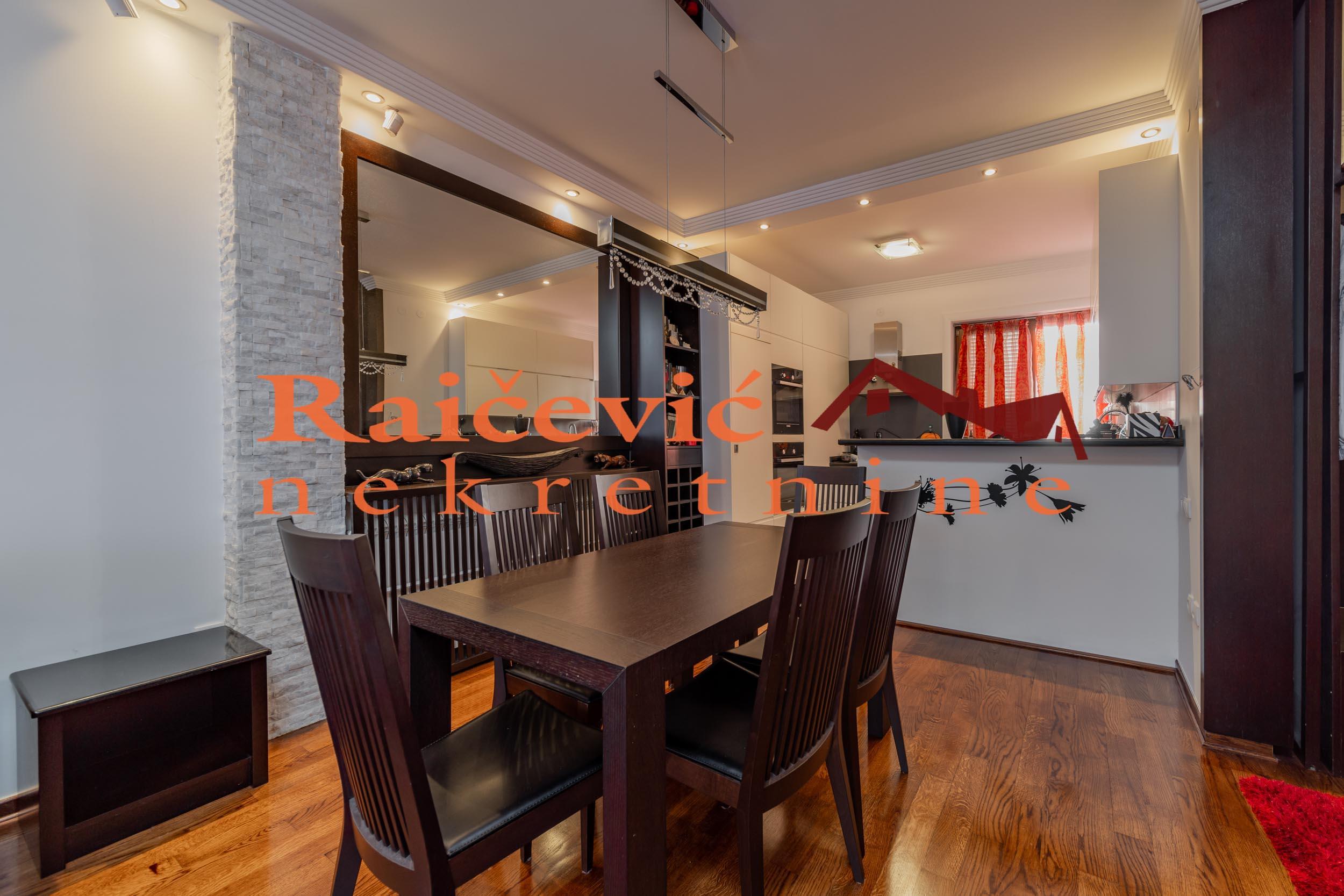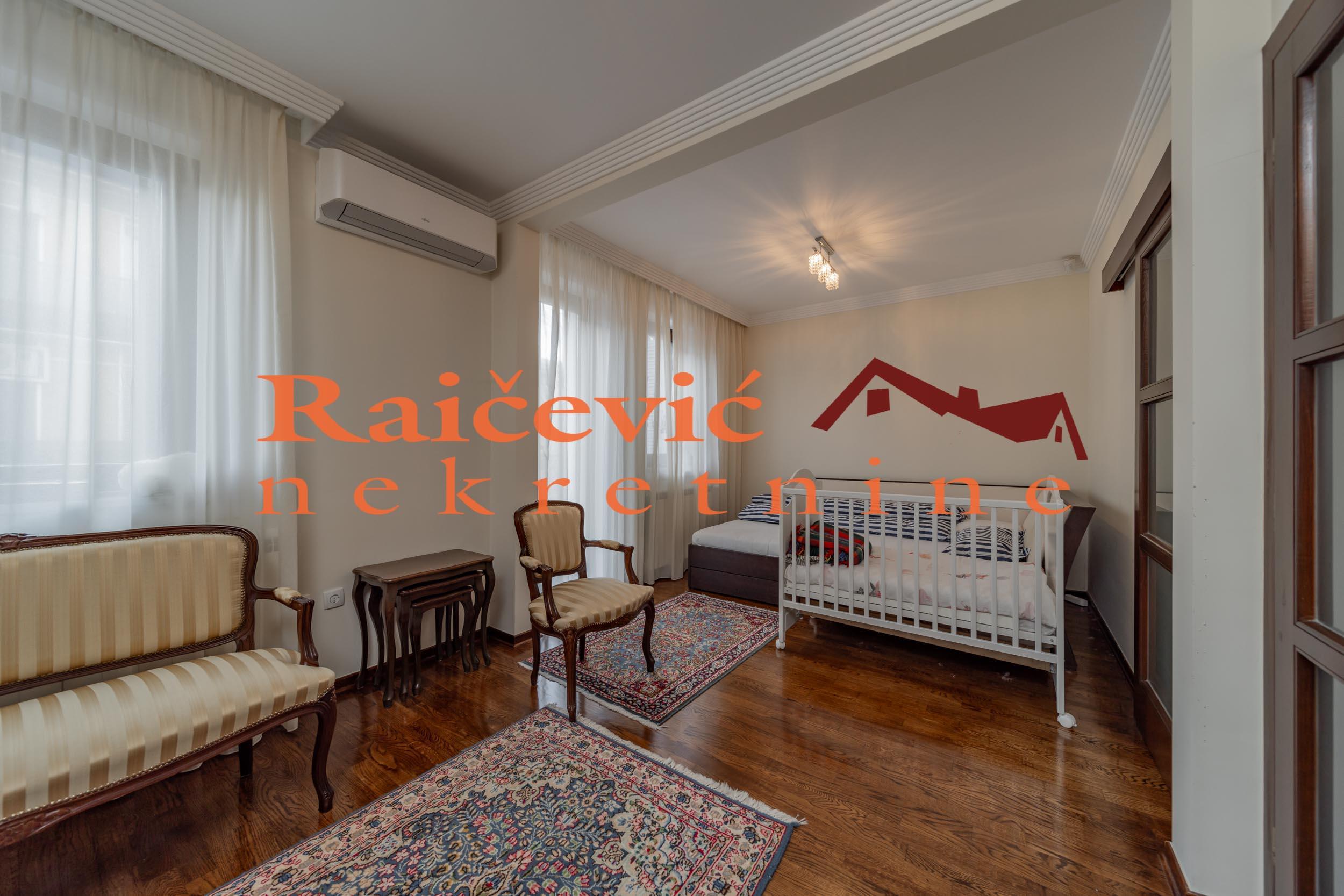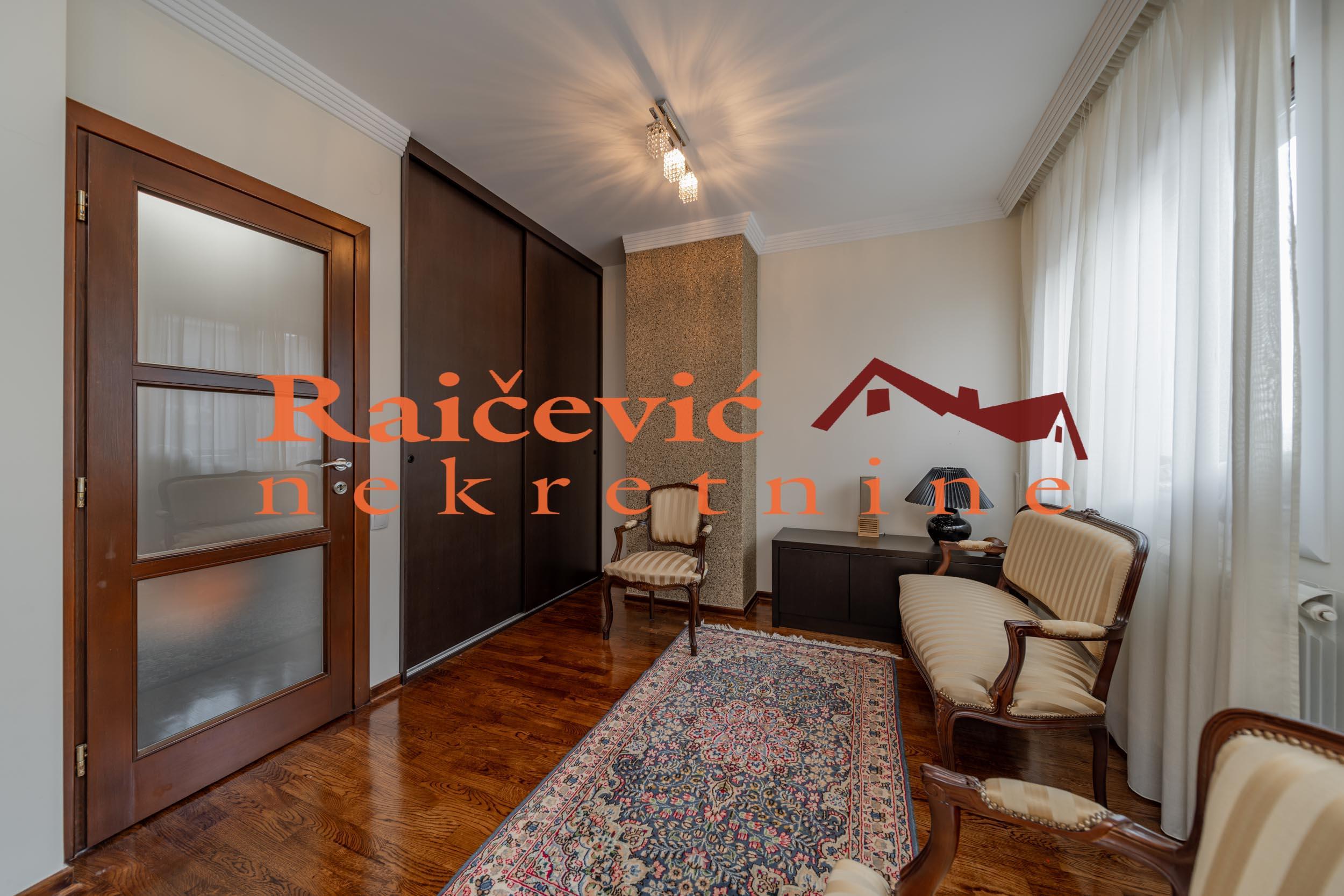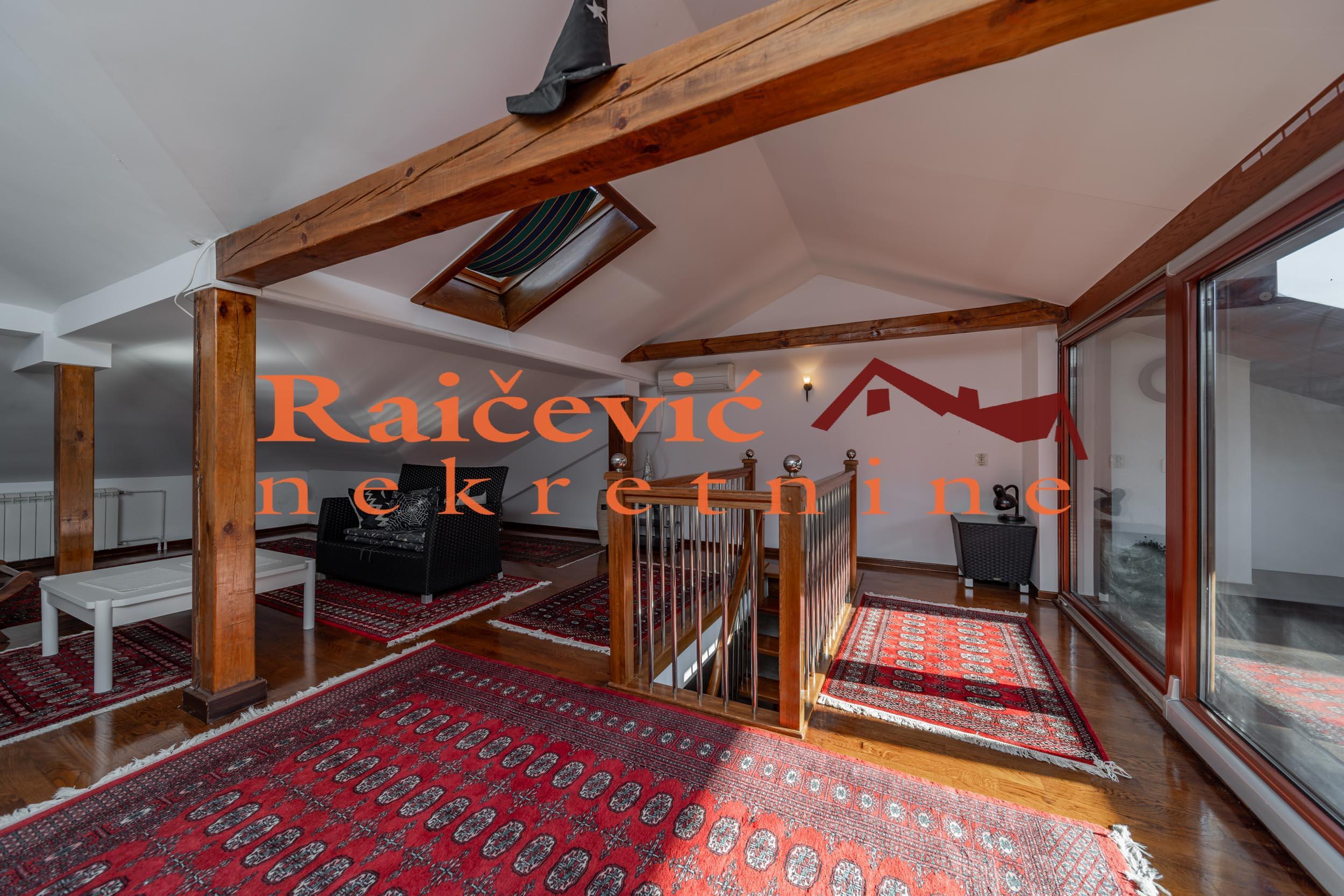 SVI NASI KUPCI DOBIJAJU VREDAN POKLON! Dedinje, Diane Budisavljevic, 5.0 kuca u nizu, 288 m2 sa 3 terase, PR + VPR + I + PTK, eg-gas, telefon, bez lifta, interfon, ktv, internet, useljiva po dogovoru, uknjizena na 199 m2 (130 m2 kao stan i 61.02 m2 kao garaza i 7.87 m2 pomocne prostorije), novija kuca iz 2008. godine. U mirnom delu Dedinja nalazi se luksuzna kuca u nizu, funkcionalnog rasporeda, svetlih i komfornih prostorija, dvostrano orijentisana, sa velikim staklenim povrsinama i lepim dvoristem. U odlicnom stanju, izuzetno odrzavana, bez dodatnih ulaganja. Sastoji se od 4 nivoa, ukupne povrsine svih etaza sa terasama 288 m2, uknjizena na 199 m2: - U prizemlju su garaza, teretana, mini kuhinja, kupatilo i ostava. Ispred garaze je jos jedno parking mesto. - Na visokom prizemlju su ulazni hol sa stepenistem, komforan dnevni boravak povezan sa trpezarijom i kuhinjom, i kupatilo. Iz dnevnog boravka se izlazi na terasu i lepo sredjeno dvoriste. - Prvi sprat je spavaci deo, koji cine 3 spavace sobe, kupatilo, terasa i hodnik. - Potkrovlje je lepo sredjen otvoren prostor za odmor i rekreaciju, koji ima izlaz na veliku terasu. Za preporuku porodicama koje zele zivot u miru, tisini, prirodi i zelenilu. Cena 850 000 evra. Kupite ovu nekretninu preko agencije Raicevic nekretnine i POKLANJAMO VAM idejno resenje dizajna enterijera! Pozovite nas za vise informacija. Agencijska provizija koju placa KUPAC iznosi 2 % od dogovorene kupoprodajne cene. Raicevic nekretnine 060/3056058