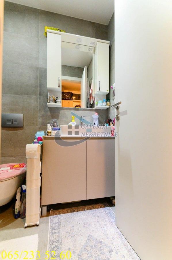 2.0, 48m2 (terasa 5m2), 2/5, CG, dva lifta, KTV, internet, interfon, novogradnja Ulica Vojislava Nanovića se prostire između ulica Ustaničke i Todora Dukina a u neposrednoj blizini opštine Voždovac. Blizina osnovne škole, vrtića, Doma zdravlja, opštine, pijace, pošte, Opšteg i Specijalnog suda utiče na jednu od traženijih lokacija za udoban život, pa time i sigurna investicija. U prilici smo da Vam ponudimo dvosobnu nepokretnost, koja se nalazi na drugom spratu od pet, nove stambene zgrade useljene 2021. godine u kompleksu Merin Hill. Potpunu privatnost pruža kontrolisani pristup ulaska u kondominijum kao i sigurnost uz 24/7 video nadzor i profesionalno održavanje. Sam stan je svetao, jednostrano orijentisan (suprotno od ulice i ka uređenoj unutrašnjosti komplexa), sunčan i bez buke. Dobro projektovan i osmišljen, maksimalno iskorišćene postojeće kvadrature, sve prostorije su komotne i funkcionalno raspoređene, sa centralnim grejanjem po utrošku, u kupatilima je podno grejanje, stolarija aluminijum-drvo sa komarnicima, roletne sa elektro podizačima..... Dnevni boravak deli prostor sa trpezarijskim delom i kuhinjom u modernom open space stilu a lepa terasa dodatno doprinosi udobnosti. Ova nepokretnost je prava prilika za kupce koji traže kvalitetan i funkcionalan stan za život ili kao investiciju za izdavanje, u dobrom i mirnom kraju grada. Od prostorija: hodnik, dnevni boravak sa trpezarijom i kuhinjom, spavaća soba, kupatilo, terasa. Uknjižen na 48m2, brzo useljiv. Agent prodaje: Zoran Vučković 063/ 250 763