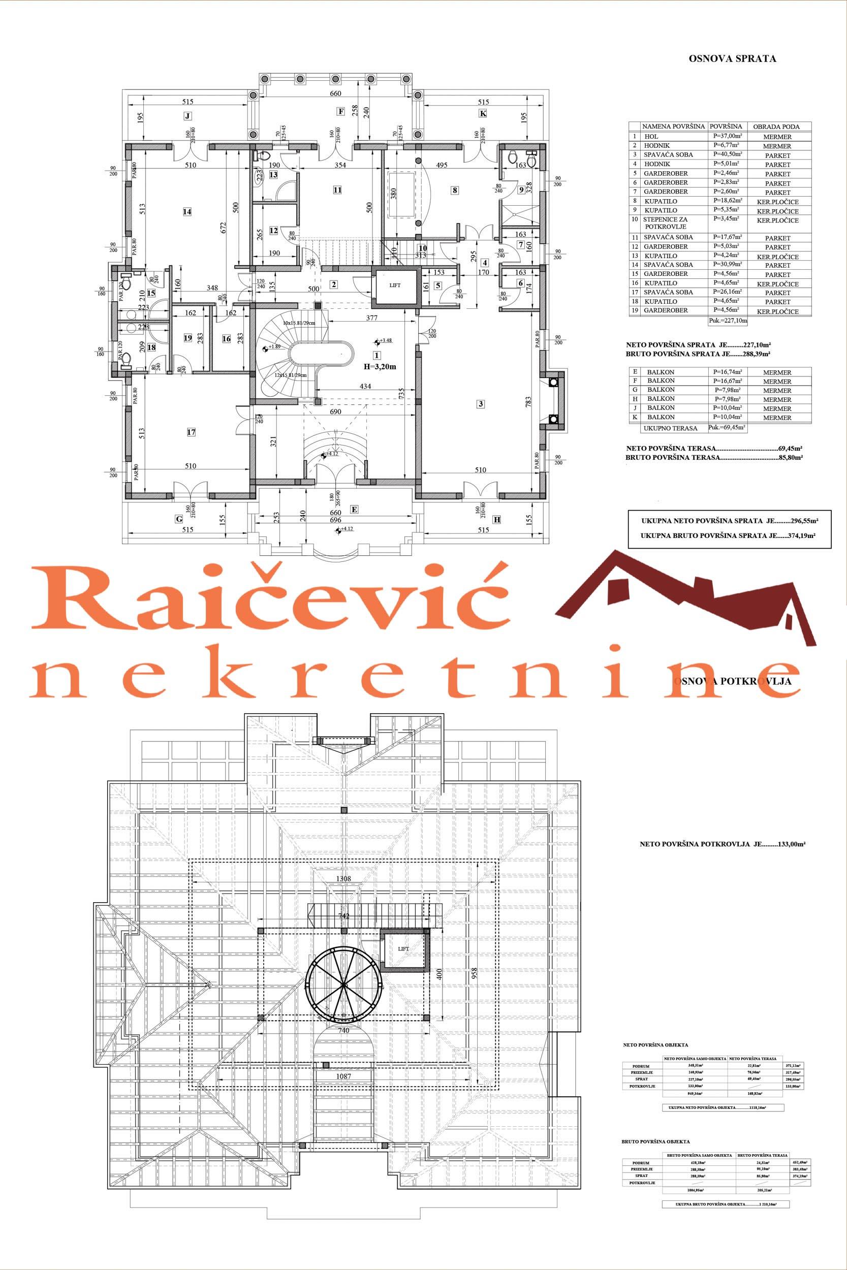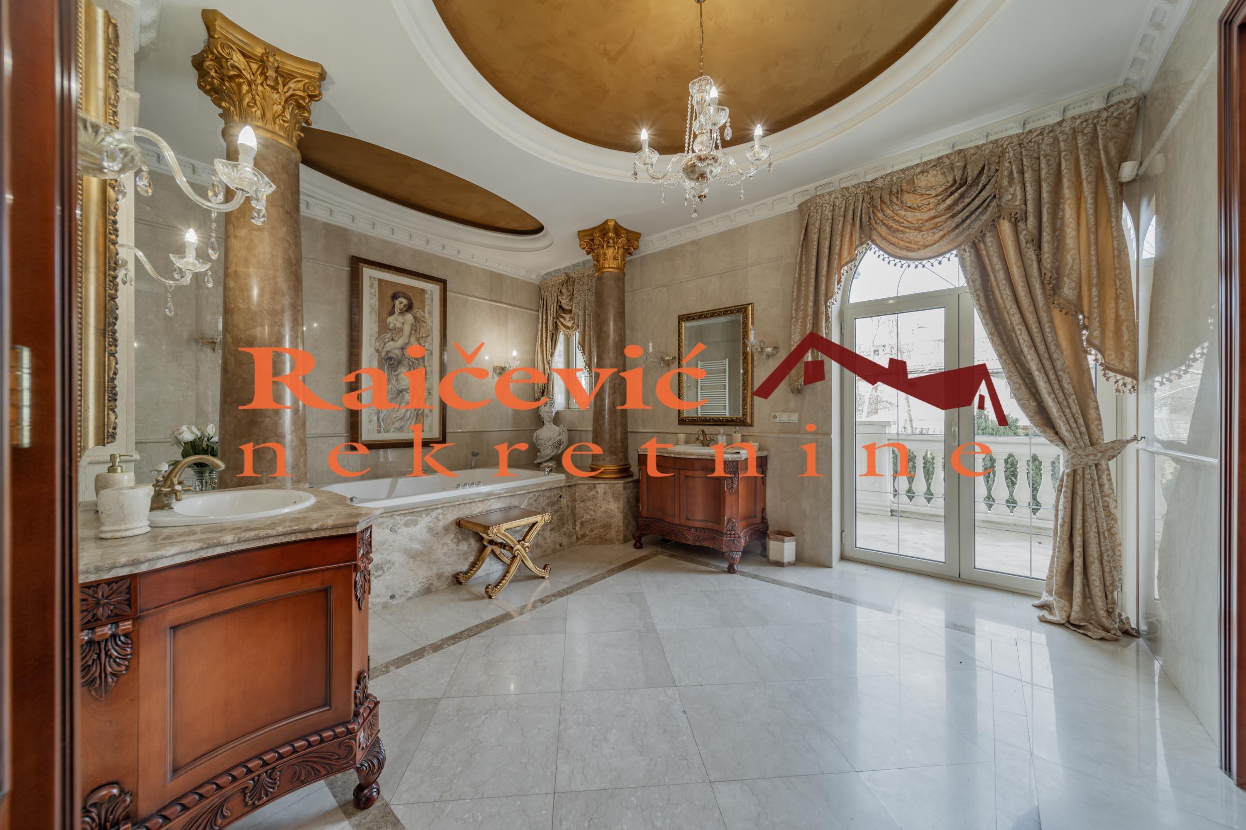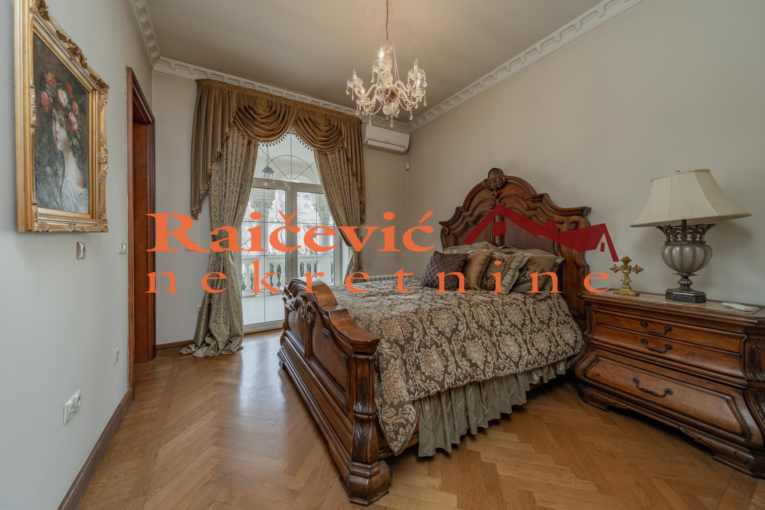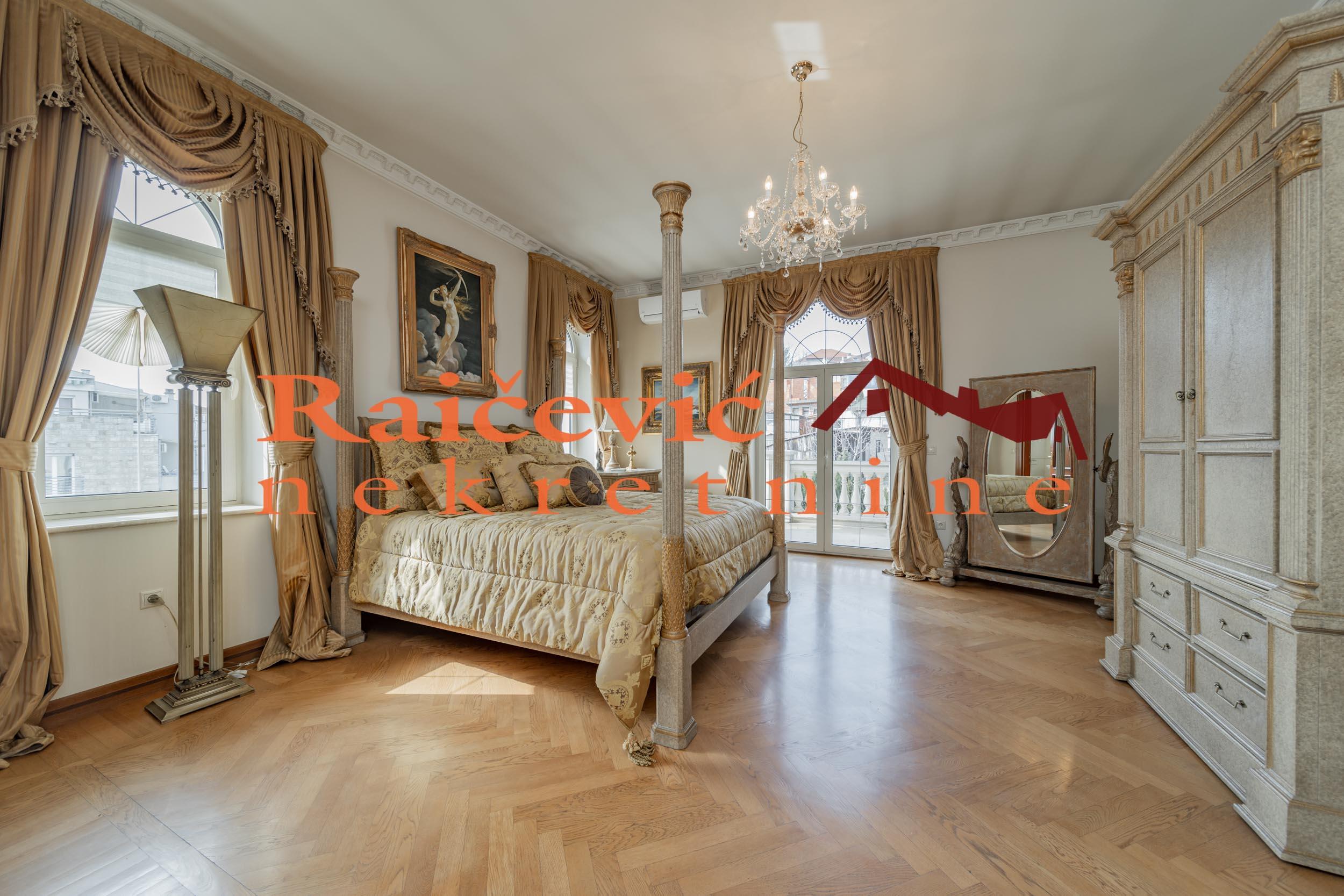Dedinje, Aleksandra Tirnanica Tirketa, 9.0 kuca od 1.118 m2 sa 4 terase, na placu od 11.39 ari, PSUT + PR + I + PTK, eg-gas, telefon, lift, ktv, klima, odmah useljiva, luks stanje, namestena, uknjizena u osnovi na 389 m2, salonskog tipa, garaza od 90 m2, vise parking mesta, dvoriste, novogradnja. Luksuzna vila na Dedinju. Raskosno zdanje na ogradjenom placu pravilnog oblika, oplemenjenim zelenilom i letnjikovcem. Svetao, komforan prostor sa visinom plafona od 3.20 m. Sa terasa se pruza fantastican pogled. Izuzetno kvalitetna gradnja: sendvic zid, pikovana fasada, bakarni krov, italijanski mermer, ograde od kovanog gvozdja, lift koji povezuje sva cetiri nivoa, grejaci za topljenje snega i leda na prilazu garazi i stepenistu, sve sobe su klimatizovane (centralna spoljna jedinica), podno grejanje u kupatilima, dva kotla za gas, automatske prskalice za zalivanje zelenila. Objekat je projektovan u cetiri nivoa: I nivo (PSUT) - 348 m2: hodnik, lift, stepenisni prostor, dve sobe, sala za bilijar, teretana, kupatilo, tehnicka prostorija, ostave i garaza od 90 m2. II nivo (PR) - 241 m2: ulazni hol sa stepenistem i dva garderobera, lift, dnevni boravak sa kaminom, trpezarija, kuhinja, radna soba, tehnicka prostorija, kupatilo i dve terase. III nivo (I sprat) - 227 m2: hol sa stepenistem, lift, cetiri spavace sobe (svaka ima svoje kupatilo i garderobere), dve terase i stepeniste za potkrovlje. IV nivo (PTK) - 133 m2: otvoren prostor sa liftom. Vila je optemljena raskosnim, pazljivo biranim namestajem. Ona predstavlja savrsen spoj luksuza I funkcionalnosti te pruza izuzetan komfor za one koji u njoj borave. Idealna je za ambasade, konzulate, diplomatska predstavnistva, predstavnistva svetskih brendova, sedista raznih privrednih i drustvenih subjekata, kao i za smestaj porodice koja zeli raskos i luksuz. Obavezan depozit. Zakupac placa porez na zakup nepokretnosti. Cena 12 000 evra. Agencijska provizija koju placa ZAKUPAC iznosi: 50 % od prve mesecne zakupnine za zakup u trajanju od 1 do 12 meseci. 75 % od prve mesecne zakupnine za zakup u trajanju od 13 do 59 meseci. 100 % od prve mesecne zakupnine za zakup u trajanju od 60 meseci (5 god) i vise. prostorije Raicevic nekretnine 060/3056068