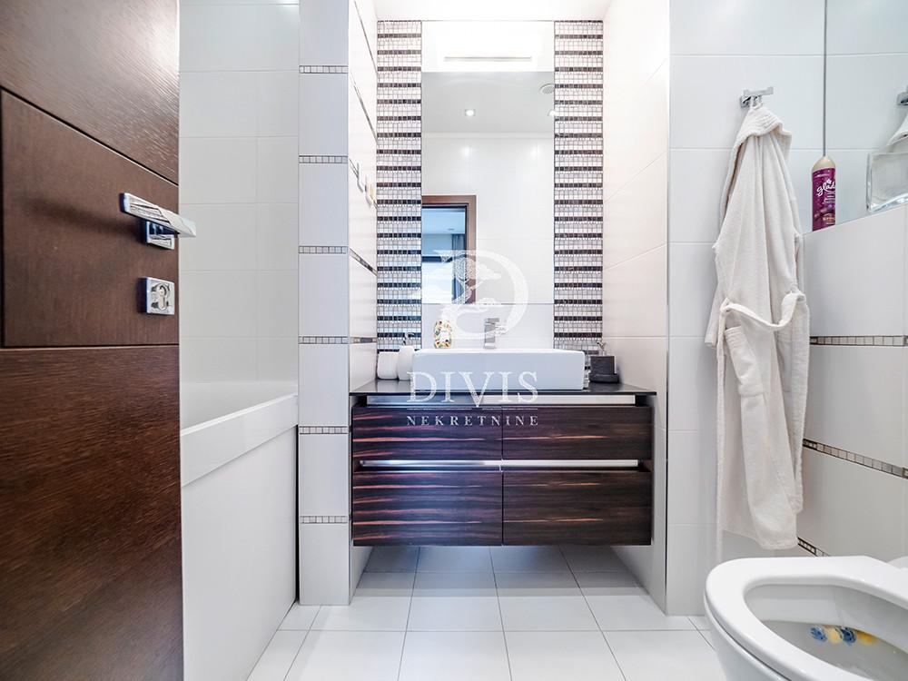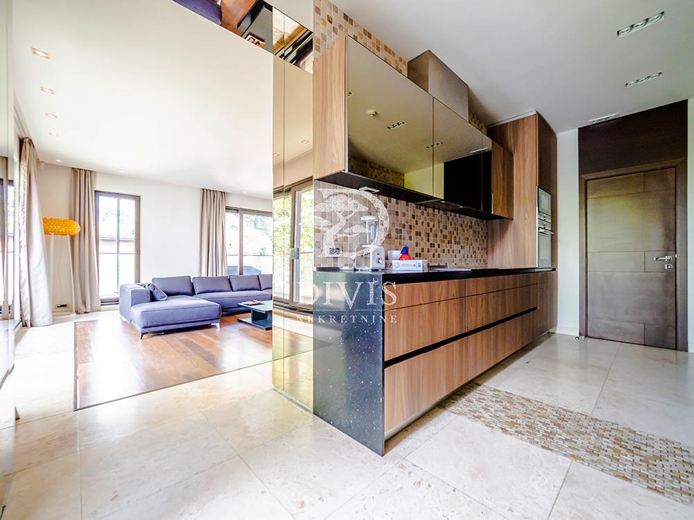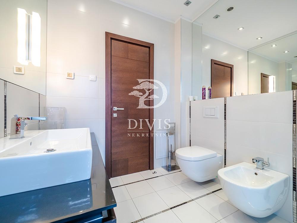 Izdajemo odličan četvorosoban stan od 234m2 sa tri parking mesta na Dedinju, u ulici Serdar Jola. Stan se nalazi na prvom spratu (na terenu u novijoj zgradi, izgrađenoj od najsavremenijih materijala i sa ugrađenom luksuznom opremom (panoramski lift, prostrana garaža sa led osvetljenjem, 24h video i fizičko-tehničko obezbeđenje…). Stan je podeljen u dve zone (dnevna i spavaća). Dnevna se sastoji od velikog dnevnog boravka sa izlazom na veliku terasu, prostrane kuhinje, dela za trpezariju, velikog garderobera i gostinskog toaleta. Spavaća zona se sastoji od hodnika, tri prostrane spavaće sobe (svaka soba ima svoje kupatilo), ugradnih plakara. Iz svake spavaće sobe se izlazi na terasu.Na podu terasa je decking pod dok je terasa natkrivena žaluzinama. Visina plafona od 2.85m. Stan se izdaje kompletno namešten. Depozit u visini jedne mesečne kirije. Posrednička naknada je u skladu sa Opštim uslovima poslovanja Posrednika DIVIS NEKRETNINE DOO.