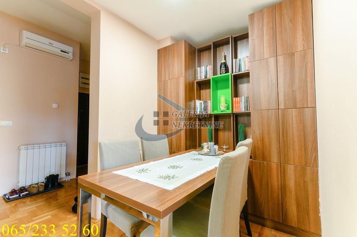 3.0, 58m2, 3/3, CG (kalorimetar), klima, interfon, internet, KTV Na samom vrhu Učiteljskog naselja, paralelno sa Bulevarom kralja Aleksandra, prostire se ulica Paje Jovanovića. Ovaj deo grada odlikuje mirno okruženje, sa dominantno nižom spratnošću i porodičnim tipom stanovanja, što ga čini izuzetno prijatnim za život. U neposrednoj blizini nalaze se Beo Shopping Centar, Aviv Park Zvezdara, SC Olimp, Cvetkova pijaca, kao i osnovne škole i vrtići. Lokacija je odlično povezana sa svim delovima grada putem više linija javnog prevoza. U prilici smo da Vam ponudimo funkcionalan trosoban stan koji se nalazi na poslednjem, trećem spratu odlično održavane stambene zgrade novije gradnje, bez lifta. Stan je dvostrano orijentisan, veoma svetao i bez potrebe za dodatnim ulaganjima. Raspored je dobro organizovan i omogućava komforno korišćenje svih prostorija, pa je prostor maksimalno iskorišćen i prilagođen savremenim potrebama stanovanja. Stolarija, kao i keramika, u odličnom su stanju, tako da je potrebno jedino higijensko krečenje. U stanu ostaje kuhinja sa ugradnim elementima, projektovana od strane arhitekte, a takođe ostaju i svi ugradni ormari. Grejanje je centralno sa kalorimetrom, što omogućava kontrolu troškova. Odličan stan u mirnom kraju, bez ulaganja – idealan kako za život, tako i kao investicija za izdavanje. Od prostorija: hodnik, dnevni boravak objedinjen sa kuhinjom i trpezarijom, dve spavaće sobe, kupatilo. Uknjižen na 58m2 i brzo useljiv. Agent prodaje: Zoran Vučković 063/250 763