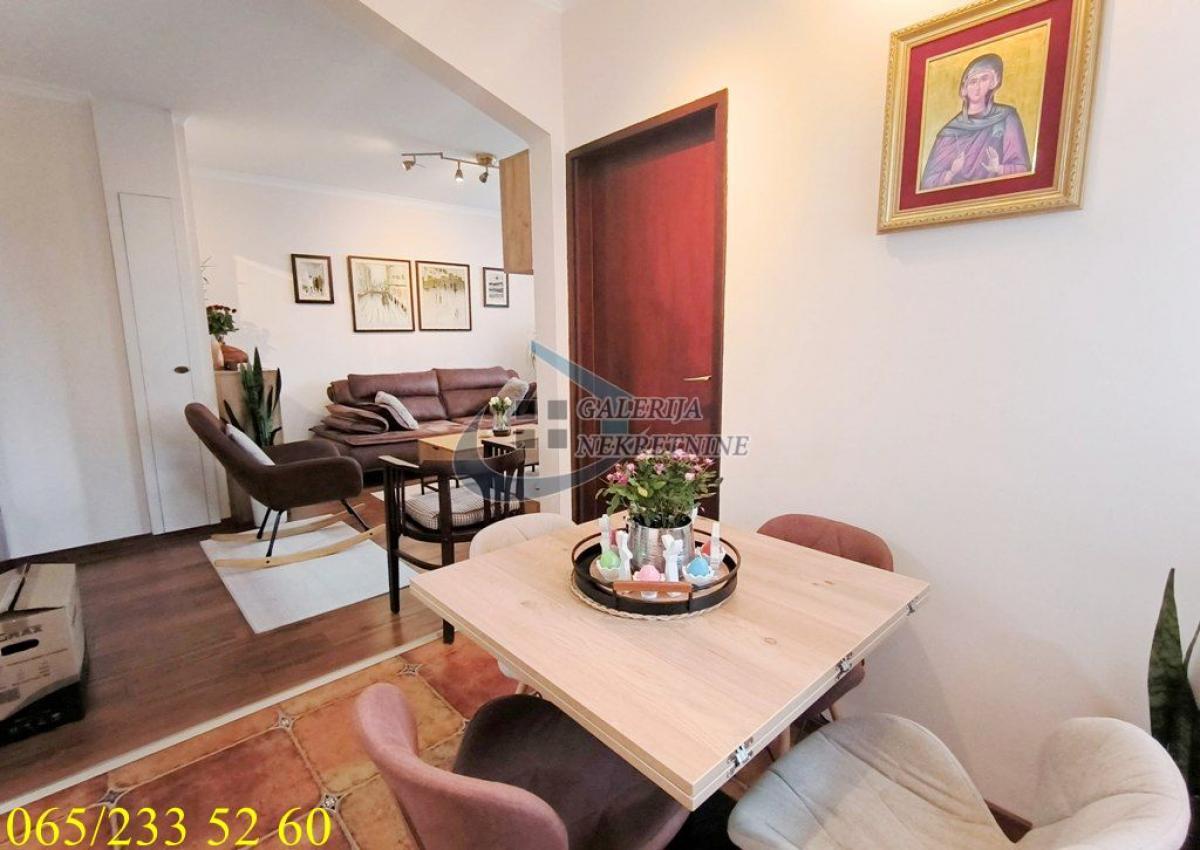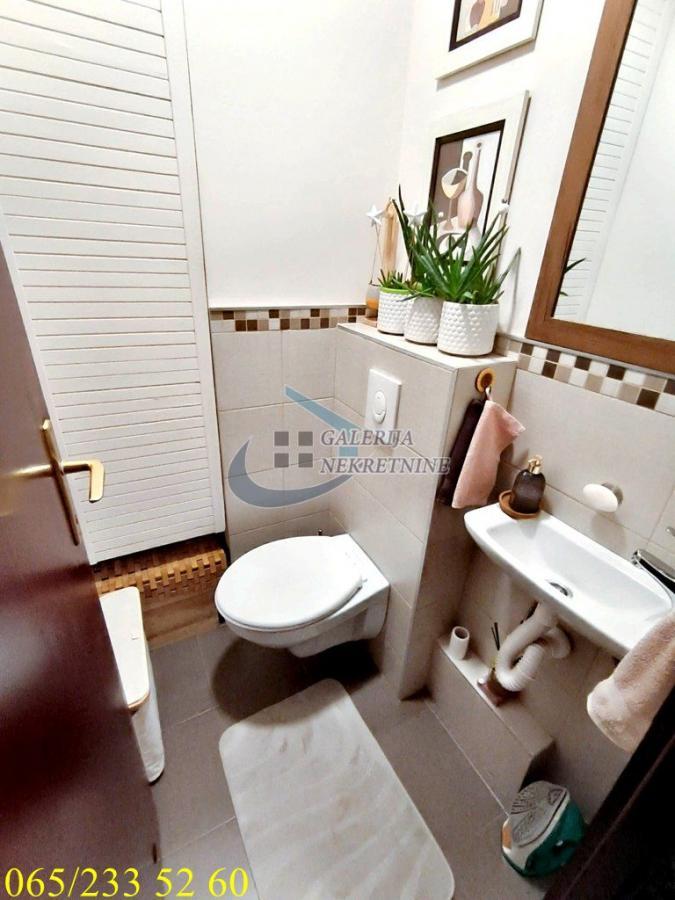 2.5, 64m2 (dve terase), 3/4, CG, interfon, internet, KTV, podrum, bez ulaganja Stambeni blok 62 na Novom Beogradu ograničen je ulicama Jurija Gagarina, Dušana Vukasovića, Nehruovom i Vojvođanskom. Ovaj deo grada je urbanistički isplaniran i zaokružen, sa ugodnim životom stanovnika kao prioritetom. Okruženje je vrlo mirno, sa puno zelenih površina i dosta parking mesta, a sve što je potrebno nalazi se u neposrednoj blizini. Mnogobrojnim linijama gradskog prevoza povezan je sa svim delovima grada. U prilici smo da Vam ponudimo komforan dvoiposoban stan na trećem spratu četvorospratnice bez lifta, izgrađene 2002. god. Ugaono je pozicioniran, orijentisan ka severoistoku i jugoistoku i sa dosta dnevnog svetla. Prostorije su vrlo funkcionalno raspoređene, pa je prostor maksimalno iskorišćen. Značajna udaljenost od ulice i zelena površina ispred zgrade garantuju mir u stanu, iz kog se pruža lep i otvoren pogled. Kompletno i vrlo kvalitetno je renoviran 2019. godine, nakon čega je ekstremno pedantno održavan, pa apsolutno nikakva ulaganja nisu potrebna. Komforu doprinose dva mokra čvora - kupatilo i toalet, kao i dve lepe terase, kao stvorene za uživanje. Grejanje je centralno. Stanu pripada podrum u zgradi, kao i pravo korišćenja zajedničke prostorije (vešernice) na međuspratu. Od prostorija: hodnik, dnevno-trpezarijski deo, kuhinja, predsoblje, dve spavaće sobe, kupatilo, toalet, dve terase. Uknjižen na 64m2 građevinske, odnosno 63m2 korisne površine, brzo useljiv. Agent prodaje: Isak Marčetić 064/167 53 81