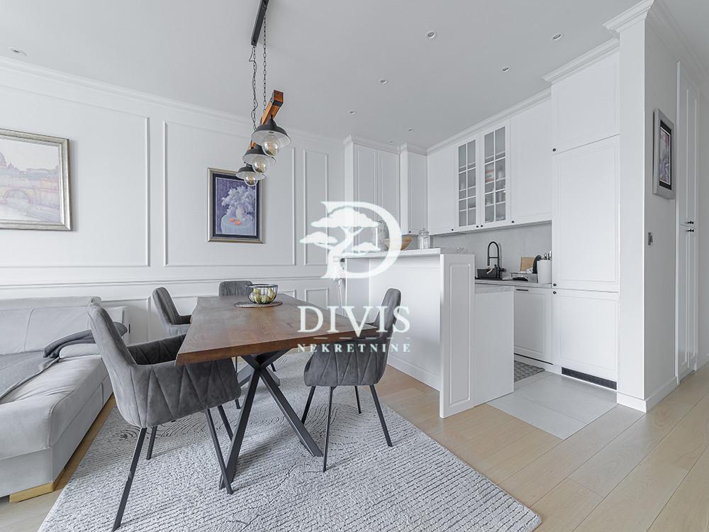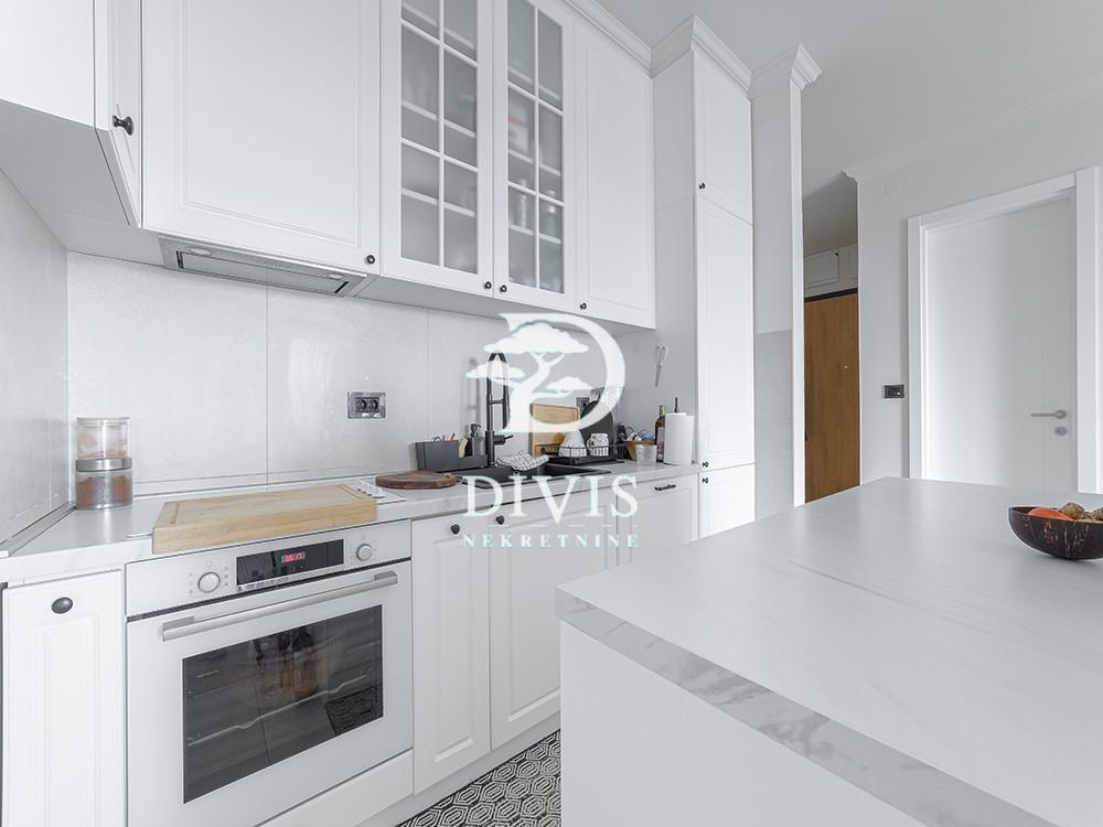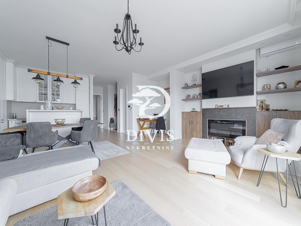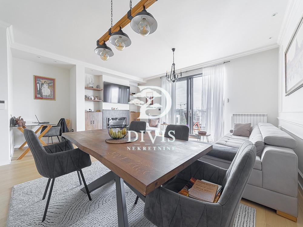 Prodaje se svetao četvorosoban stan na povučenoj etaži u jednom od najatraktivnijih kompleksa na Novom Beogradu. Dvostrano je orijentisan, kuhinja, trpezarija i dnevna soba imaju pogled ka Novom Beogradu, dok spavaće sobe gledaju ka Bežaniji i imaju prelep pogled na zelenilo. Stan je napravljen sa idejom da udobnost, komfor, funkcionalnost i luksuz budu na prvom mestu. Ovaj luksuzni stan ima ukupnu površinu od 138m2, prostran dnevni boravak sa kuhinjom i trpezarijom, master sobu sa walk-in garderoberom i kupatilom, dve dečije sobe, kupatilo, gostinjski toalet, ostavu, posebnu prostoriju za mašine za veš i 2 terase. Prodaje se kompletno opremljen i namešten. Kuhinja je radjena po meri kao i sve u stanu od ugradnog nameštaja. Uz stan se prodaju i dva pripadajuća garažna mesta po ceni od 25.000€ i 27.500€. Četvorosoban stan na povučenoj etaži na Novom Beogradu, sa dve terase i dva garažna mesta, prodaje se kompletno opremljen. Pogledajte i našu ponudu stanova na Novom Beogradu, kao i luksuzne nekretnine u našoj ponudi. Posrednička naknada je u skladu sa Opštim uslovima poslovanja Posrednika "DIVIS NEKRETNINE" d.o.o.