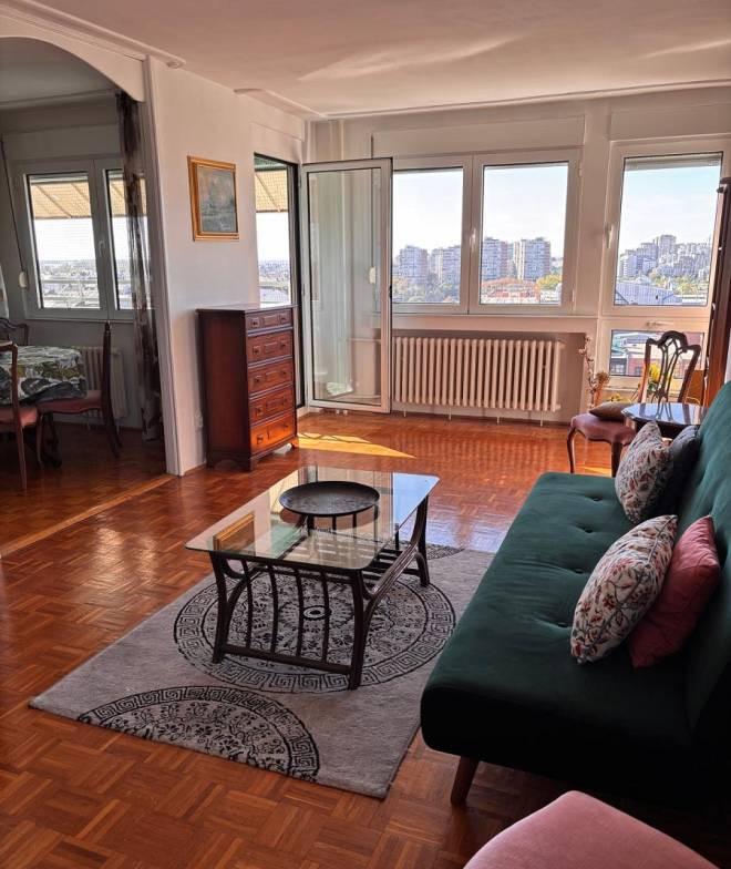 Izdaje se prostran i svetao dvosoban stan u Bloku 70, na Novom Beogradu, smešten na 11. spratu uredne zgrade sa liftom, sa otvorenim pogledom koji daje dodatnu vrednost prostoru. Stan je očuvan, funkcionalan i odmah useljiv. Sastoji se od ulaznog hodnika, prostrane i mirne spavaće sobe, dnevnog boravka punog prirodnog svetla, opremljenog kuhinjsko-trpezarijskog dela i kupatila. Iz dnevnog boravka se izlazi na komfornu terasu sa pogledom koji daje posebnu atmosferu stanu. Zgrada je dobro održavana, okružena zelenilom, sa puno parking mesta u blizini i odličnom povezanošću javnim prevozom. U neposrednoj blizini su reka, prodavnice, škole i svi sadržaji potrebni za udoban život. Dozvoljeni su kućni ljubimci. Useljiv od 01.05.2026.godine. Posrednička naknada je u skladu sa Opštim uslovima poslovanja Posrednika "DIVIS NEKRETNINE" d.o.o.