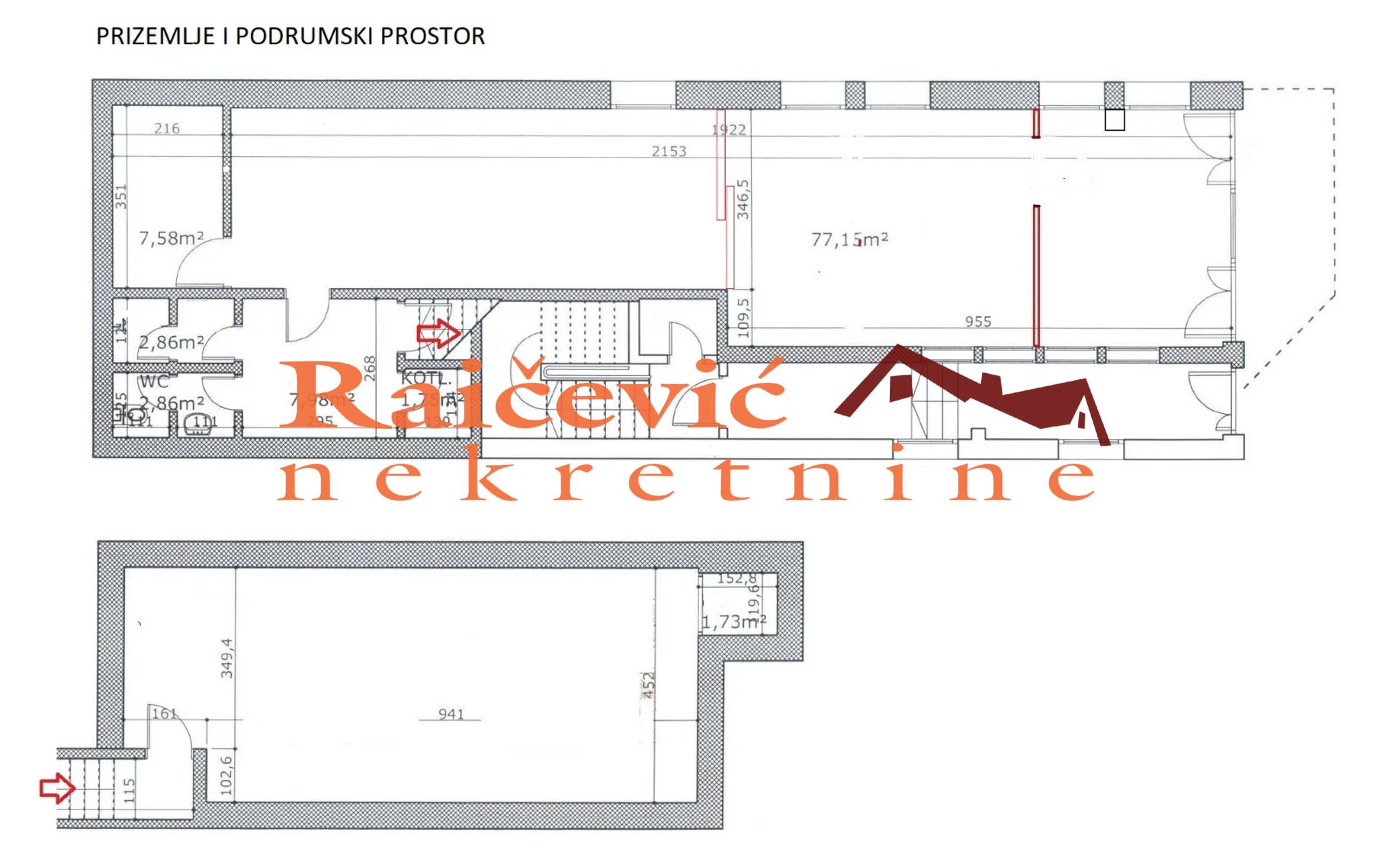 SVI NASI KUPCI DOBIJAJU VREDAN POKLON! Lekino brdo, Dragacevska, 7.0 poslovna zgrada od 299 m2, terasa + 45 m2 podrum, na 2 ara placa, PO + PR + I, eg, telefon, bez lifta, interfon, video nadzor, ktv, internet, klima, odmah useljiva, uknjizena kao 2 poslovna prostora na 299 m2 (149 m2 + 150 m2), dva parking mesta, zgrada iz 2006. godine. Odlicna poslovna zgrada sa dva parking mesta. Kvalitetna gradnja, objekat zidan punom opekom, podovi u hodnicima i prizemlju od granita, parket u kancelarijama. Zamenjena kompletna stolarija novom PVC i okrecen enterijer 2022. godine, fasada sredjena 2023. godine. Objekat ima dva ulaza - prizemlje i sprat imaju zasebne ulaze. Etazno grejanje je podeljeno po spratovima, dve telefonske linije, 3 klime, interfon, centralni alarmni sistem, mrezna racunarska veza izmedju kancelarija, sproveden opticki internet mts i kablovski SBB. Prostorije: Podrum - podrumski, skladisni prostor od 70 m2 - sa izdvojenim malim boksom. Prizemlje od 149 m2: izlog, pretprostor, velika prostorija sa ugradjenim mobilnim pregradnim vratima, 2 izdvojene manje prostorije i toalet. Prizemlje se trenutno koristi kao skladisni prostor. I sprat od 150 m2: 4 kancelarije, kuhinja, 3 toaleta i terasa. Ispred objekta, a u okviru parcele, su dva parking mesta. Prodaje se kompletno namesten. Moguca je i zamena za lokal sa izlogom uz doplatu ili odlozeno placanje, po dogovoru. Cena 547 000 evra. Kupite ovu nekretninu preko agencije Raicevic nekretnine i POKLANJAMO VAM idejno resenje dizajna enterijera! Pozovite nas za vise informacija. Agencijska provizija koju placa KUPAC iznosi 2 % od dogovorene kupoprodajne cene. Raicevic nekretnine 060/3056057