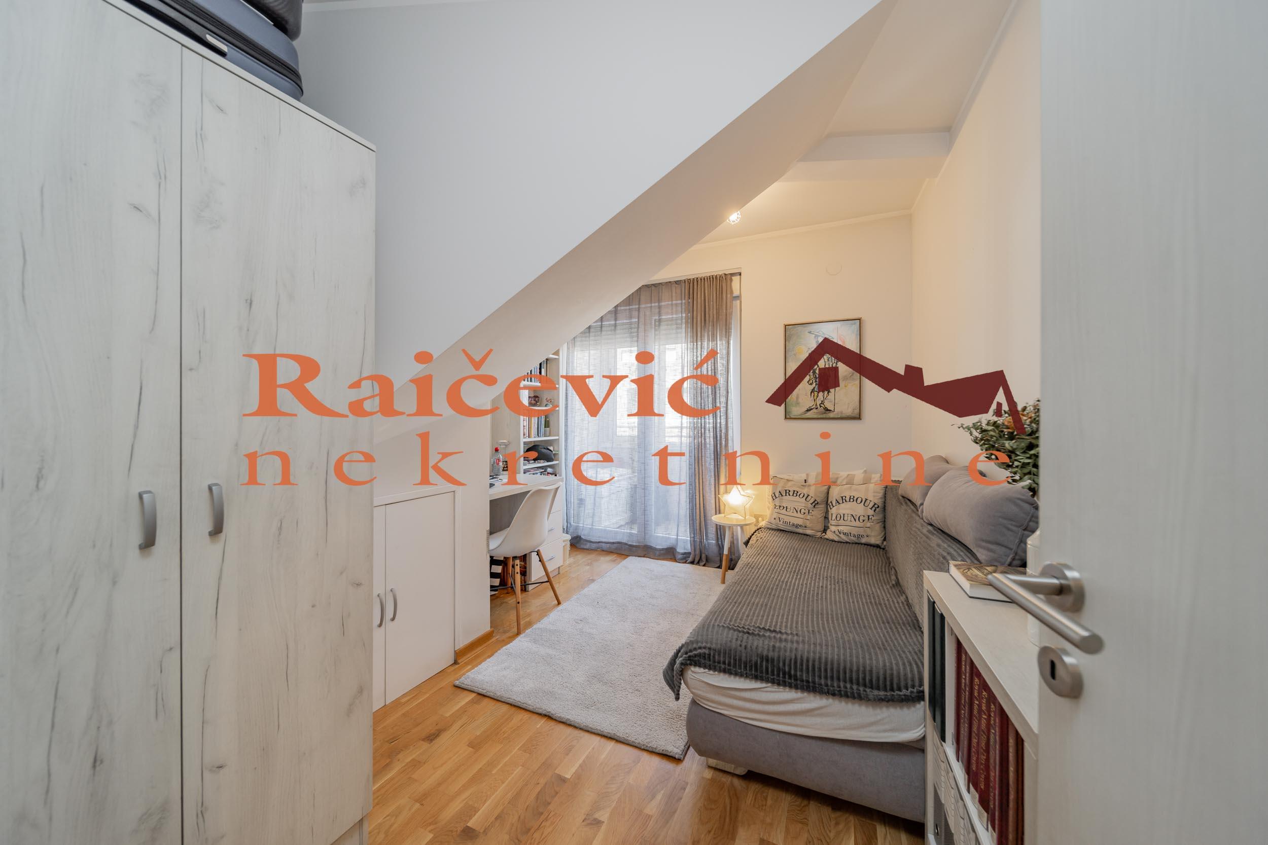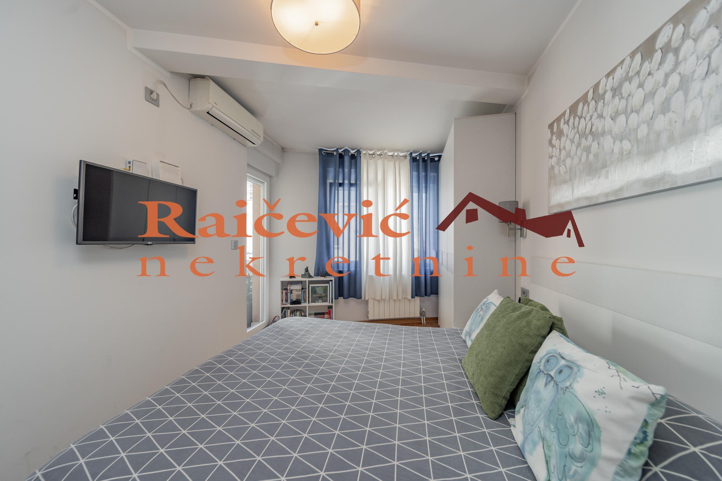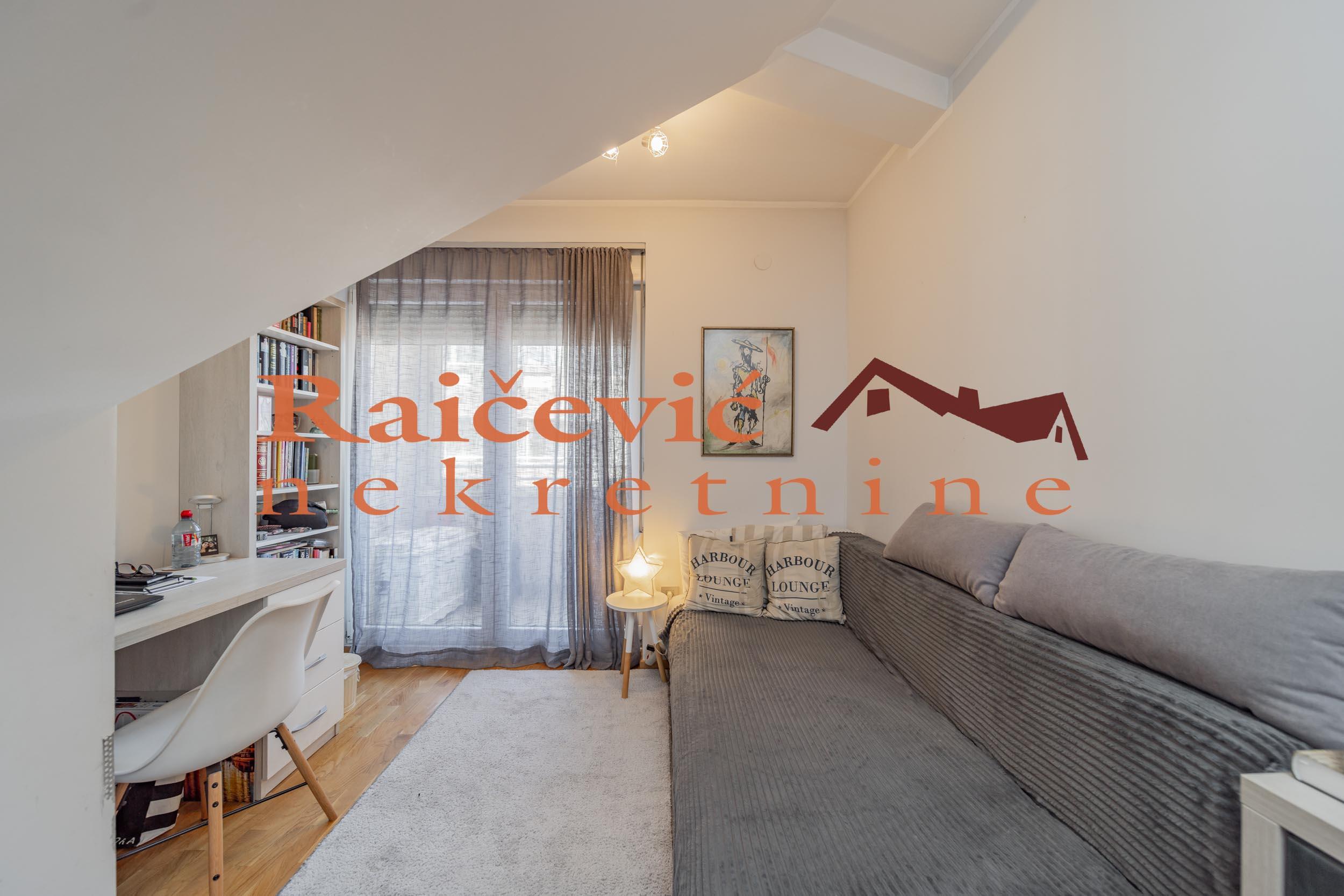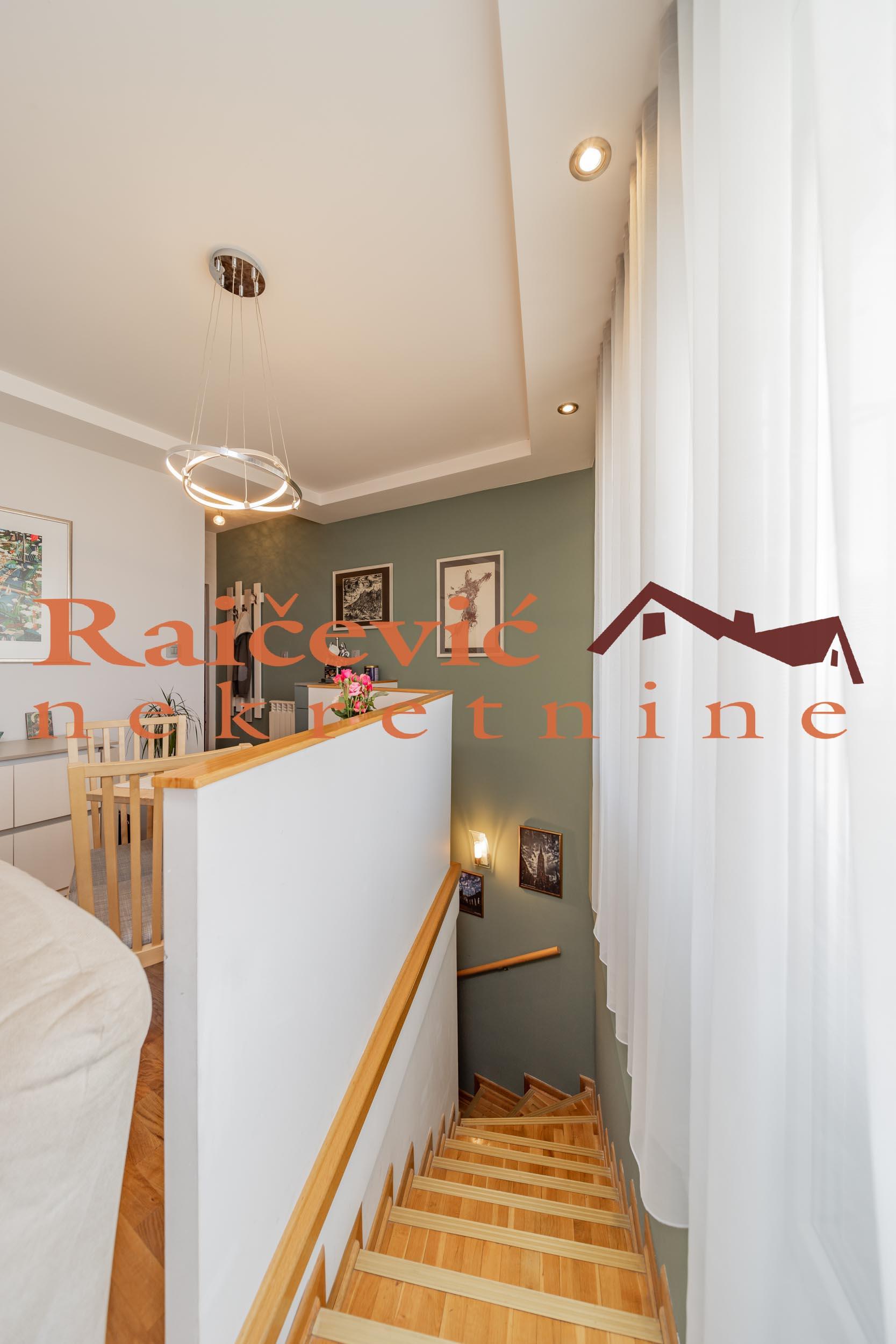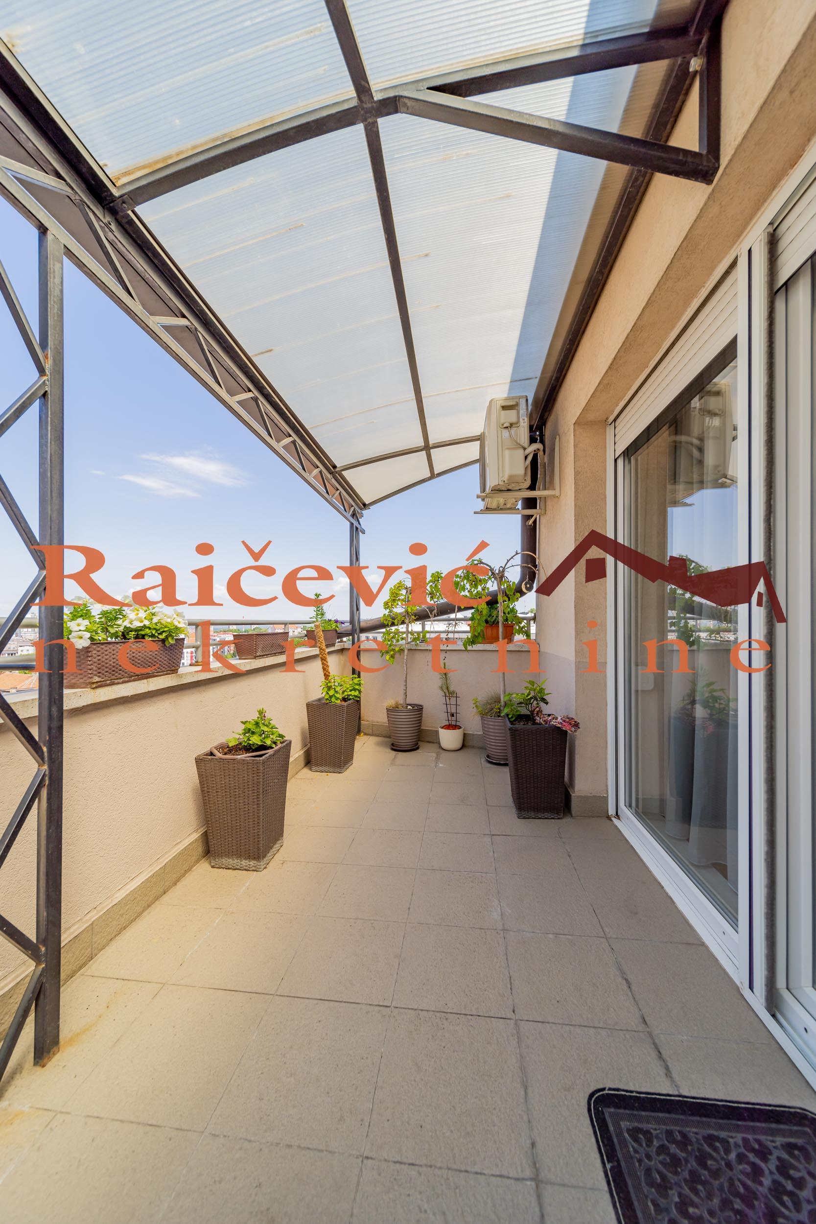 SVI NASI KUPCI DOBIJAJU VREDAN POKLON! Djeram, Sabacka, 3.0, 88 m2 sa terasom i zastakljenom lodjom, IV i V od V spratova, dupleks, cg sa kalorimetrima, lift, interfon, ktv, klima, useljiv po dogovoru, renoviran, namesten, uknjizen na 70 m2, mogucnost kupovine parking mesta u garazi, novogradnja. Fenomenalan porodican stan, novije gradnje, nadomak Djeram pijace. Stan je povrsine 70 m2 stambenog prostora i 18 m2 terase, od cega je 15 m2 pokrivena terasa, a 3 m2 je zastakljena lodja. Veoma je svetao, dvostrano orijentisan. Sastoji se od dva nivoa: I nivo: ulazni hodnik, kupatilo, dve spavace sobe (obe imaju izlaz na lodju), prostorija sa plakarima i zastakljena lodja. II nivo: dnevna soba sa trpezarijom, kuhinja, kupatilo i velika pokrivena terasa. Stan se prodaje kompletno namesten (sa ugradnom kuhinjom, belom tehnikom i namestajem radjenim po meri). Postoji mogucnost kupovine parking mesta u garazi po ceni od 25 000 evra. Ono sto ovaj stan cini izuzetnim je njegova lokacija. Izuzetno povezan sa svim delovima grada - trolejbusi 28 i 40, autobusi 77 i 79, kao i tramvajske linije 5, 6, 7 i 14. Cena 265 000 evra. Kupite ovu nekretninu preko agencije Raicevic nekretnine i POKLANJAMO VAM idejno resenje dizajna enterijera! Pozovite nas za vise informacija. Agencijska provizija koju placa KUPAC iznosi 2 % od dogovorene kupoprodajne cene. Raicevic nekretnine 060/3056065