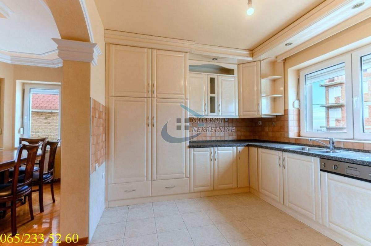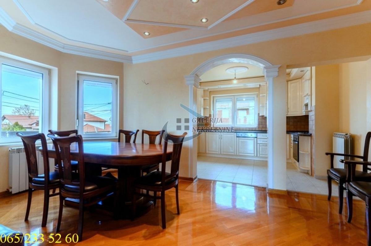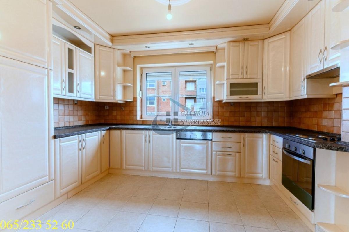 4.0, 115m2(tri terase), 1/2, EG na gas, bazen, parking, interfon, internet, ktv, video nadzor Deo opštine Voždovac koji se nalazi između ulica Vojvode Stepe i Bulevara oslobođenja je novije naselje građeno u poslednjih dvadeset godina u poleđini Farmaceutskog fakulteta. Kraj karakterističan po prijatnoj klimi i ruži vetrova. U prilici smo da Vam ponudimo četvorosoban stan, u novijoj zgradi na prvom spratu dvospratnice. Gradnja zgrade je rađena materijalima visoke klase, sendvič zid debljine 60cm, pikovana fasada, granitno stepenište sa prohromskim rukohvatima, kovano gvožđe na terasama, oko zgrade je rađen štampani beton. Dobro održavana i uredna nekretnina. Stan je cela etaža zgrade, ukupno ima pet stambenih jedinica. Koncepcija stana je da se sa jedne strane nalazi spavaći blok sa tri spavaće sobe i jednim kupatilom a sa druge celina dnevnog boravka trpezarije i kuhinje (kompletno opremljena). Iz dnevnog boravka se izlazi na terasu sa pogledom na dvorišnu stranu u kojem se nalazi bazen. Na dve spavaće sobe su terase. U dvorištu zgrade je bazen 5,5x12,5 metara dubine 1,6 metara, deo za sedenje sa nadstrešnicom i prostoriom za tuš i saunu. Uz stan ide jedno parking mesto. Nekretnina za svaku preporuku i udoban život. Od prostorija: Dnevno-trpezarijski deo, kuhinja, dva hodnika, tri spavaće sobe, dva kupatila, tri terase. Stan je uknjižen na 115m2, odmah useljiv Agent prodaje: Nebojša Koljajić 065/ 547 97 88