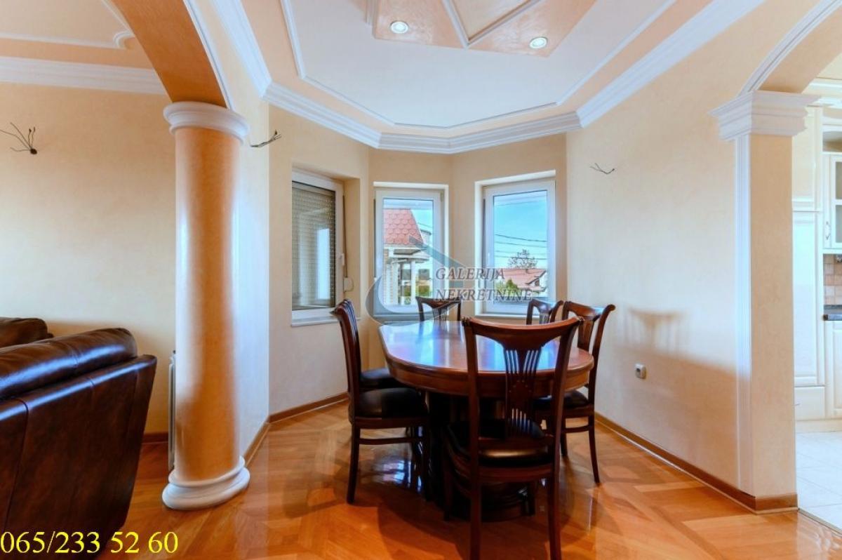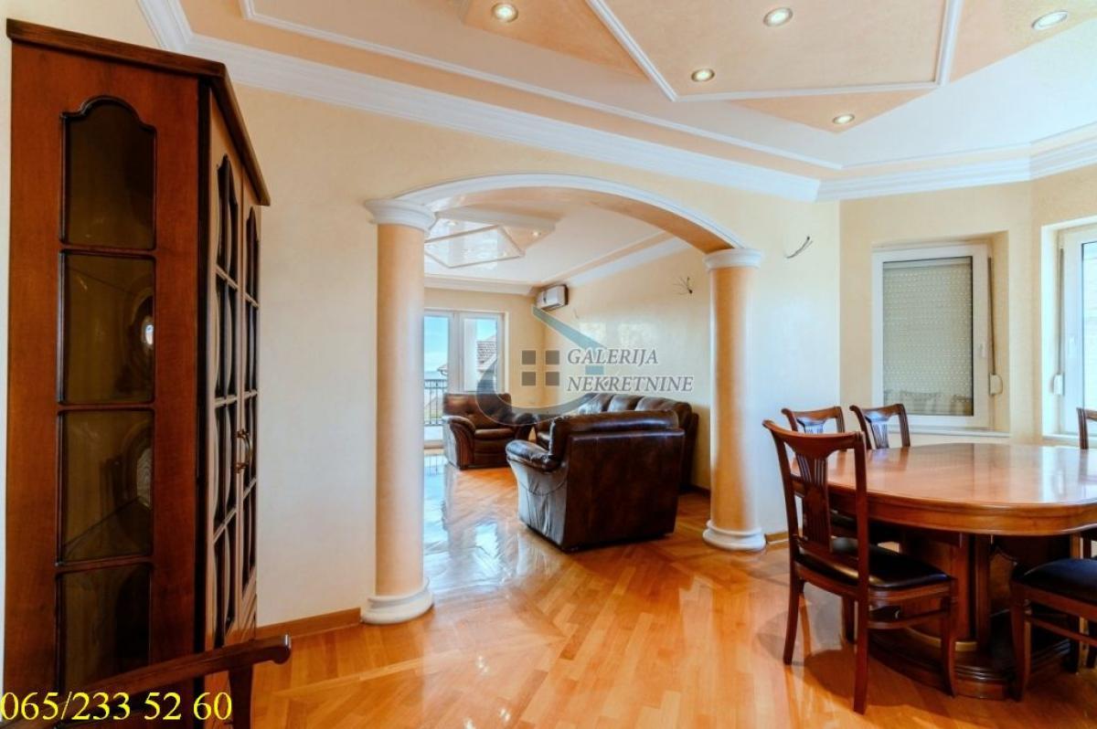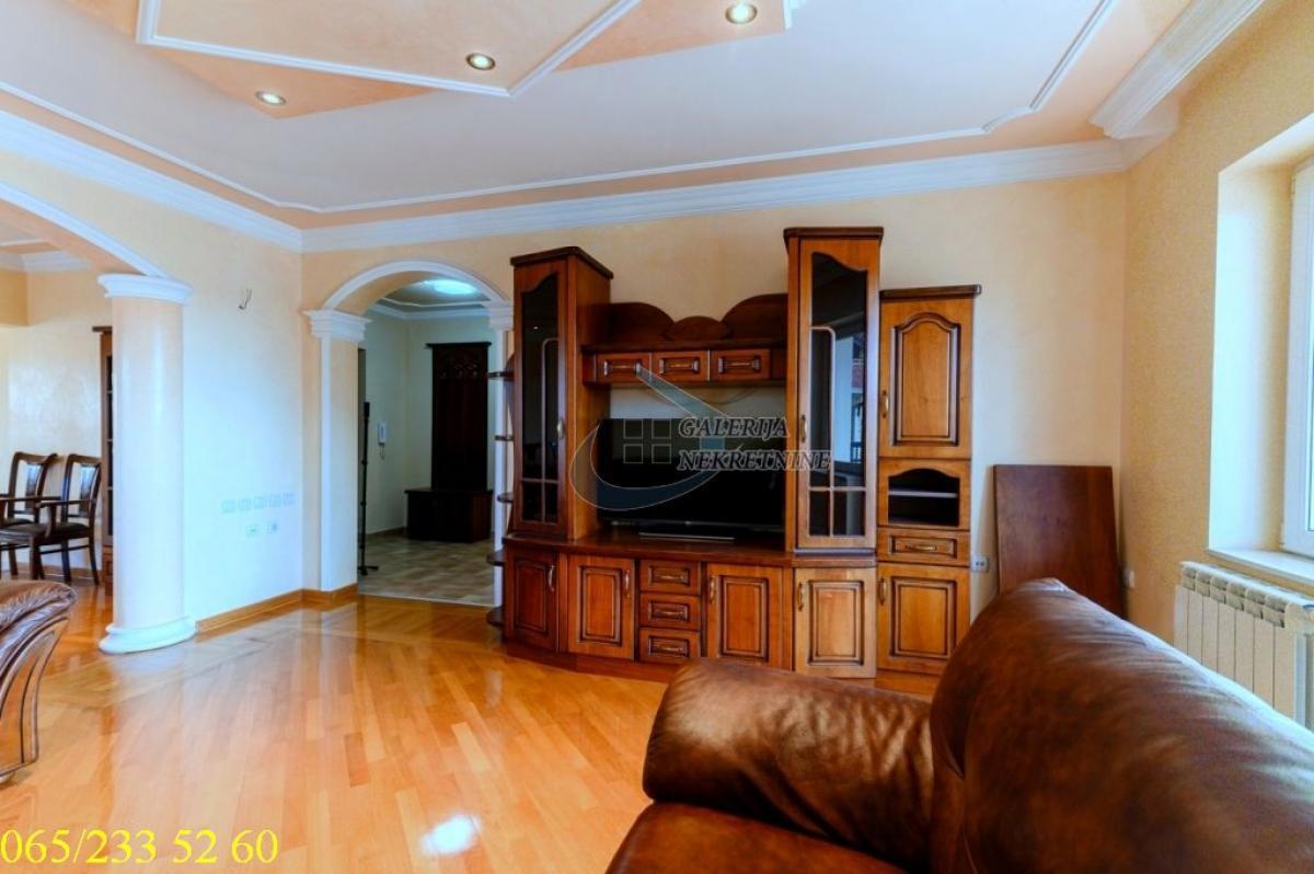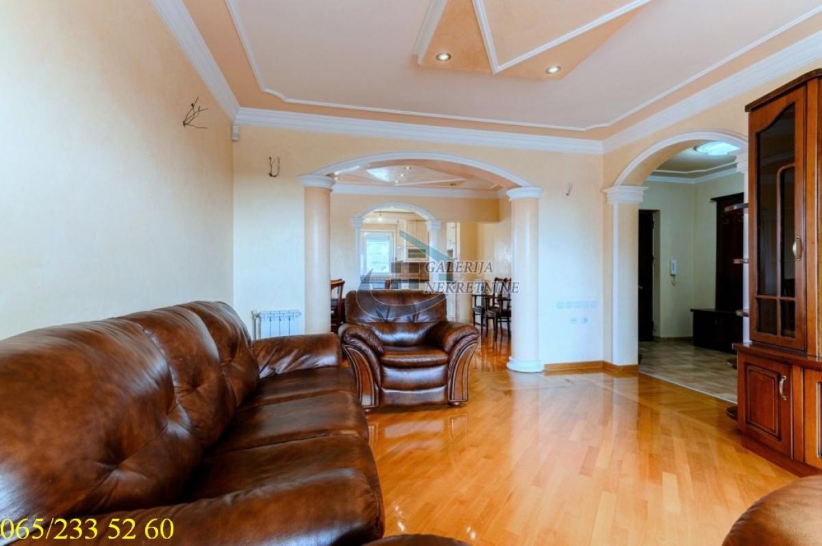 4.0, 115m2(tri terase), 1/2, EG na gas, bazen, parking, interfon, internet, ktv, video nadzor Deo opštine Voždovac koji se nalazi između ulica Vojvode Stepe i Bulevara oslobođenja je novije naselje građeno u poslednjih dvadeset godina u poleđini Farmaceutskog fakulteta. Kraj karakterističan po prijatnoj klimi i ruži vetrova. U prilici smo da Vam ponudimo četvorosoban stan, u novijoj zgradi na prvom spratu dvospratnice. Gradnja zgrade je rađena materijalima visoke klase, sendvič zid debljine 60cm, pikovana fasada, granitno stepenište sa prohromskim rukohvatima, kovano gvožđe na terasama, oko zgrade je rađen štampani beton. Dobro održavana i uredna nekretnina. Stan je cela etaža zgrade, ukupno ima pet stambenih jedinica. Koncepcija stana je da se sa jedne strane nalazi spavaći blok sa tri spavaće sobe i jednim kupatilom a sa druge celina dnevnog boravka trpezarije i kuhinje (kompletno opremljena). Iz dnevnog boravka se izlazi na terasu sa pogledom na dvorišnu stranu u kojem se nalazi bazen. Na dve spavaće sobe su terase. U dvorištu zgrade je bazen 5,5x12,5 metara dubine 1,6 metara, deo za sedenje sa nadstrešnicom i prostoriom za tuš i saunu. Uz stan ide jedno parking mesto. Nekretnina za svaku preporuku i udoban život. Od prostorija: Dnevno-trpezarijski deo, kuhinja, dva hodnika, tri spavaće sobe, dva kupatila, tri terase. Stan je uknjižen na 115m2, odmah useljiv Agent prodaje: Nebojša Koljajić 065/ 547 97 88