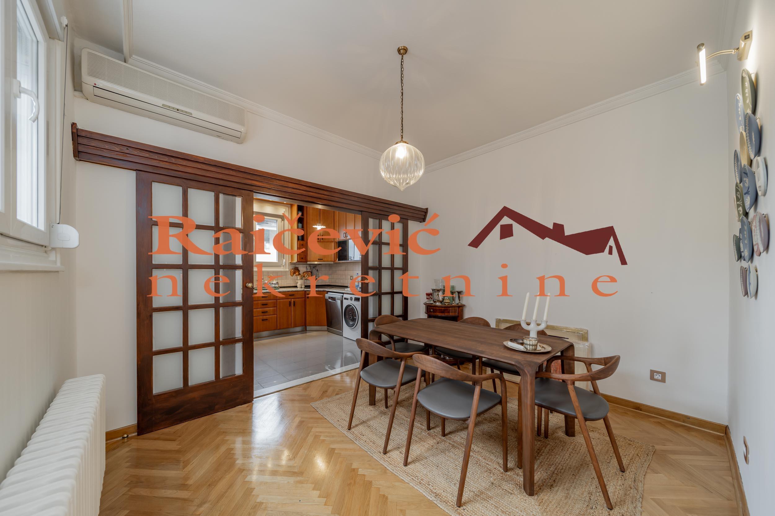 SVI NASI KUPCI DOBIJAJU VREDAN POKLON! RETKO U PONUDI! Cvetni trg, Krunska, 3.0, 107 m2, terasa i lodja, IV od V spratova, cg, telefon, lift, interfon, video nadzor, ktv, internet, klima, useljiv po dogovoru, renoviran, uknjizen, podrum, salonac, garaza i parking mesto u dvoristu zgrade, prelepa predratna zgrada sa renoviranom fasadom. RETKO U PONUDI! Salonac sa garazom i parking mestom koji su uracunati u cenu stana. U jednoj od najlepsih ulica u Beogradu, u prelepoj predratnoj zgradi sa rekonstruisanom fasadom, a u blizini Pionirskog parka i ambasada, nalazi se raskosan salonac na 4. spratu. Prostorije: antre, veliki dnevni boravak, kuhinja i trpezarija, 2 spavace sobe, 2 kupatla, terasa i lodja. Stanu takodje pripada i podrum. Uknjizen je opisno, bez kvadrature, sa pripadajucim terasama ima 120 m2 (po infostanu 107 m2). Cena 570 000 evra. Kupite ovu nekretninu preko agencije Raicevic nekretnine i POKLANJAMO VAM idejno resenje dizajna enterijera! Pozovite nas za vise informacija. Agencijska provizija koju placa KUPAC iznosi 2 % od dogovorene kupoprodajne cene. Raicevic nekretnine 065/452-77-77