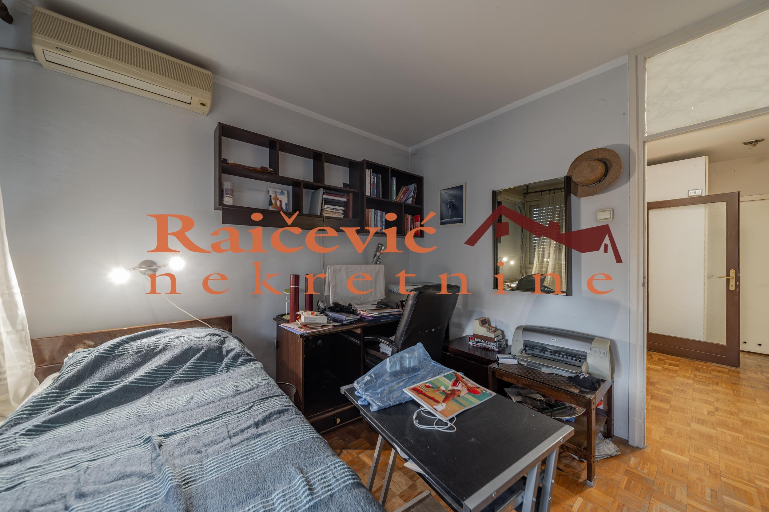 SVI NASI KUPCI DOBIJAJU VREDAN POKLON! Zemun, Gornji grad, Karlovacka, 3.5, 85 m2, terasa, II od VIII spratova, cg, telefon, 2 lifta, interfon, video nadzor, topla voda, ktv, internet, klima, odmah useljiv, izvorno stanje, uknjizen na 85 m2, podrum, stara gradnja. Odlican, veoma prostran trosoban stan na idealnom drugom spratu kvalitetne zgrade iz osamdesetih godina. Stan je svetao, dvostrano orijentisan (sever - zapad) sa pogledom na park. Prostorije: ulazni hodnik, kuhinja, trpezarija, prostran dnevni boravak, dve spavace sobe, ostava, kupatilo, toalet i terasa. Ima pripadajuci podrum od 5 m2. Stan se moze lako adaptirati u cetvorosoban. Zgrada se nalazi u mirnom delu Zemuna, okruzena je zelenilom, decijim igralistem i slobodnim parkingom. U neposrednoj blizini se nalaze: osnovna skola, vrtic, Dom zdravlja, prodavnice, apoteke, pekare, linije gradskog prevoza. Cena 215 000 evra. Kupite ovu nekretninu preko agencije Raicevic nekretnine i POKLANJAMO VAM idejno resenje dizajna enterijera! Pozovite nas za vise informacija. Agencijska provizija koju placa KUPAC iznosi 2 % od dogovorene kupoprodajne cene. Raicevic nekretnine 063/393491