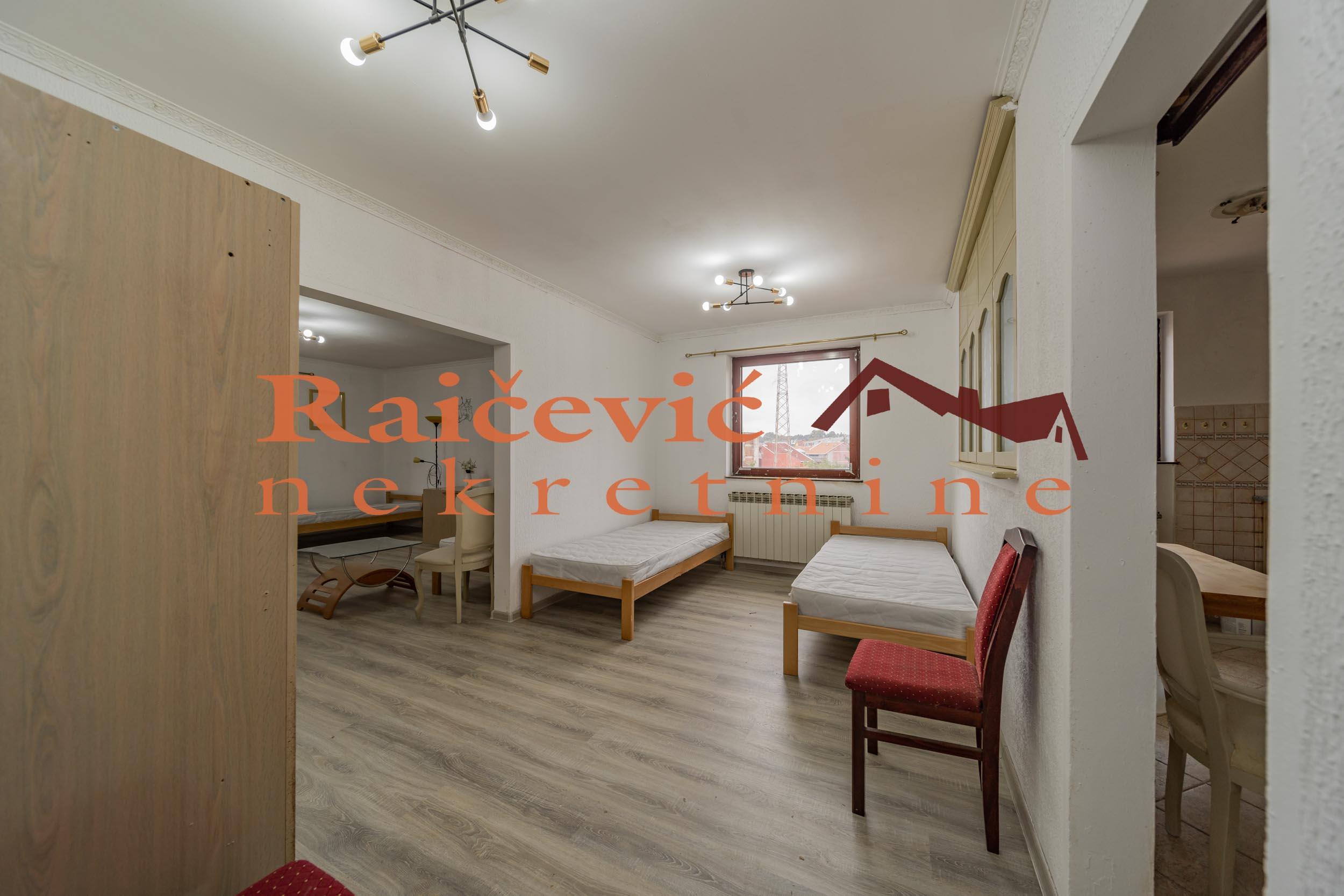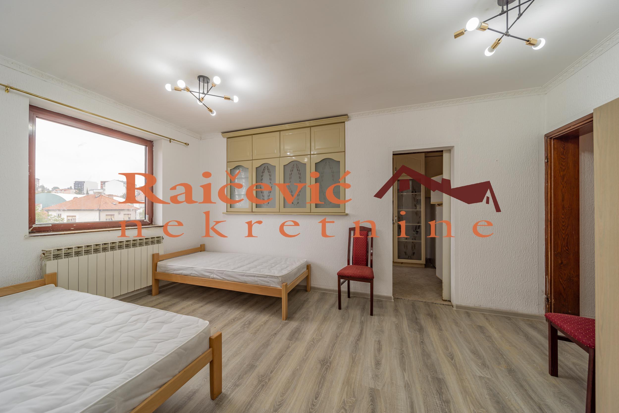 Uciteljsko naselje, Uciteljska, horizontala kuce, I i II sprat, 250 m2, terase, I + PTK, eg + grejanje na cvrsto gorivo (ugalj, drva), mogucnost grejanja na naftu, tel, bez lifta, interfon, topla voda, useljiva po dogovoru, zidana 2000. godine. Izdajemo polovinu kuce, I sprat i potkrovlje (2 stana), po ceni od 2 700 evra. Postoji mogucnost zakupa celog objekta, kuce sa 4 stana, svaki stan jedan sprat, konceptualno odlicne za poslovne delatnosti (klinika, kancelarija), ali i za zivot, po ceni od 7 000 evra. Cena 2 700 evra + depozit. Agencijska provizija koju placa ZAKUPAC iznosi: 50 % od prve mesecne zakupnine za zakup u trajanju od 1 do 12 meseci. 75 % od prve mesecne zakupnine za zakup u trajanju od 13 do 59 meseci. 100 % od prve mesecne zakupnine za zakup u trajanju od 60 meseci (5 godina) i vise. prostorije Raicevic nekretnine 065/452-77-77