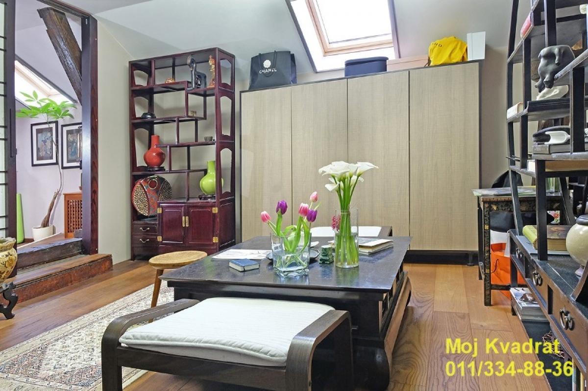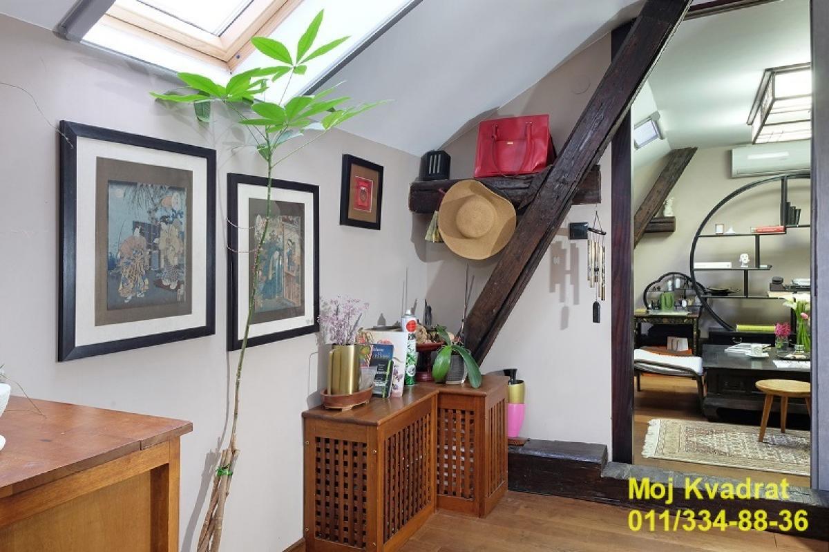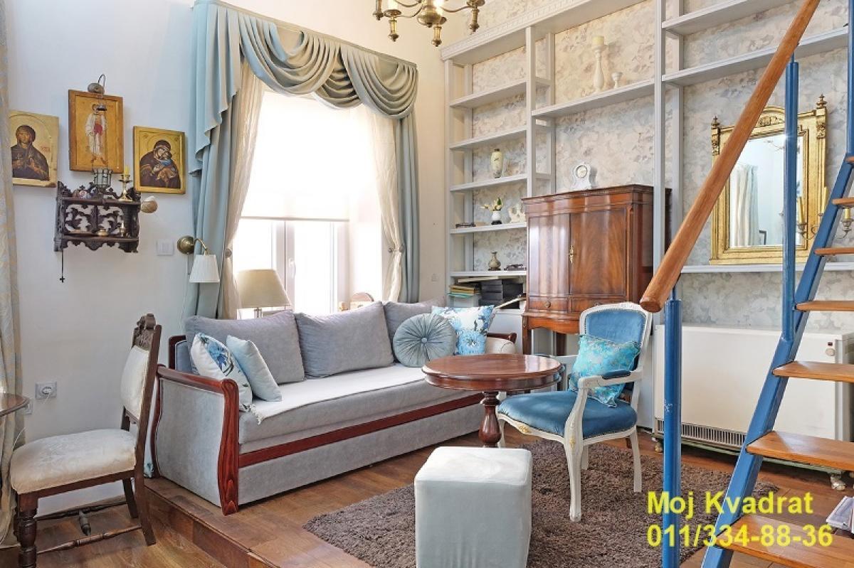 Zemun, Donji grad - Gospodska 4.0, 90m2, I+PTK, TA, dve klime, parking U ponudi dupleks u pešačkoj zoni Zemuna. Stan je renoviran 2020. godine u francuskom i Boho stilu. Takođe, urađen je i nov krov. Stan se sastoji iz dva nivoa, ali može da funkcioniše i kao dve odvojene stambene jedinice. Donji nivo: dnevna soba sa kuhinjom i trpezarijom, spavaća soba na galeriji i kupatilo; Gornji nivo: soba, kuhinja i kupatilo. Visina plafona u stanu se kreće od 2.35m - 4m. Stan poseduje dve klime i jasenov parket. Stanu pripada i jedno parking mesto u dvorištu. Uknjižen na 63m2 korisne površine. Agencijska provizija 2% Agent: Svjetlana Janjoš 069/500-19-70 (licenca br. 4587)