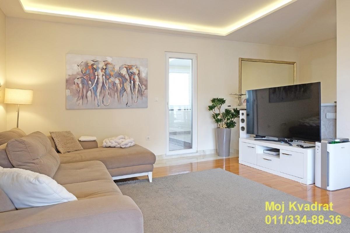 Voždovac, Medaković III - Olge Spiridonović (Mokroluška) 5.0, 144m2 (lođa 25m2), 3/3, norveški radijatori, podno grejanje, dve klime, telefon, interfon, parking mesto U ponudi izuzetan luksuzan petosoban stan sa velikim potencijalom (od 100m2) da može biti dupleks. Stan, koji je investitor gradio za potrebe svoje porodice, nalazi se u mirnom i zelenilom okruženom kraju, odmah posle Plavog mosta (iz pravca grada). Sastoji se od ulaznog hodnika, velike dnevne sobe, iz koje se ulazi u malu radnu sobu. Poseduje prelepu lođu (25m2), kojoj može, po potrebi (leti) da se otvori jedna strana i predstavlja pravu oazu za uživanje. Pored kuhinje, koja je izrađena od najkvalitetnijih materijala i opremljena svim aparatima, se ulazi, s jedne strane, u malu sobu koja služi kao ostava i vešeraj, gde se nalazi i mašina za veš. Sa druge strane, pored prelepog šanka, nalazi se komforna trpezarija. Drugi deo stana čine hodnik, toalet, kupatilo i tri spavaće sobe. U sredini hodnika mogu da se povuku sa tavana stepenice, koje vode na tavan koji služi kao ostava, sa potencijalom za nove kvadrate i sa visinom od 1.7m. U stanu je podno grejanje, dve klime i norveški radijatori i ima male troškove infostana. U stanu ostaje kompletna kuhinja. Pripada mu i jedno parking mesto koje ulazi u cenu stana. Odmah useljiv! Za svaku preporuku! Agencijska provizija 2% Agent: Gordana Milošević 069/129-79-72 (licenca br.1763)