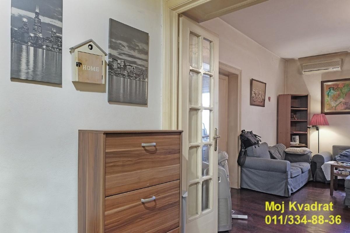 Stari grad, Dorćol - Strahinjića bana 5.5, 130m2 (lođa 4m2), 4/5, CG, lift, telefon, interfon, podrum U prilici smo da vam ponudimo izuzetan salonski stan u predratnoj zgradi sa lepim ulazom od mermera smeštenoj u najlepšem delu Beograda u blizini Skadarlije. Ovaj salonac se sastoji od dva salonca (35m2 + 95m2) i pruža mogućnost razdvajanja i dobijanja dve stambene jedinice. Sastoji se od dva hodnika, kuhinje sa trpezarijskim prostorom, velikog dnevnog boravka, pet soba, lođe i dva kupatila. Izuzetno svetao, u izvornom stanju sa izvornom stolarijom, predstavlja autentičnost predratnih salonaca. Ono što je komfor ovog stana je centralno grejanje, kao i brodski pod. Stan je za renoviranje i namenjen je kupcima koji žele da srede prostor prema svojim željama i potrebama. Uknjižen na 130m2. Agencijska provizija 2% Agent: Gordana Milošević 069/129-79-72 (licenca br.1763)
