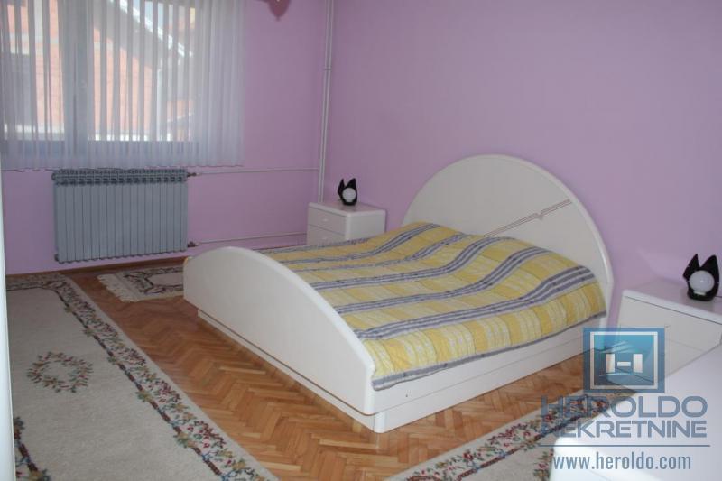U mirnoj ulici nadomak centra grada izdajemo komfornu kuću u dva nivoa .Objekat je kompletno namešten i opremljen svim potrebnim uređajima. Kuća je pogodna za porodice, parove ili mirne stanare koji žele udoban i prijatan dom. Grejanje na gas Pomoćna zgrada sa garažom.