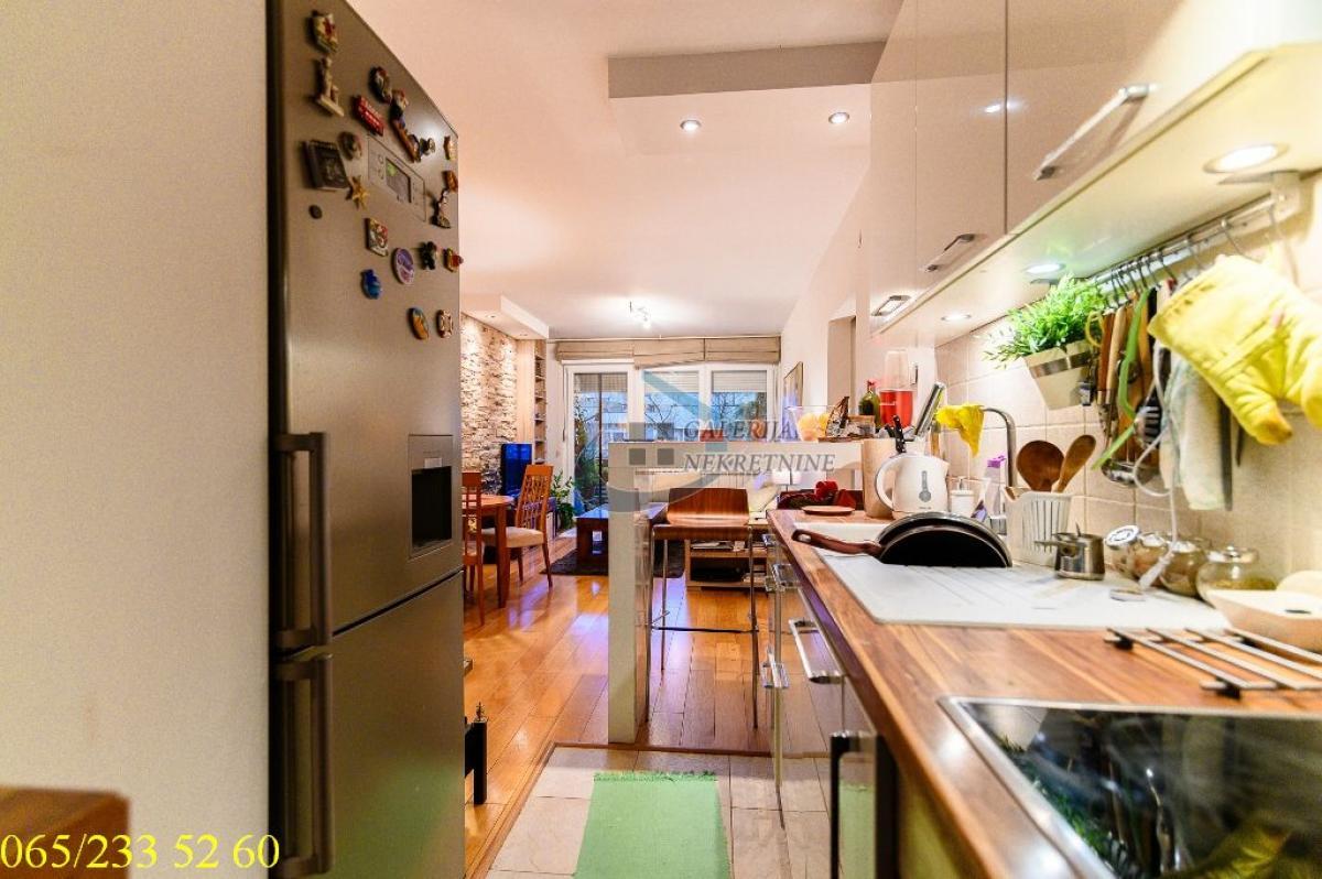 3.0, 62m2(terasa), 5/5, lift, CG, interfon, internet, klima, ktv Stan se nalazi u jednom od najlepših delova grada, na granici Zemuna i Novog Beograda, nadomak Zemunskog keja i budućeg luksuznog kompleksa na mestu nekadašnjeg hotela Jugoslavija. Kraj je kompletno infrastrukturno pokriven sa brzim vezama ka svim delovima grada. Nalazi u čuvenim "kockicama", u planski izgrađenom bloku, sa idejom da se za stanovnike stvori okruženje idealno za prijatan život u miru i tišini, a sa svim potrebnim uslugama pri ruci. U prilici smo da vam ponudimo trosobni stan na poslednjem spratu petospratnice sa liftom iz 70ih godina prošlog veka. Zgrada je vrlo kvalitetno zidana i odlično održavana, pa je u odličnom stanju spolja i unutra. Stan je dvostrano orijentisan, većim delom prema jugu i izuzetno svetao. Prostorije su vrlo funkcionalno raspoređene. Dnevni boravak, u modernom open space stilu, deli prstor sa trpezarijskim delom i kuhinjom, koja je blago izdvojena pultom. Lepa terasa, sa pogledom na zelenilo je kao stvorena za uživanje. Stan je pre desetak godina vrlo kvalitetno i luksuzno dizajniran i renoviran do najsitnijih detalja, pa nisu potrebna značajna ulaganja. U stanu ostaje cela kuhinja sa svim elemetnima i opremom. Grejanje je centralno. Uz stan ide mogućnost korišćenjaće ostave na spratu. Od prostorija: Ulazni hodnik, dnevno-trpezarijsko-kuhinjski deo, terasa, predsoblje, kupatilo i dve spavaće sobe. Uknjižen na 57m2 korisne i 62m2 građevinske površin. Agent prodaje: Isak Marčetić 064/167 53 81