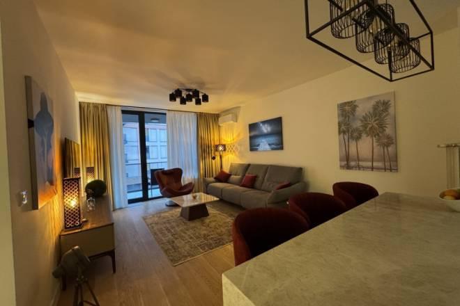 Izdajemo luksuzan trosoban stan u zgradi BW Sensa, površine 86 m2, na trećem spratu ekskluzivnog kompleksa Beograd na vodi. Stan je nikad useljavan, potpuno opremljen novim, modernim nameštajem i uređen u skladu sa visokim standardima savremenog stanovanja. Sastoji se od prostranog open space dnevnog boravka sa izlazom na terasu, radne sobe, master spavaće sobe sa sopstvenim kupatilom, odvojenog drugog kupatila i ostave. Enterijer je svetao, funkcionalan i elegantno projektovan, sa obiljem prirodnog svetla tokom celog dana. Lokacija nudi uređena šetališta, blizinu reke i kompletnu infrastrukturu. U okolini se nalaze prodavnice, restorani, zelene površine, a centar grada je lako i brzo dostupan. U cenu ulazi i garažno mesto. Kućni ljubimci nisu dozvoljeni. Stan je odmah useljiv. Posrednička naknada se obračunava prema Opštim uslovima poslovanja agencije DIVIS NEKRETNINE DOO.