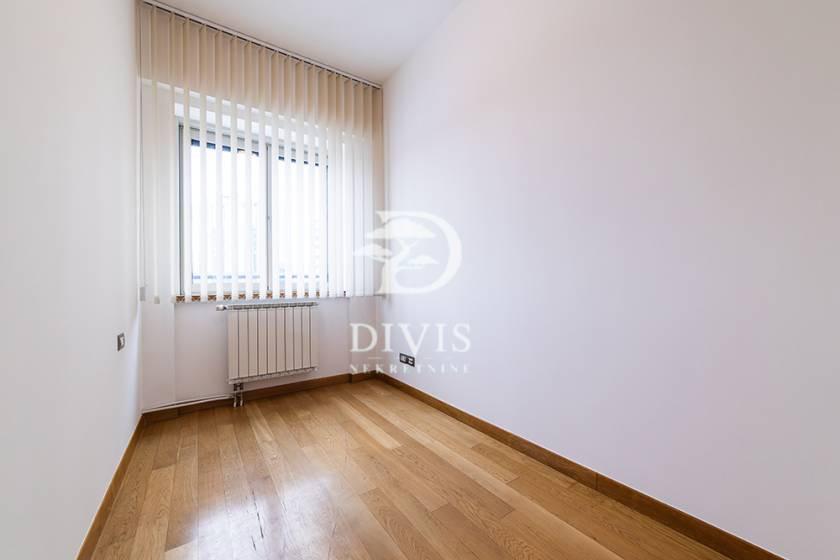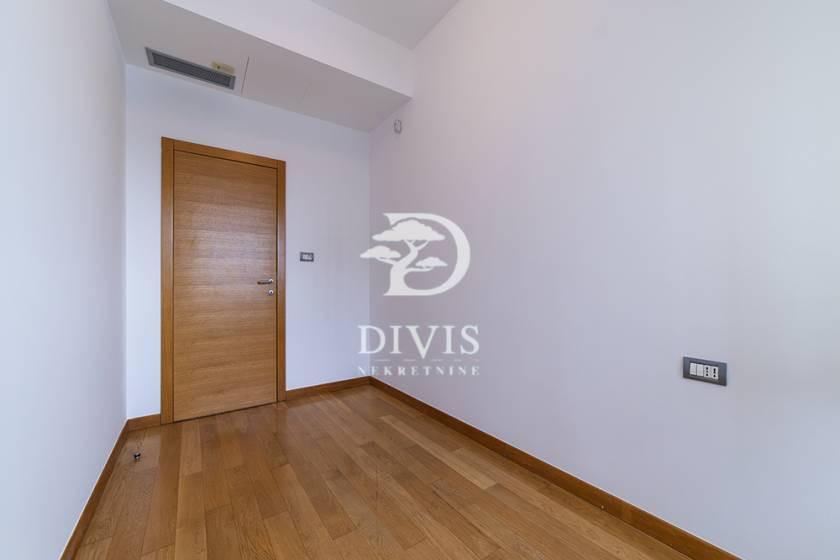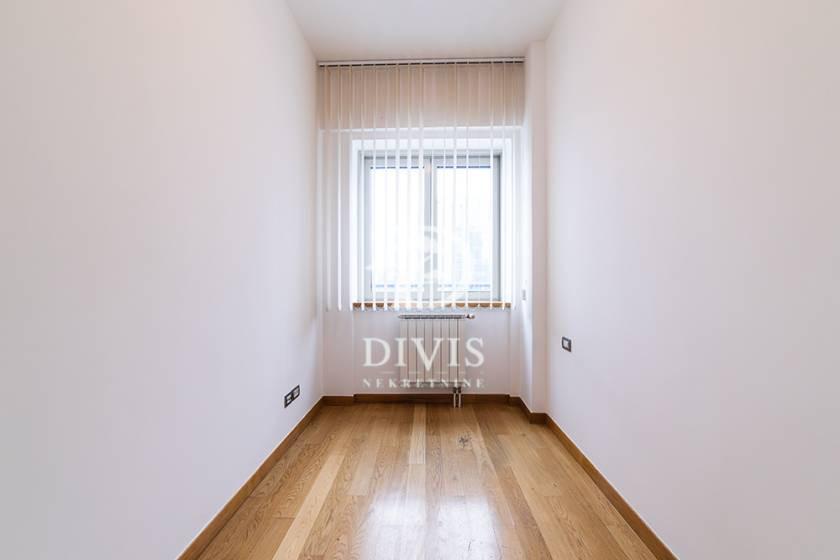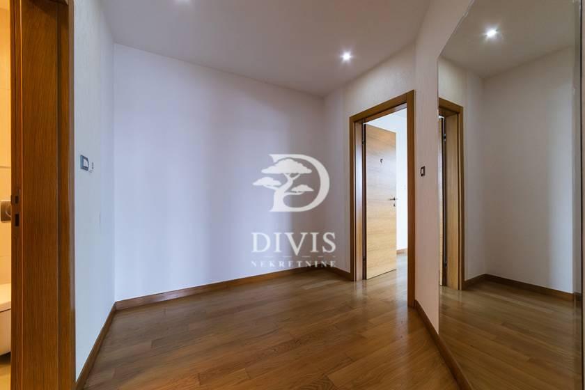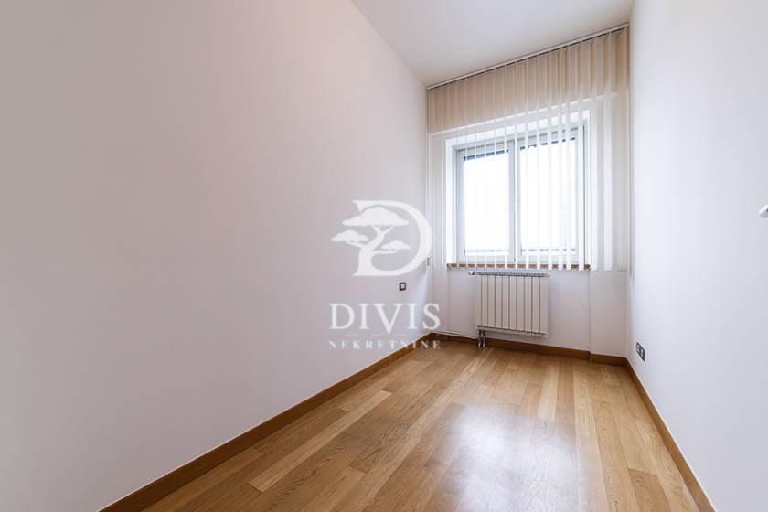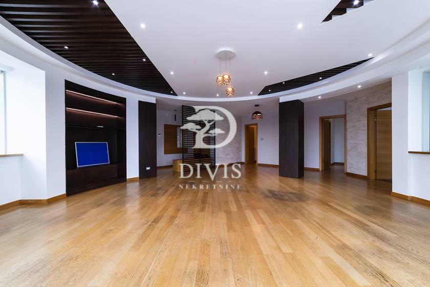U savremenoj stambenoj zgradi na Novom Beogradu, u neposrednoj blizini Sava Centar, nalazi se petosoban stan površine 195 m², koji se po svom rasporedu i arhitektonskom izrazu jasno izdvaja od uobičajene ponude u ovom delu grada. Stan je projektovan sa naglaskom na prostor, svetlost i nesvakidašnju geometriju enterijera. Centralni deo stana čini veliki dnevni boravak kružnog oblika, koji prostoru daje karakter i dinamiku, ali i izuzetnu širinu i otvorenost. Upravo ova zakrivljena forma dnevnog prostora, kao i pojedini delovi stana koji nisu pravilnih pravougaonih proporcija, čine ovu nekretninu drugačijom od tipskih rešenja i daju joj arhitektonski identitet. Dnevni boravak je povezan sa trpezarijom i kuhinjom, formirajući jedinstvenu, prostranu dnevnu zonu, idealnu kako za svakodnevni porodični život, tako i za prijeme i druženja. Velike staklene površine obezbeđuju obilje prirodnog svetla tokom dana i dodatno naglašavaju osećaj prostornosti. Privatni deo stana obuhvata master spavaću sobu sa sopstvenim kupatilom, kao i još tri komforne spavaće sobe, koje se mogu koristiti u skladu sa potrebama kupca, kao dečije sobe, radni prostori ili sobe za goste. Stan raspolaže i dodatnim kupatilima, gostinskim toaletom i ostavom, što doprinosi svakodnevnoj funkcionalnosti i komforu. Nepravilne linije pojedinih prostorija nisu nedostatak, već svesno arhitektonsko rešenje koje prostoru daje karakter i mogućnost individualnog uređenja. Upravo ovakav raspored omogućava kupcu da stan prilagodi sopstvenom načinu života, bez osećaja uniformnosti koji je čest u savremenoj gradnji. Stan je svetao, dvostrano orijentisan i nalazi se na lokaciji koja nudi odličnu povezanost sa svim delovima grada, uz blizinu poslovnih, kulturnih i rekreativnih sadržaja Novog Beograda. Postoji mogućnost kupovine garažnog mesta u okviru zgrade. Ova nekretnina namenjena je kupcima koji traže prostran stan sa karakterom, jasno drugačiji od standardnih rasporeda, na lokaciji koja omogućava kvalitetan i funkcionalan gradski život. Posrednička naknada se obračunava prema Opštim uslovima poslovanja agencije DIVIS NEKRETNINE DOO.