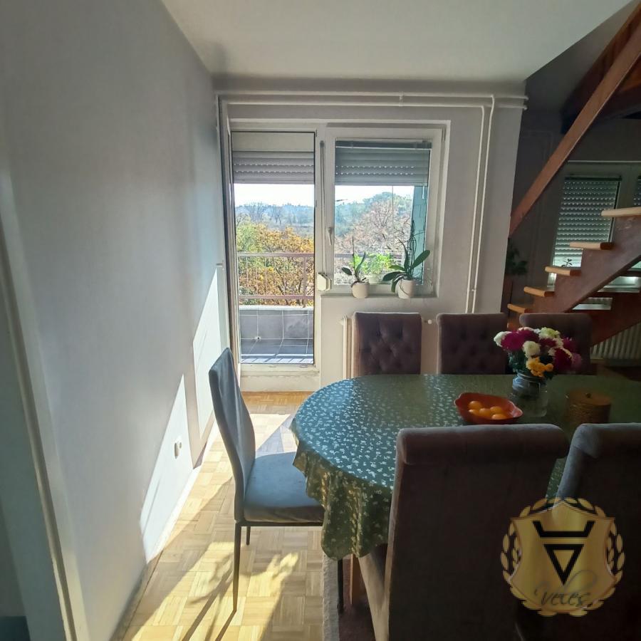 Izdajemo duplex stan koji se nalazi u blizini Farmaceutskog Fakulteta i prostire se na 85 m2. Stan se nalazi na četvrtom i petom spratu zgrade bez lifta. Donji nivo ima prostran dnevni boravak sa trpezarijom i izlazom na terasu. Na pomenutom nivou se nalazi još i velika spavaća soba, kupatilo, hodnik i odvojena kuhinja. Drvene stepenice vode na gornji nivo gde se nalaze dve manje spavaće sobe, dodatno kupatilo, ostava i prostor koji se može iskoristiti kao čajna kuhinja i radni prostor. Stan je funkcionalan, prostran i pogodan za udoban život i rad iz njega. U blizini se nalaze Dom Zdravlja, trgovine, mesare, apoteke, vrtići i šklole. Agencija za nekretnine Veles broj u registru posrednika 1149 Agencijska provizija 50%* Način plaćanja: kirija+depozit+ag.provizija