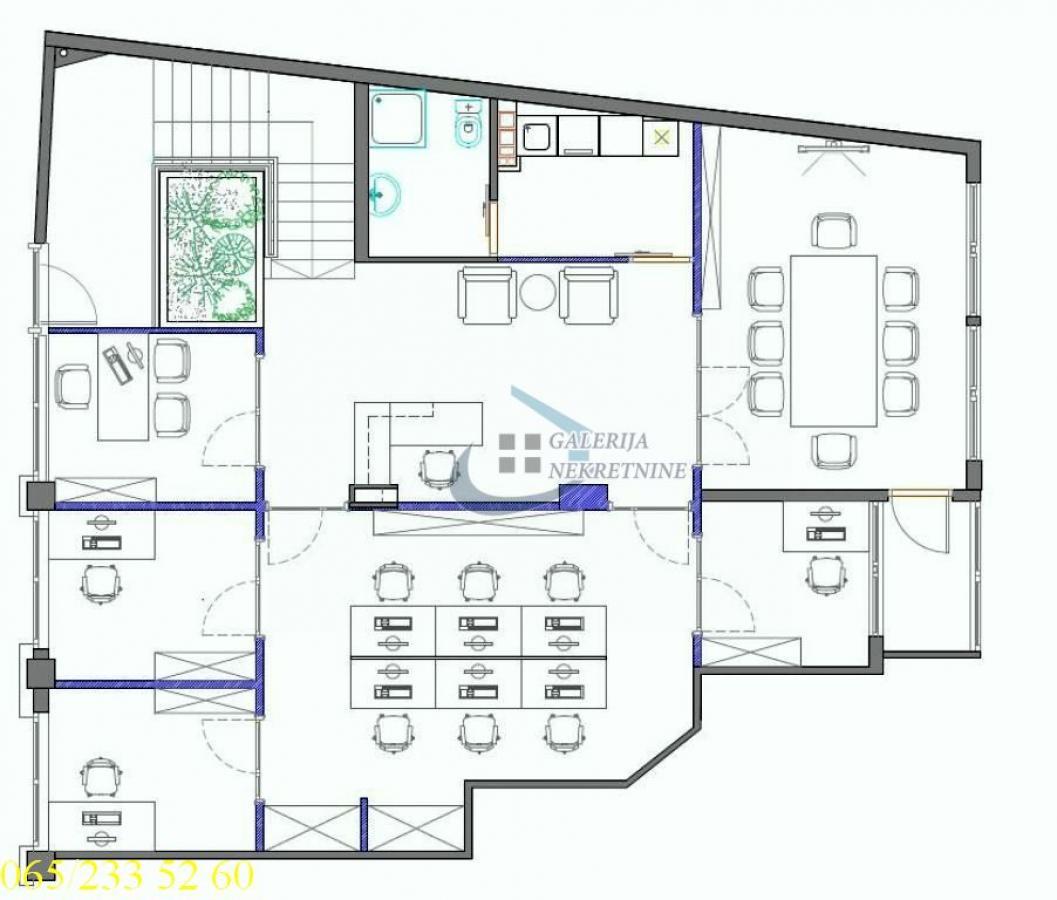 129m2, 1/4, Lux kancelarijski/poslovni prostor, toplotne pumpe, videofon, video nadzor, garažno mesto, odvojen ulaz Vračar je jedna od najlepših beogradskih opština sa kompletno razvijenom infrastrukturom, pa se smatra vrlo poželjnom lokacijom za poslovni prostor. U prilici smo da Vam ponudimo nov, reprezentativan i izuzetno moderan poslovni/kancelarijski prostor, funkcionalnog rasporeda, u ulici Svetozara Gligorića (deo bivše Dubljanske ulice), u srcu Čubure, nadomak Hrama Svetog Save i suda u Katanićevoj ulici. Brzo i lako je saobraćajno povezan sa svim delovima grada i sa auto putem. Smešten je na poslovnom nivou (visina prvog sprata) novije četvorospratne zgrade. Ima potpuno odvojen ulaz. Prostor se sastoji od prijemne prostorije sa portirnicom, četiri odvojene kancelarije, jedne open space kancelarije, sobe za sastanke, kuhinje, kupatila i zastakljene lođe. Ova nepokretnost, kao i cela zgrada i prostor oko zgrade su do najmanjih detalja osmišljeni i urađeni vrlo luksuzno i kvalitetno. Prostor je klimatizovan vrlo ekonomičnom kombinacijom geotermalne energije i fan-coil sistema, sa grejanjem i hlađenjem preko zidova i podova. Uz ovaj kancelarijski prostro se nude garažna mesta u garaži u zgradi sa širokim klasičnim ulazom (nije auto lift) po dodatnoj ceni od 40000 EUR za jedno ili 90000 EUR za dva garažna mesta. Od prostorija: prijemna prostorija sa portirnicom, četiri odvojene kancelarije, open space kancelarija, sobu za sastanke, kuhinja, kupatilo i lođa. Uknižen na 121m2, po navodima vlasnika prostora merena povrišine je 129m2. Agent prodaje: Isak Marčetić 064/ 167 53 81