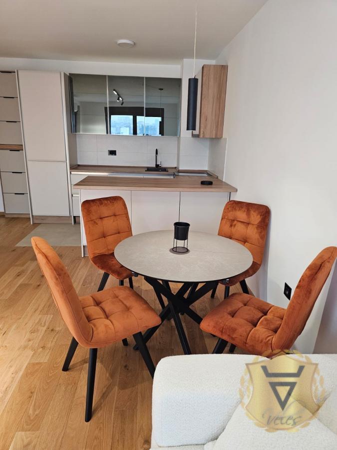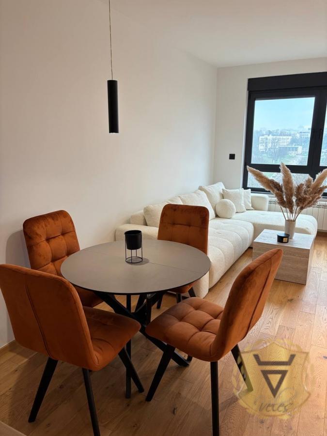 Mir i luksuz u centru grada. Nov, moderno opremljen stan, u novoj zgradi u prelepom kompleksu "Pionir Palace" sa prelepim pogledom. Stan je izuzetno prostran i svetao, poseduje garažno mesto (doplata 100 eur). Garaža je komforna sa rolo vratima, pogodna za veće automobile u koju se ulazi sa ulice, a lift vodi direktno do stana. U stanu je sve novo. Komplet je opremljen. Od prostorija ima predsoblje sa velikim cipelarnikom, modernu kuhinju sa ugradnim frižiderom, mašinom za sudove, šporetom sa ravnom pločom i suvom ostavom. Trpezarija i dnevni boravak su vrlo prostrani sa ekskluzivnom ugaonom garniturom i televizorom od 65" inča. U spavaćoj sobi se nalazi udobni francuski ležaj dimenzija 160x200 i veliki klizni garderober. Velika terasa sa "jaje" ljuljaškom daje dodatnu magiju ovom stanu jer se sa nje pruža očaravajući pogled na park i pola Beograda. Obavezan je depozit u visini jedne mesečne kirije. Peace and Luxury in the City Center Brand-new, modernly furnished apartment in a new building with a stunning view and a parking space (100eur). Garage is spacious with a roller shutter door, suitable for larger vehicles, accessible directly from the street with an elevator leading straight to the apartment. Everything in the apartment is brand new and fully equipped. Layout and features: Entrance hall: Equipped with a large shoe cabinet. Kitchen: Modern design with built-in appliances, including a refrigerator, dishwasher, stovetop and pantry. Living & Dining area: Very spacious, featuring an exclusive corner sofa and a 65-inch TV. Bedroom: Features a comfortable queen-size bed (160x200 cm) and a large sliding wardrobe. Terrace: A large terrace with an "egg" swing chair adds a touch of magic, offering an enchanting view of the park and half of Belgrade. Parking space is not included in the price (100EUR). A security deposit equal to one month's rent is required. Agencija za nekretnine Veles broj u registru posrednika 1149 Agencijska provizija 50%* Način plaćanja: kirija+depozit+ag.provizija