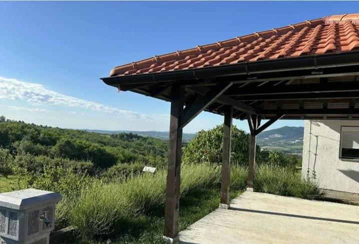 Prodajem uknjizenu kucu 256 kvm, prizemna sa 12 ari placa, delimicno pod vocem, 2 km od Arandjelovca. U okolini se nalaze tri bazena i četri poznata restorana. U blizini je vise prodavnica alata, gradjevinskog materijala i spermarketa. Otvoren je novi Ara Plaza park oko 2 km od kuće. U okviru ARA Plaze posluje više od 25 zakupaca, uključujući brendove iz segmenta mode, sporta, opreme za dom i drogerijskog asortimana: New Yorker, Pepco, Sinsay, CCC, N Fashion, Planeta Sport, Sport Vision, Đak Sport, JYSK, TRI-O, Vitapur, Woby House, Lilly, dm, Super Dr Max, Lidl kao i dva lanca supermarketa, restorani, kafeterije, igraonica za decu i drugi komplementarni sadržaji. U kuci trofazna struja, gradska voda plus bunar, internet, sistem grejanja centralni kotao na cvrsto gorivo sa razvodom na radijatore u suterenu i prizemlju, klima uredjaj i postoji mogućnost uvodjenja gasa. Prizemlje kuce ima dve spavace sobe, kupatilo, wc, dnevnu sobu sa trpezarijom, radnu sobu i kuhinju povrsine 93 kvm. Suteren ima kotlarnicu sa odvojenom prostorijom za ugalj i drva, radionica i spajz 88kvm i sve obezbedjeno metalnim vratima. Potkovlje se sastoji iz dve prostorije i jedna je sredjena sa lamintaom te moze biti finkcionalna kao ostava za razne stvari ili gardarobu van sezone. Upotrebljiva povrsina potkrovlja do 1,5m visine je 75 vkm. Do Beograda 50 min lagane vožnje a posle završetka auto puta Vožd Karadjordje to će biti oko 30 min. Kuca je zidana 1988 godine po projektu Beogradskog projektnog biroa iz Mladenovca i posedujem ateste za sve instalacije. Kuca ima gromobran i upotrebnu dozvolu izdatu 1989. Ugradni namestaj moze ostati po zelji kupca. Kuca se prodaje prazna i u cenu je ukljuceno higijensko krecenje. Nov letnjikovac na platou ispred kuce je završen u maju 2025. Vidi se na fotografijama. Izvedena struja i voda (po izboru iz vodovoda ili bunara). Uradjena je nadstresnica za automobil i renovirana garaža (ili ostava za alat i drva zavisno od namene). Takodje je ove godine uradjena hidroizolacija staze oko kuće sa najboljim hidroizolacionim sistemom Sika N400. Moguć je dogovor oko bastenskog alata i alata koji je u funkciji održavanja kuće. Kontakt 0655770570 Srećna kupovina!