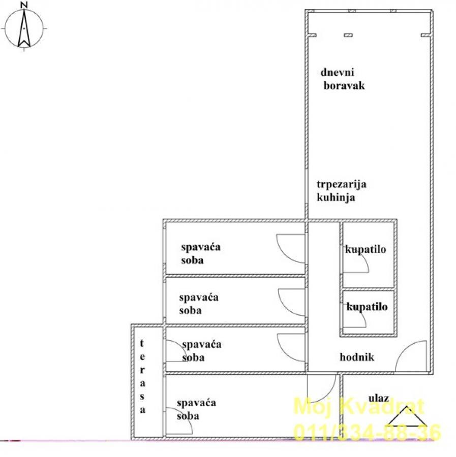 Novi Beograd, Blok 62 - Nehruova 5.0, 125m2 (terasa 15m2), VPR/4, CG, lift, telefon, interfon, podrum, parking U ponudi izuzetno funkcionalan i svetao stan sa divnom terasom, dvostrano orijentisan istok-server. Nalazi se na visokom prizemlju, ali je na visini prvog sprata. Prostorije: hodnik, dnevni boravak sa kuhinjom i trpezarijom, četiri spavaće sobe, dva kupatila i terasa. Jedna terasa je pripojena stambenom prostoru. Stan je kompletno renoviran kvalitetnim materijalima i modernog je dizajna. Pogodno je da se doda i lični pečat enterijeru. Pogodan je za višečlanu porodicu, ali se može koristiti i kao poslovni prostor zbog dobre lokacije. Uknjižen na 104m2 korisne površine, mereno ima 125m2. Agencijska provizija 2% Agent: Jelena Ninković 064/54-33-192 (licenca br. 702)