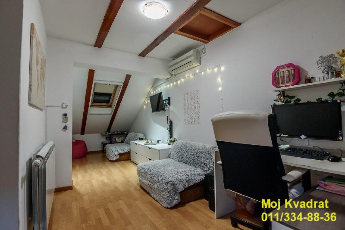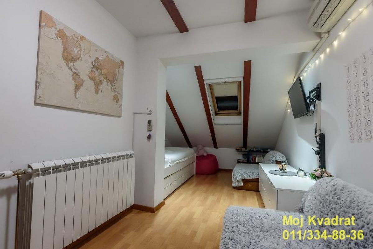 Stari grad, Gundulićev venac - Šantićeva 4.0, 104m2 (terasa 8m2), 4/4, EG, klime, telefon, interfon, video nadzor, parking U samom srcu Beograda, na jednoj od najpoželjnijih lokacija Starog grada, u mirnoj i diskretnoj Šantićevoj ulici, nudimo vam izuzetan, moderan duplex koji predstavlja savršen spoj luksuza, komfora i urbanog načina života. Stan se nalazi na četvrtom spratu kvalitetne stambene zgrade novije gradnje, okružen zelenilom, a istovremeno na svega nekoliko minuta hoda od fakulteta, muzeja, pozorišta i svih sadržaja koje nudi centar grada. Stan je trostrano orijentisan, izuzetno svetao, sunčan i prozračan tokom celog dana. Sastoji se od dva nivoa: Prvi nivo – 74 m²: prostrano centralno predsoblje (10 m²), moderna kuhinja sa trpezarijom (22 m²), komforan dnevni boravak (28 m²) sa izlazom na terasu, kupatilo (6 m²), terasa (8 m²) – idealna za jutarnju kafu i večernji odmor Drugi nivo: predsoblje, tri spavaće sobe sa ugradnim plakarima. Podna površina 56 m² (redukovana na 29 m² zbog kosina) Opremljenost i karakteristike: kompletno opremljen 2012. godine, dizajnerska kuhinja sa svim ugradnim aparatima, hrastov parket u svim prostorijama, vrhunska stolarija sa komarnicima, ambijentalno osvetljenje u celom stanu, termo i zvučna izolacija – prijatna temperatura leti i zimi, LAN priključci i audio/video instalacije u svakoj prostoriji, interfon i personalni video-nadzor, etažno grejanje (sopstveni kotao), radijatori sa termo-glavama, 3 klima uređaja- Stan poseduje ostavu od 19 m², na istom nivou, koja je trenutno opremljena kao funkcionalna studio-jedinica – idealno za goste, radni prostor ili izdavanje. Uknjižen na 104m2. Agencijska provizija 2%. Agent Branko Dragović: 060/16-98-987 (licenca br. 4066)