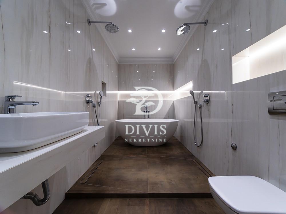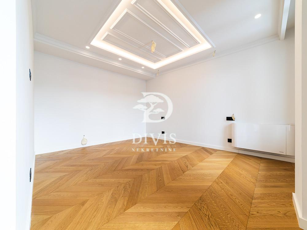 U savremenoj stambenoj zgradi na Vračaru, na svega nekoliko minuta hoda od Hrama Svetog Save, nalazi se izuzetno prostran i pažljivo projektovan petosoban stan površine 228 m² sa dva garažna mesta, namenjen kupcima koji traže ozbiljan gradski dom, a ne kompromisno rešenje. Stan je oblikovan kao velika, mirna stambena celina, sa jasnim osećajem reda, proporcije i privatnosti. Ulazni deo vodi u centralni dnevni prostor koji objedinjuje dnevni boravak, trpezariju i kuhinju, pri čemu je kuhinja projektovana tako da se, po potrebi i zamisli kupčevog arhitekte, može i fizički odvojiti, bez gubitka svetla ili osećaja otvorenosti. Stan je dvostrano orijentisan, što obezbeđuje prirodan protok svetla i jasnu podelu između aktivne i mirne zone. Dnevni boravak, trpezarija i jedna dodatna soba orijentisani su ka ulici, sa izraženim urbanim karakterom, dok su tri spavaće sobe povučene ka dvorištu, čime su obezbeđeni mir i diskrecija, izuzetno retki na ovakvoj lokaciji. Raspored prostora je jedna od ključnih prednosti ovog stana i organizovan je kroz dve jasno razdvojene spavaće zone. Prvu spavaću zonu čine dve prostrane spavaće sobe, svaka sa sopstvenim kupatilom, koncipirane kao miran noćni blok, bez izlaza na terasu, namenjen isključivo odmoru i privatnosti. Druga spavaća zona funkcioniše kao potpuno zasebna celina i obuhvata još jednu master spavaću sobu sa sopstvenim kupatilom, dodatnu manju sobu pogodnu za radni prostor, garderober ili sobu za goste, kao i izlaz na zasebnu terasu, orijentisanu ka dvorištu. Ova terasa pripada upravo ovoj zoni i dodatno naglašava njenu autonomiju u okviru stana. Stan raspolaže i gostinskim toaletom, tehničkom prostorijom i obiljem prostora za odlaganje, što doprinosi svakodnevnoj lakoći korišćenja i urednosti. Druga terasa, povezana sa dnevnim boravkom, dodatno proširuje centralnu životnu zonu i pruža prijatan spoljašnji prostor za boravak tokom većeg dela godine. Uz stan postoji mogućnost kupovine dva standardna garažna mesta u komfornoj podzemnoj garaži zgrade, po ceni od 50.000 EUR po mestu. Ovo je nekretnina za kupce koji traže ozbiljan porodični stan u novogradnji, sa jasno podeljenim zonama, stvarnim mirom u privatnom delu i adresom koja godinama važi za jednu od najtraženijih u Beogradu. Posrednička naknada se obračunava u skladu sa Opštim uslovima poslovanja agencije DIVIS NEKRETNINE DOO.