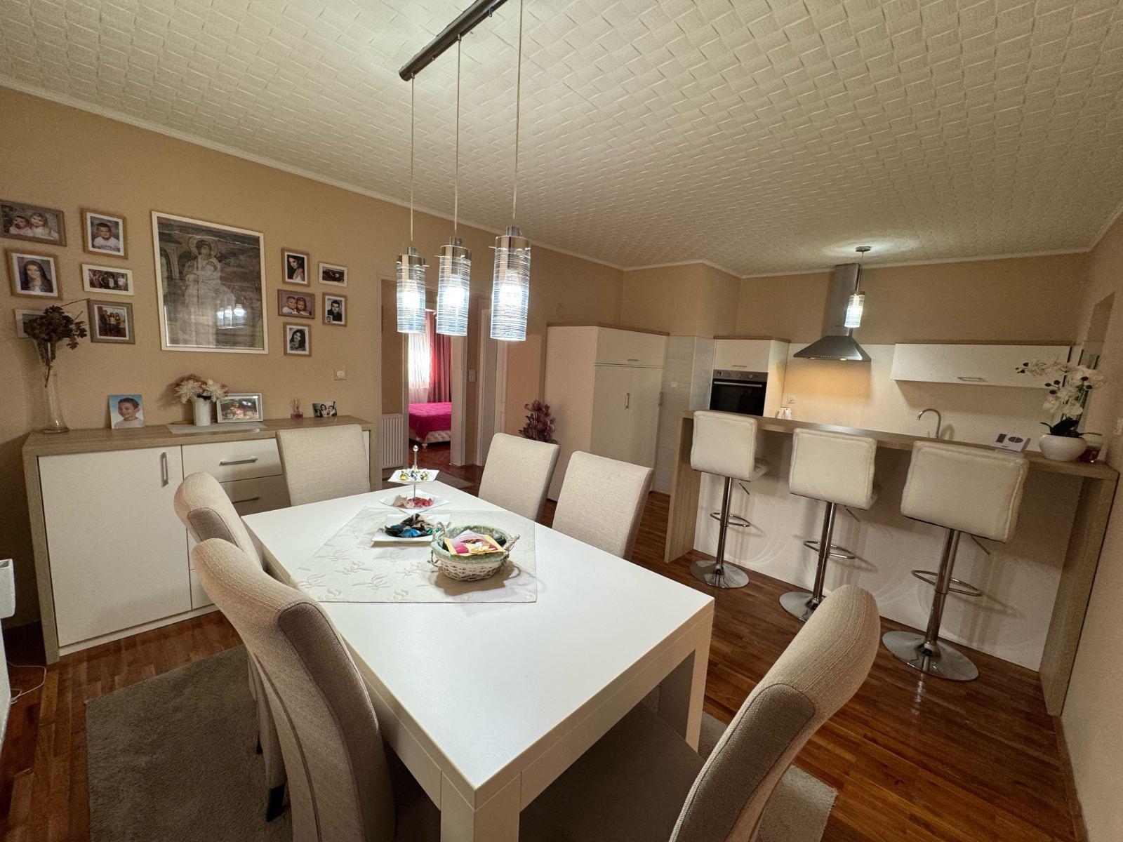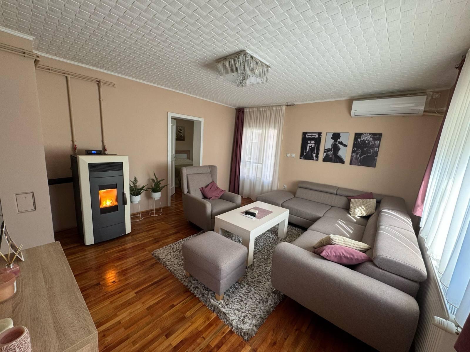 Porodična kuća u Kukujevcima, 129km na 17.2 ara placa. Tri spavaće sobe, dva kupatila, kuhinja sa trpezarijom, dnevna soba i ostava. Grejanje etažno na pelet, inverter klima i mogućnost priključenja na gas. Parket u celoj kući. Prodaje se sa nameštajem i tehnikom. Veliko dvorište i bašta. Kontakt 0643119930