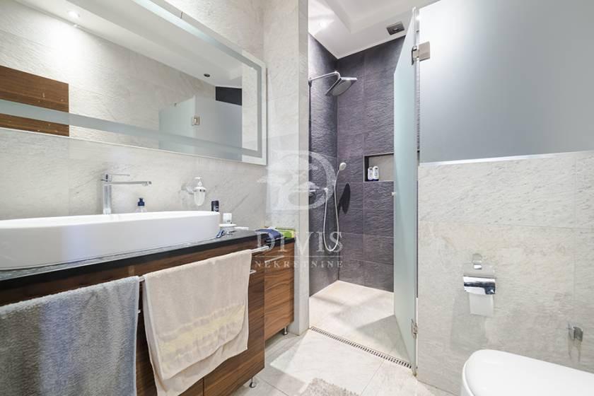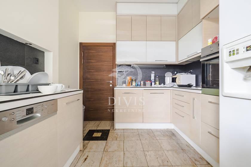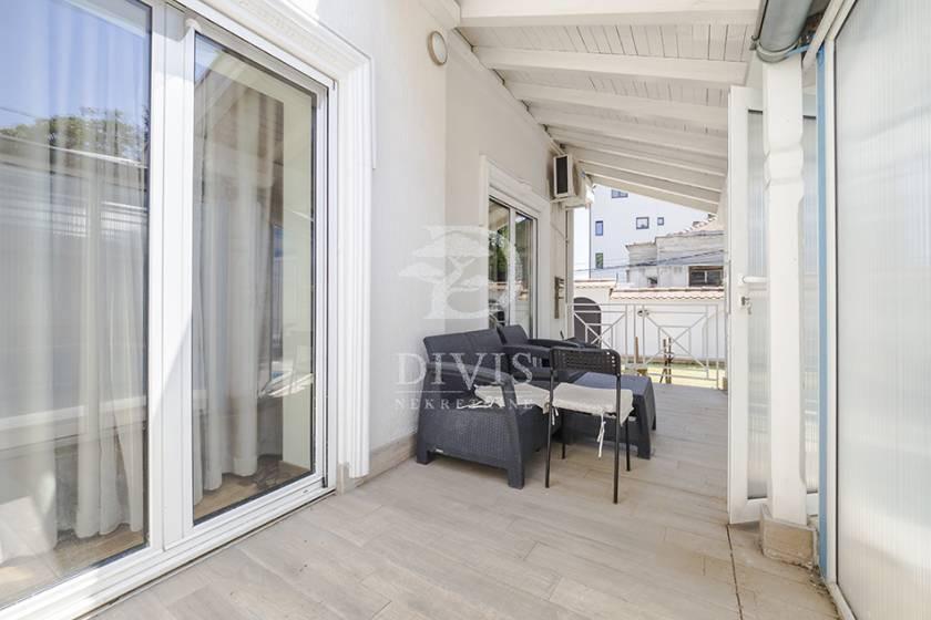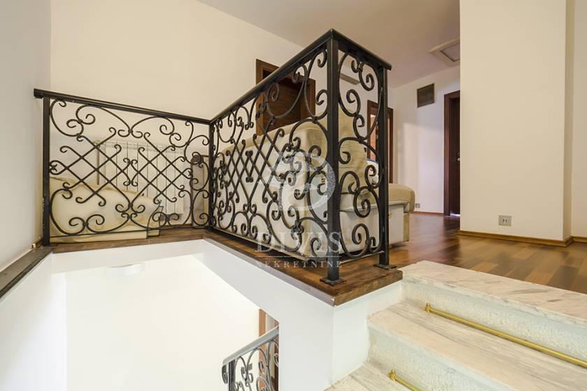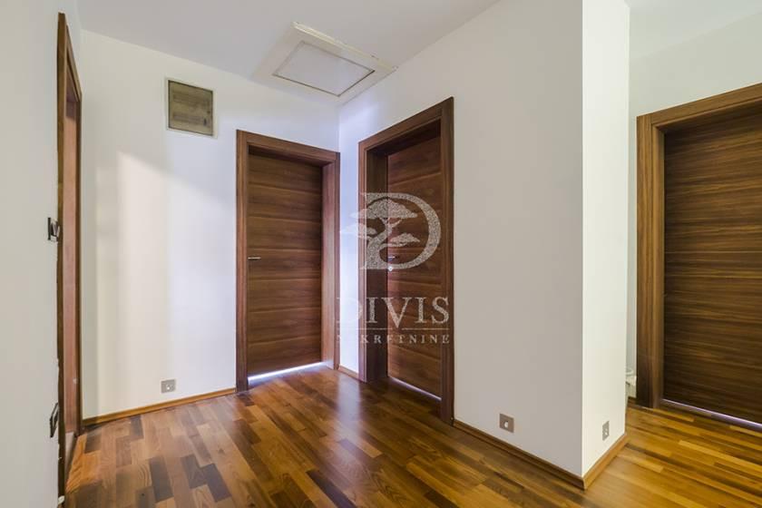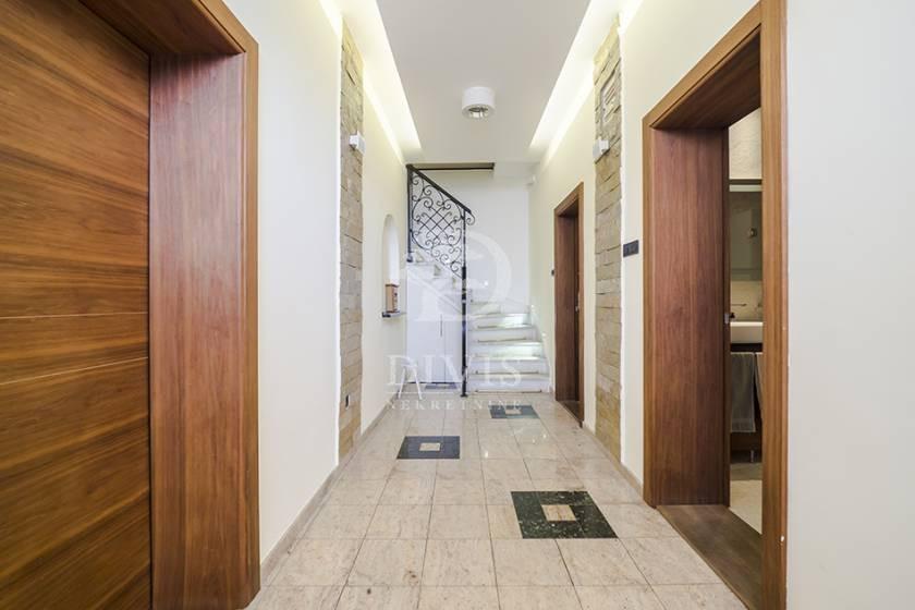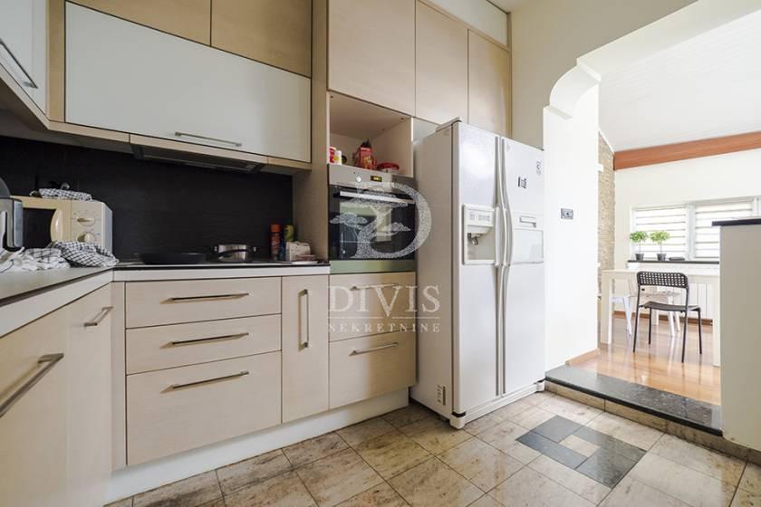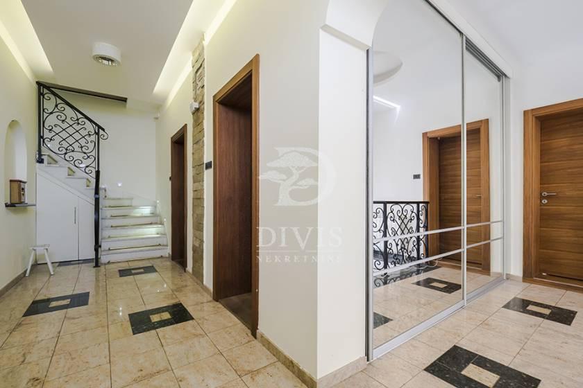 Izdaje se luksuzno opremljena kuća u Beogradu, u neposrednoj blizini Partizanovog stadiona i Autokomande. Kuća se nalazi na mirnoj lokaciji, idealnoj za porodično stanovanje ili dugoročni zakup, i ukupne je površine 252m2, na placu od 305 m2. Posebnu vrednost nekretnini daje pokriveni bazen površine 28,65 m2 sa mogućnošću grejanja, što omogućava korišćenje tokom cele godine. Kuća je trostrano orijentisana i organizovana na četiri nivoa: suteren, prizemlje i sprat. Prizemlje čine predsoblje, prostran dnevni boravak sa izlazom na verandu i bazen, kuhinja i velika trpezarija sa mogućnošću formiranja dodatne spavaće sobe i izlazom na terasu površine 21 m2, kao i kupatilo. Na spratu se nalaze četiri spavaće sobe, od kojih dve imaju izlaz na terasu, i kupatilo. U suterenu su smešteni vešeraj, ostava, prostorija za grejanje, toalet i garaža za dva automobila sa daljinskim upravljanjem. Grejanje je etažno, kombinovano na struju i pelet, uz podno grejanje postavljeno ispod granitne keramike. Dvorište je u potpunosti ograđeno zidanom ogradom i obezbeđuje visok nivo privatnosti. Nekretnina se izdaje na minimum dve godine. Depozit je u visini jedne mesečne zakupnine. Posrednička naknada je u skladu sa Opštim uslovima poslovanja Posrednika DIVIS NEKRETNINE DOO