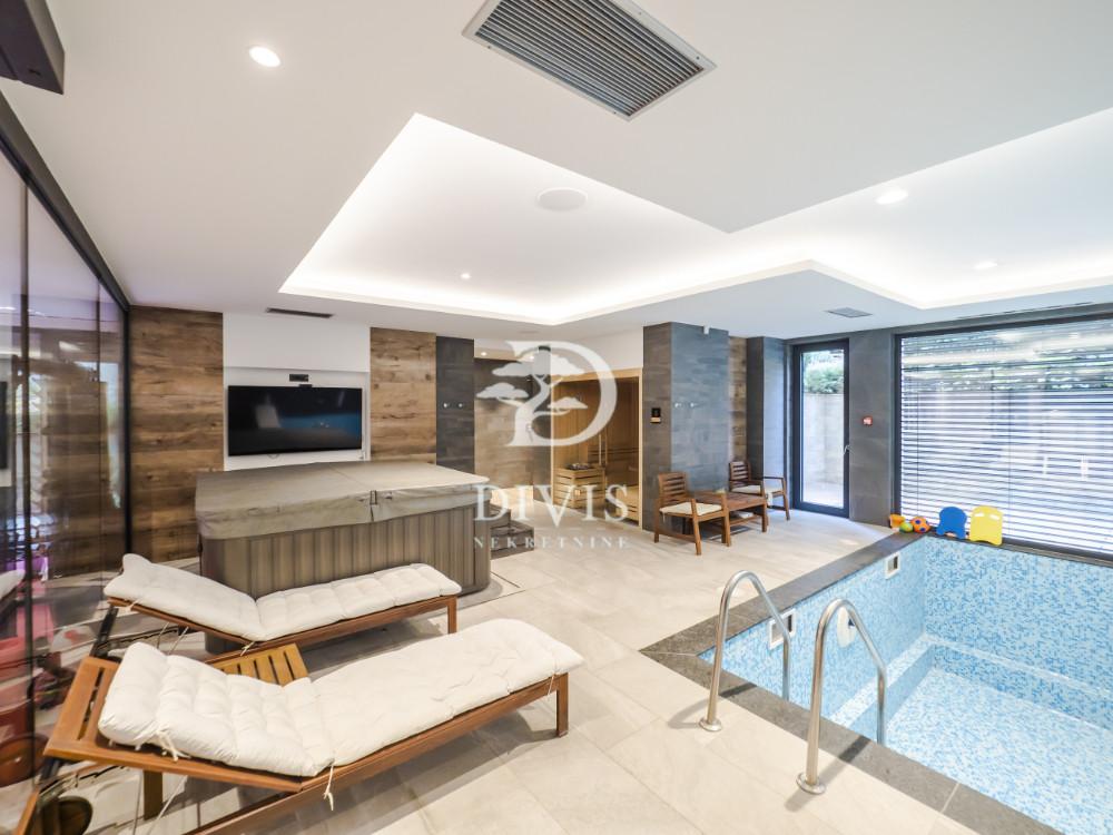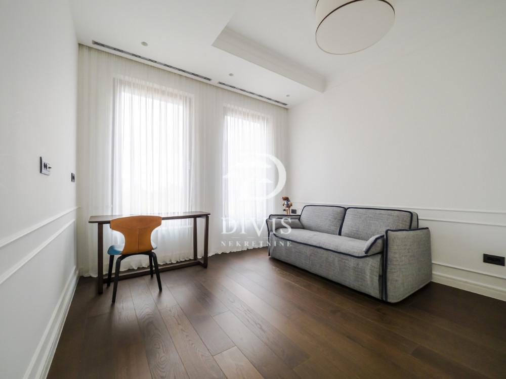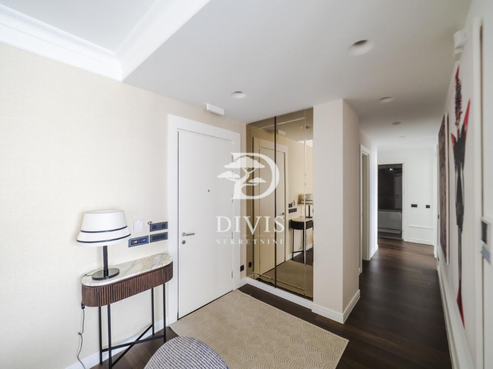 Izdaje se luksuzan trosoban stan na Dedinju, u ulici Koste Racina, jednoj od najlepših i najmirnijih ulica ovog prestižnog naselja. Stan se nalazi u moderno projektovanoj zgradi vrhunskog kvaliteta, sa obezbeđenjem, bazenom i teretanom namenjenim isključivo stanarima. Stan je moderno opremljen i funkcionalno organizovan. Dnevni deo čini prostran open space koncept sa dnevnim boravkom, trpezarijom i kuhinjom, dok je spavaći blok odvojen i sadrži dve komforne spavaće sobe i dva kupatila. Pored toga, u stanu se nalazi i ostava koja dodatno povećava komfor. Stan je izuzetno svetao, sa velikim staklenim površinama i terasom sa koje se pruža predivan panoramski pogled na Beograd. U cenu zakupa uključeno je jedno garažno mesto u okviru objekta. Ovaj stan je idealan izbor za diplomate, porodice i poslovne ljude koji žele da uživaju u spoju luksuza, mira i komfora, u jednom od najprestižnijih delova Beograda. Posrednička naknada se obračunava u skladu sa Opštim uslovima poslovanja agencije „DIVIS NEKRETNINE“ d.o.o.