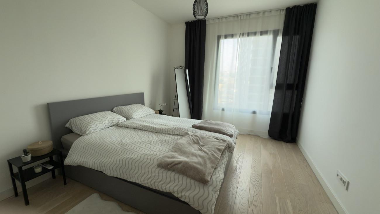 Izdajemo funkcionalan dvosoban stan u novouseljenoj zgradi BW ARIA u Beogradu na vodi koja poseduje recepciju, lobi i obezbeđenje 24/7. Stan se nalazi na petom spratu i ima prelep, otvoren pogled na panoramu grada. Sastoji se od prostanog dnevnog boravka sa kuhinjom (open space), spavaće sobe, kupatila sa tuš kabinom i vešernice u koju staju dve mašine (pranje i sušenje). U cenu zakupa uračunato garažno mesto. Odlična opcija kako za život tako i kao poslovni prostor. Posrednička naknada je u skladu sa Opštim uslovima poslovanja Posrednika "DIVIS NEKRETNINE" d.o.o.