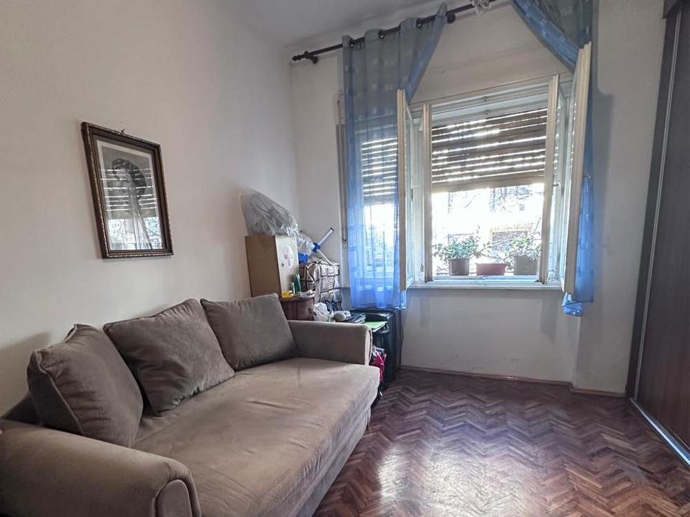 Prodajemo stan u samom srcu Vračara, u Mutapovoj ulici, u delu bližem Kalenić pijaci. Stan se nalazi na prvom spratu predratne zgrade sa ukupno četiri sprata i dvorišno je orijentisan, što mu obezbeđuje mir i tišinu, uprkos izuzetnoj centralnoj lokaciji. Površine je 46 m² i sastoji se od ulaznog predsoblja, kuhinje sa izdvojenim delom za trpezariju i manjom ostavom, pri čemu svi ovi prostori imaju prirodno osvetljenje. U nastavku se nalaze komforan dnevni boravak, spavaća soba i kupatilo, takođe sa prozorom. Stan ima salonsku visinu plafona, uredno je održavan i odiše karakterom tipičnim za predratnu gradnju. Zgrada je uredna, sa očuvanim originalnim elementima iz vremena gradnje, što dodatno doprinosi utisku kvaliteta i autentičnosti. Nekretnina je uknjižena u katastru. Izuzetna mikro lokacija, retka ponuda na Vračaru i odličan potencijal kako za stanovanje, tako i kao investicija u svakom smislu. Useljiv po dogovoru. Posrednička naknada je u skladu sa Opštim uslovima poslovanja Posrednika "DIVIS NEKRETNINE" d.o.o