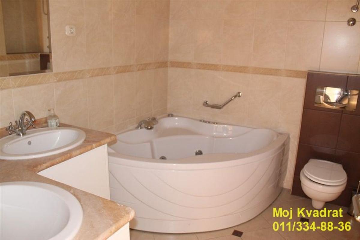 Savski venac, Dedinje - Aleksandra Tirnanića Tirketa kuća, 215m2, terase, PR+I+PTK, EG/gas, telefon, interfon, video nadzor, alarm, KATV, podrum, parking, garaža, struja, voda, kanalizacija, dvorište 1a Ekskluzivna kuća na Dedinju, novije gradnje, u blizini Belog dvora. Kuća je visokog kvaliteta gradnje. Prodaje se prazna. Kuća na tri etaže i garažom za dva automobila, sa dvorištem od oko 100m2. Poseduje četiri spavaće sobe, četiri kupatila, đakuzi kadu, dve kuhinje, dva dnevna boravka, radnu sobu, perionicu. Grejanje u kući je etažno na gas i struju. Uknjižena na 119m2 korisne površine. Agencijska provizija 2% Agent Lazar Karadžić: 065/36-02-507 (licenca br. 3343)